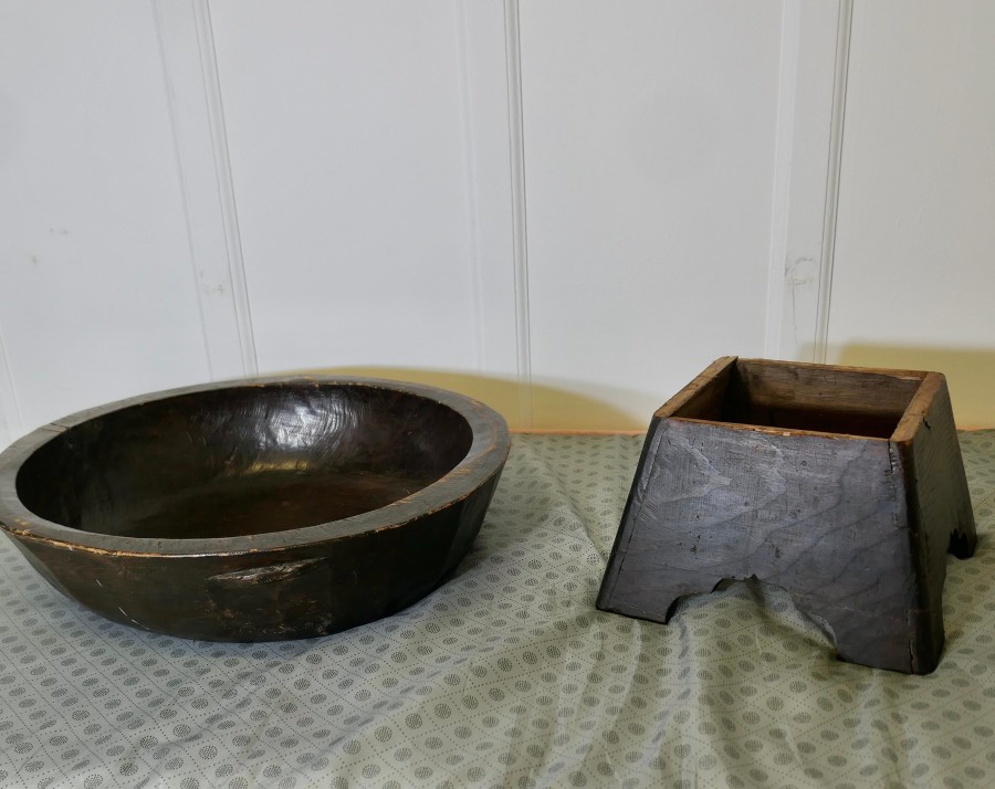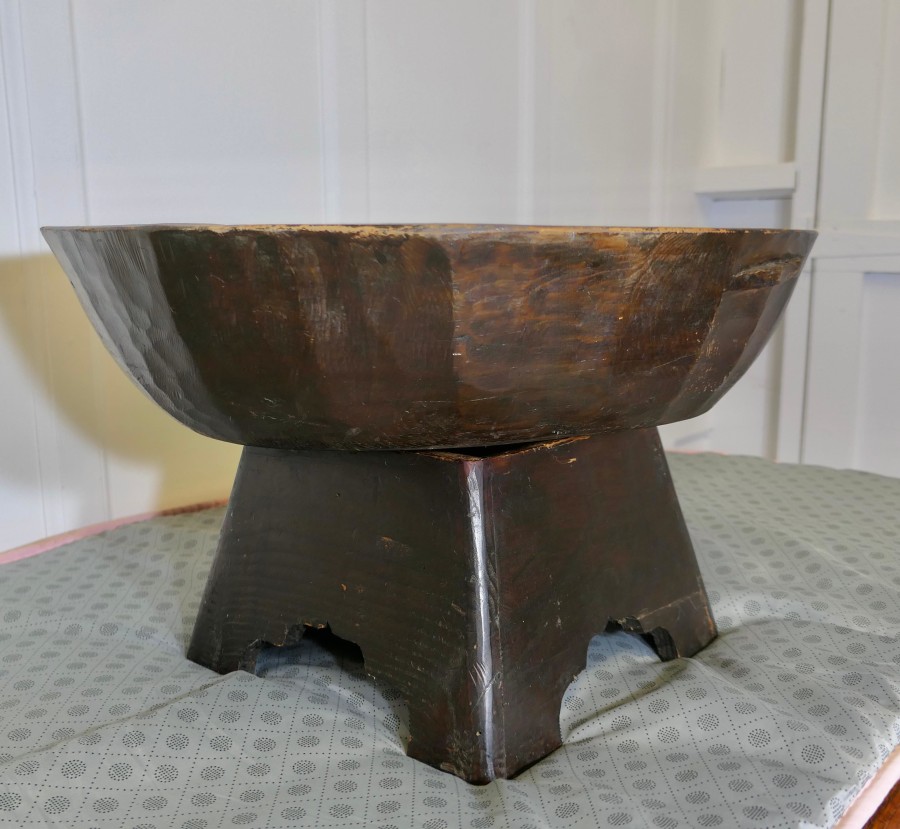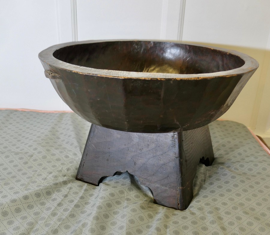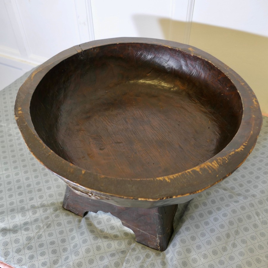 Large Oriental Hand Carved Wooden Bowl on Stand An impressive piece carved in Elm, the bowl can be lifted from the stand They measure 14” high and 22” in diameter NG141 Manufacture Date : 19th Century Materials : Elm