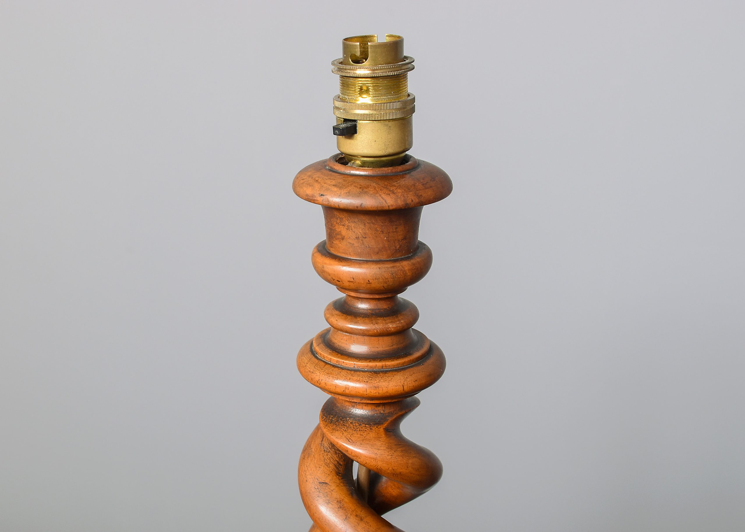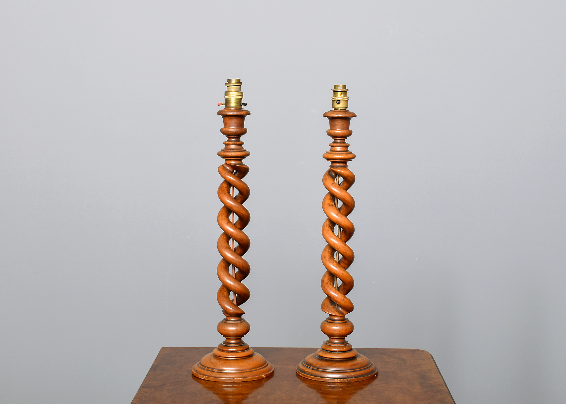 Large Pair of Mahogany Barley Sugar Table Lamps