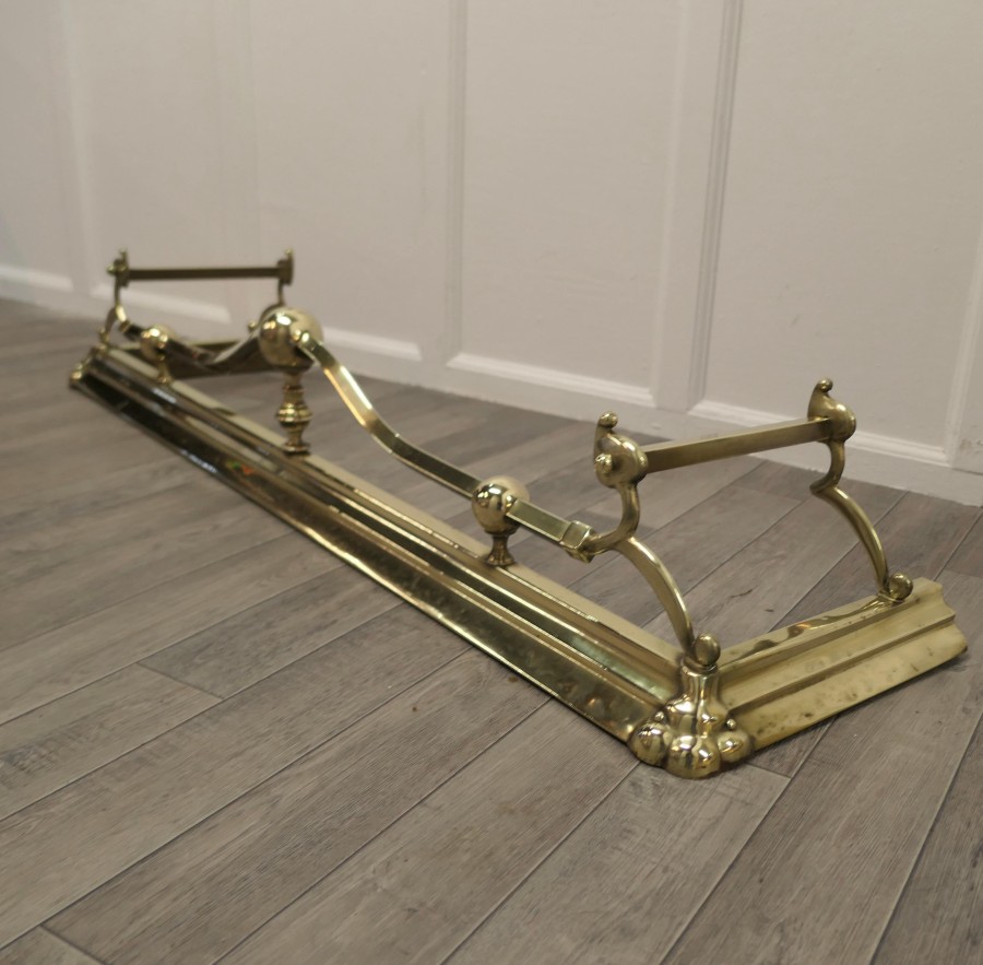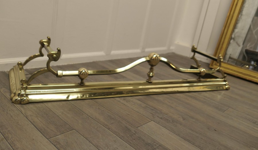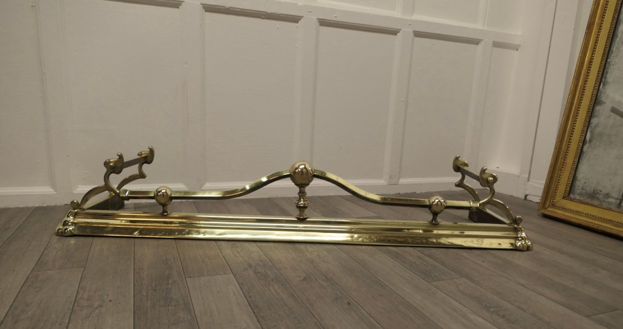Large Victorian Art Nouveau Brass Fender This is a Beautifully Designed Victorian Brass Fender it has Art Nouveau decoration worked in brass The Fender is in original condition, it has a few age related dings it is 8” high, and 52” long and 15” deep TGF39. Manufacture Date : 1880 Materials : Brass