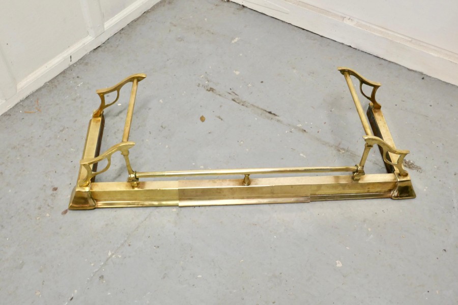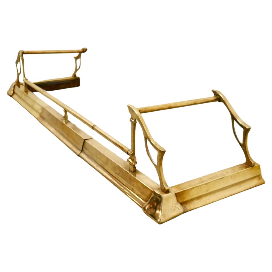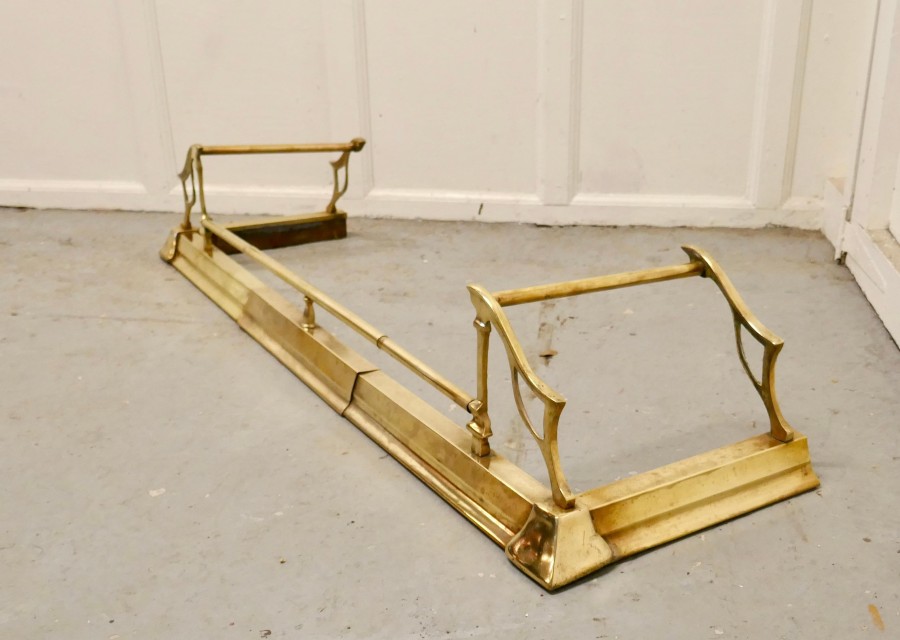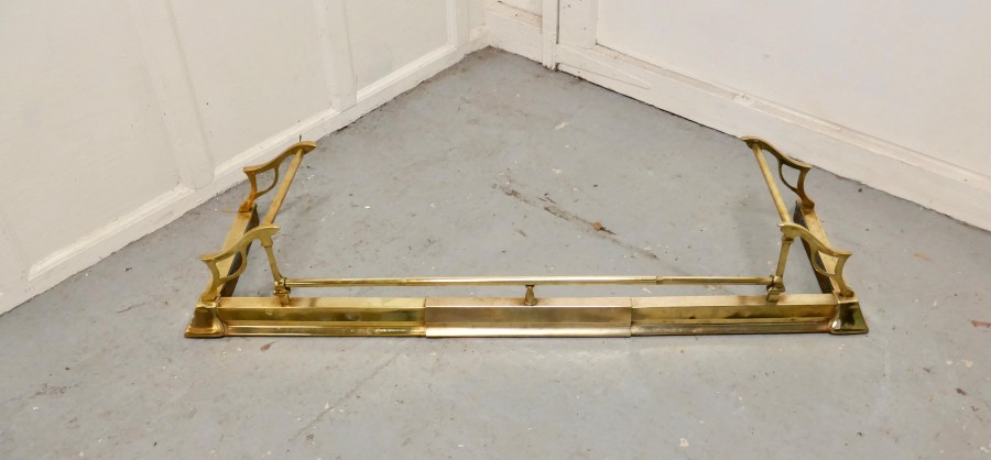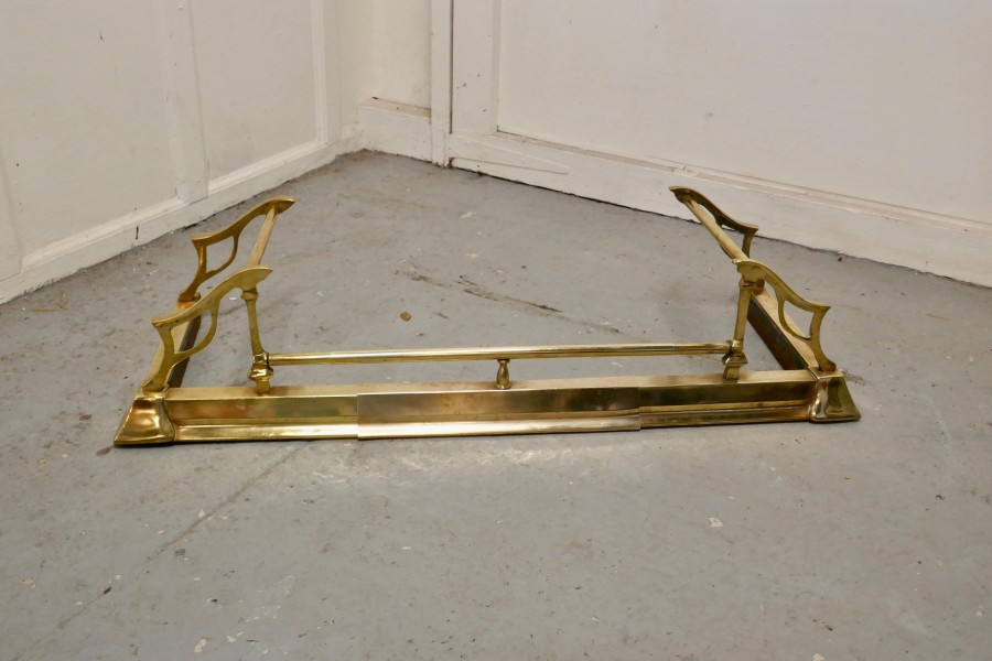 Large Victorian Art Nouveau Brass Fender This is a Beautifully Designed Victorian Brass Fender it has superb Art Nouveau Style worked in brass and can be altered in length by simply pulling it out from the sides The Fender is in good condition, it is 10” high, and 40” long extending to 50” long and 14” deep TGB673 Manufacture Date : 19th Century Materials : Brass