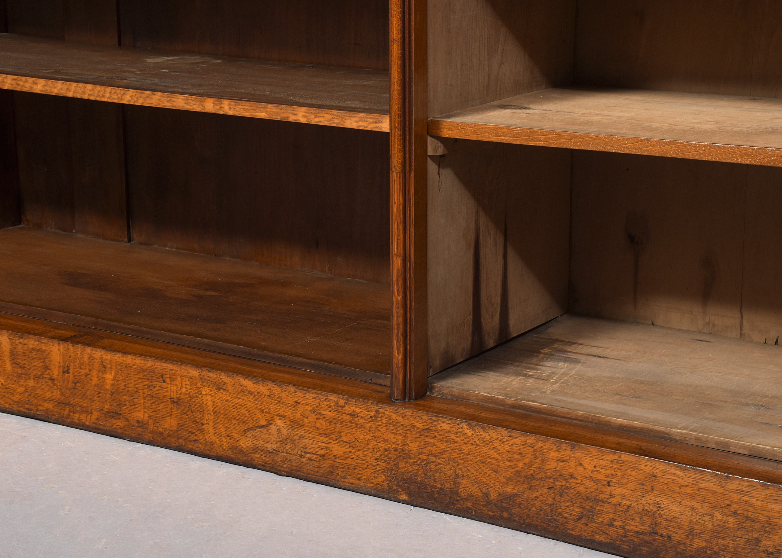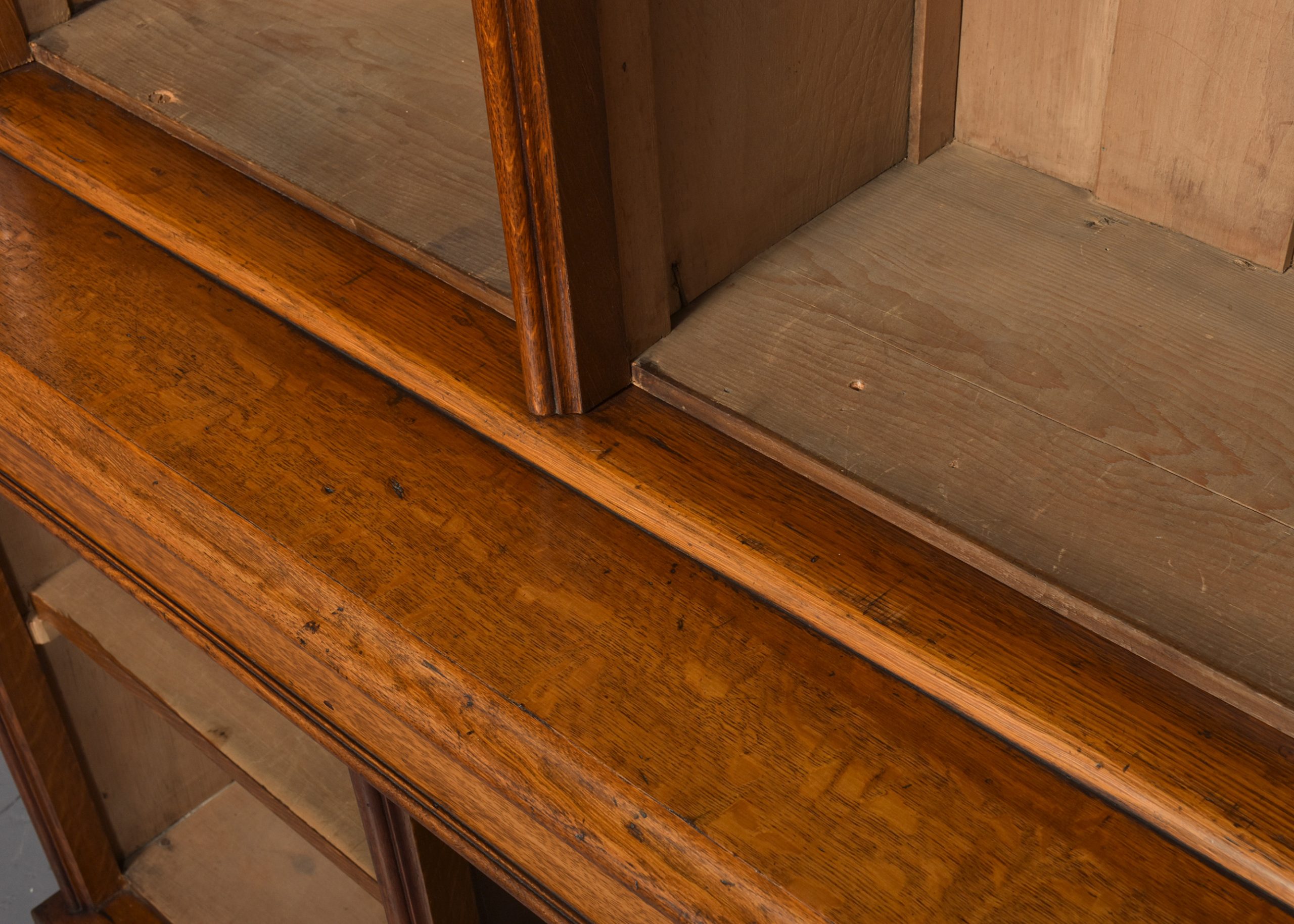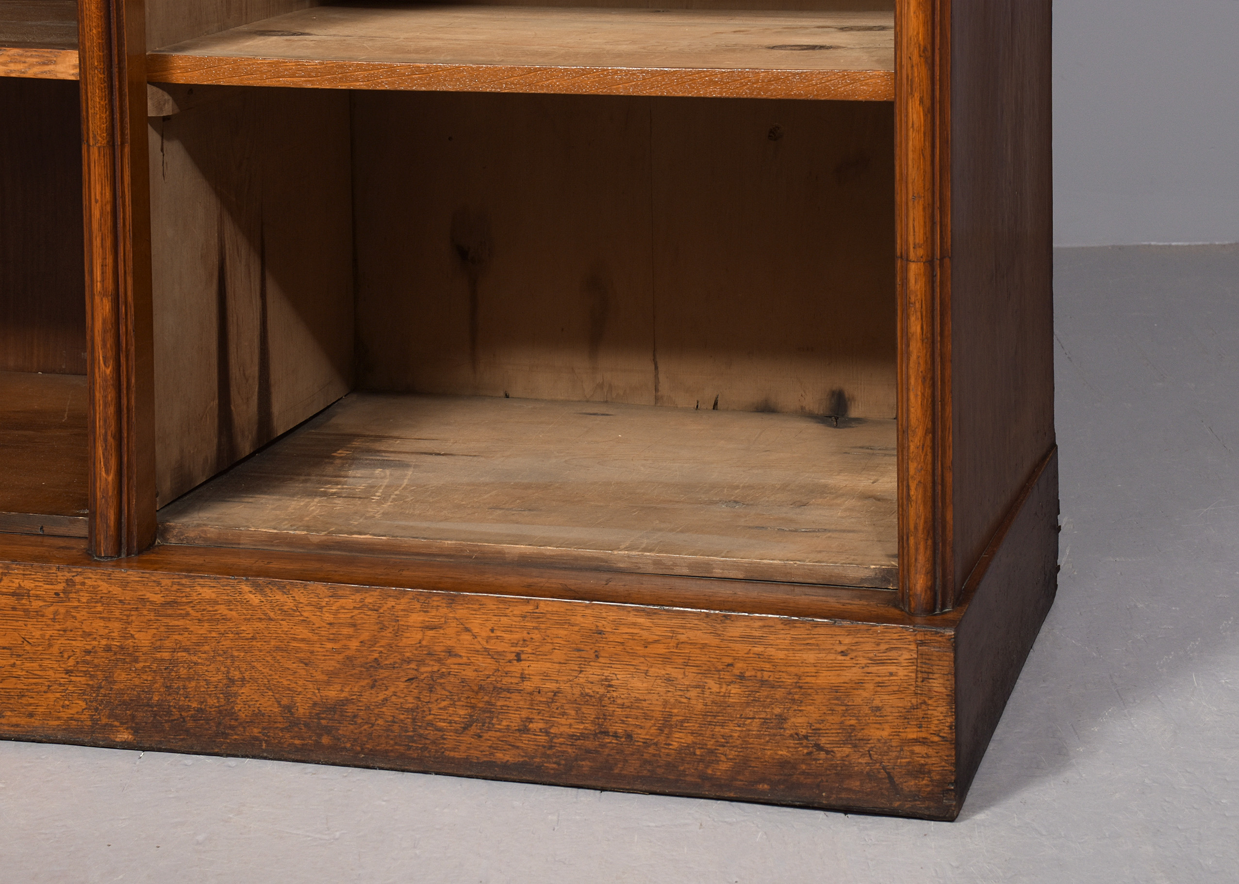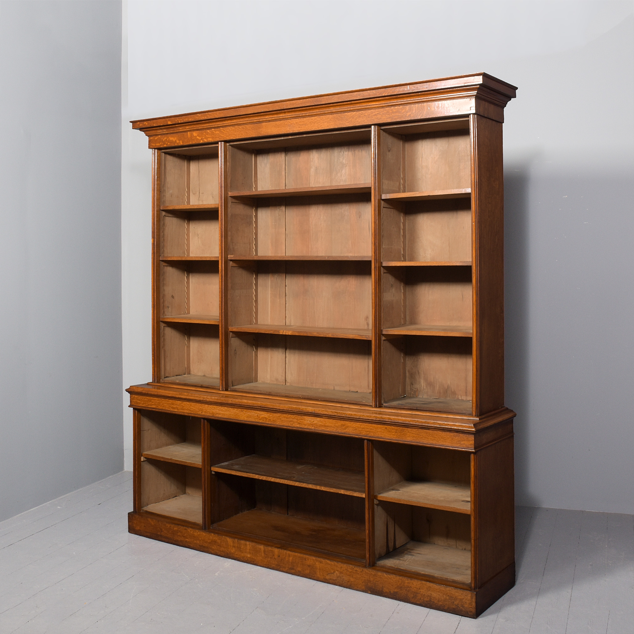 quarter sawn oak, the front with three sections, each with three adjustable