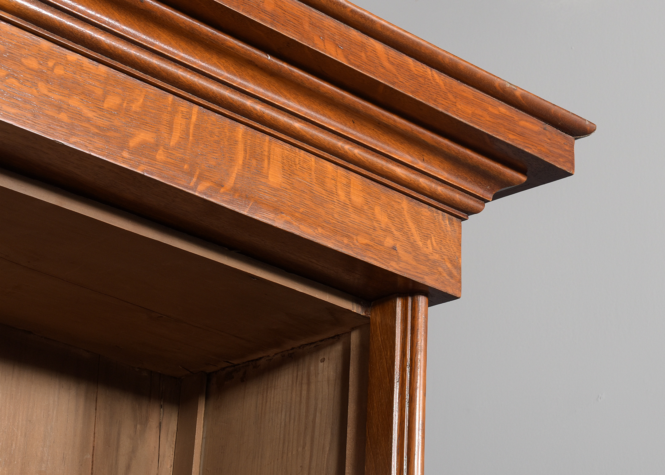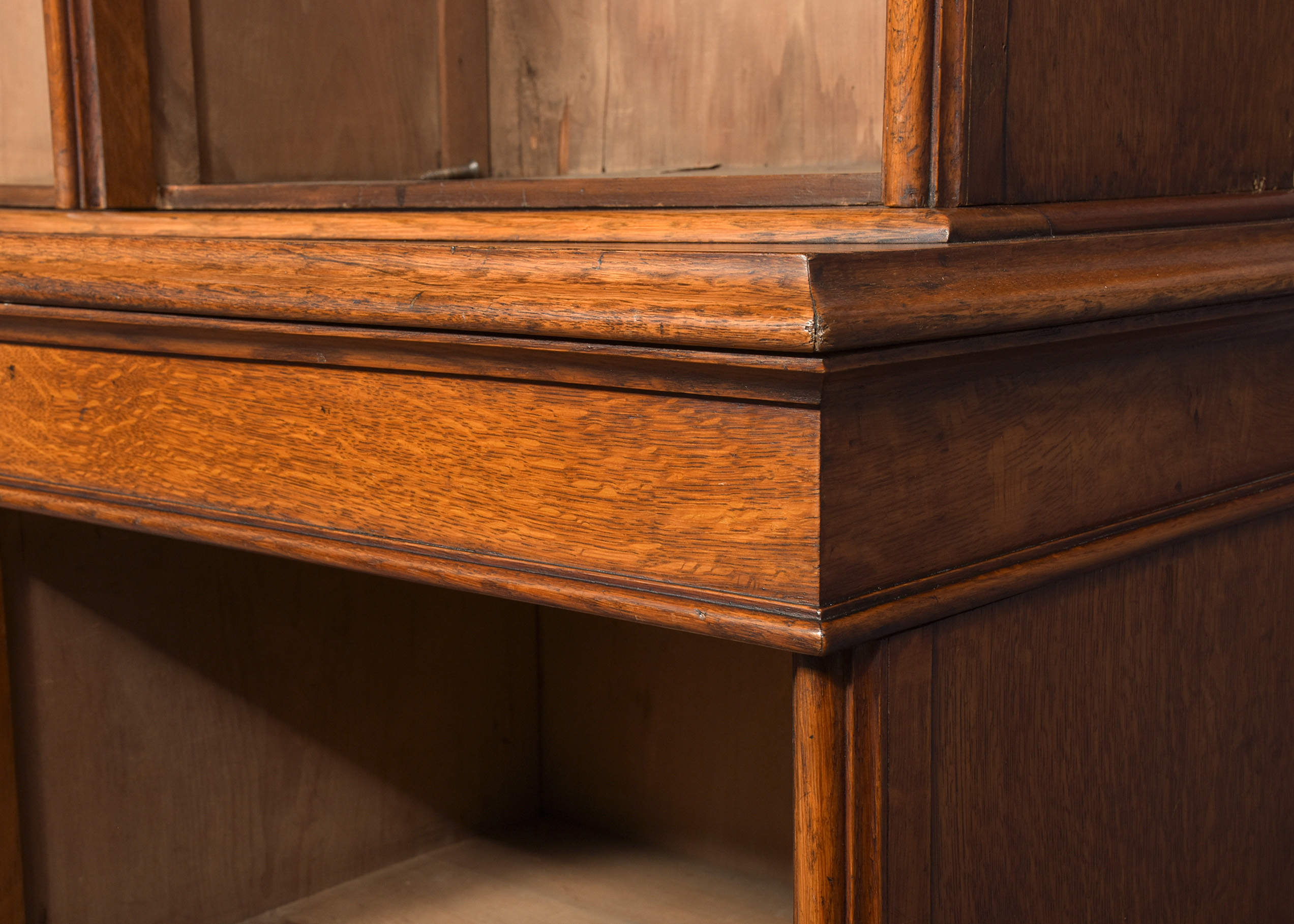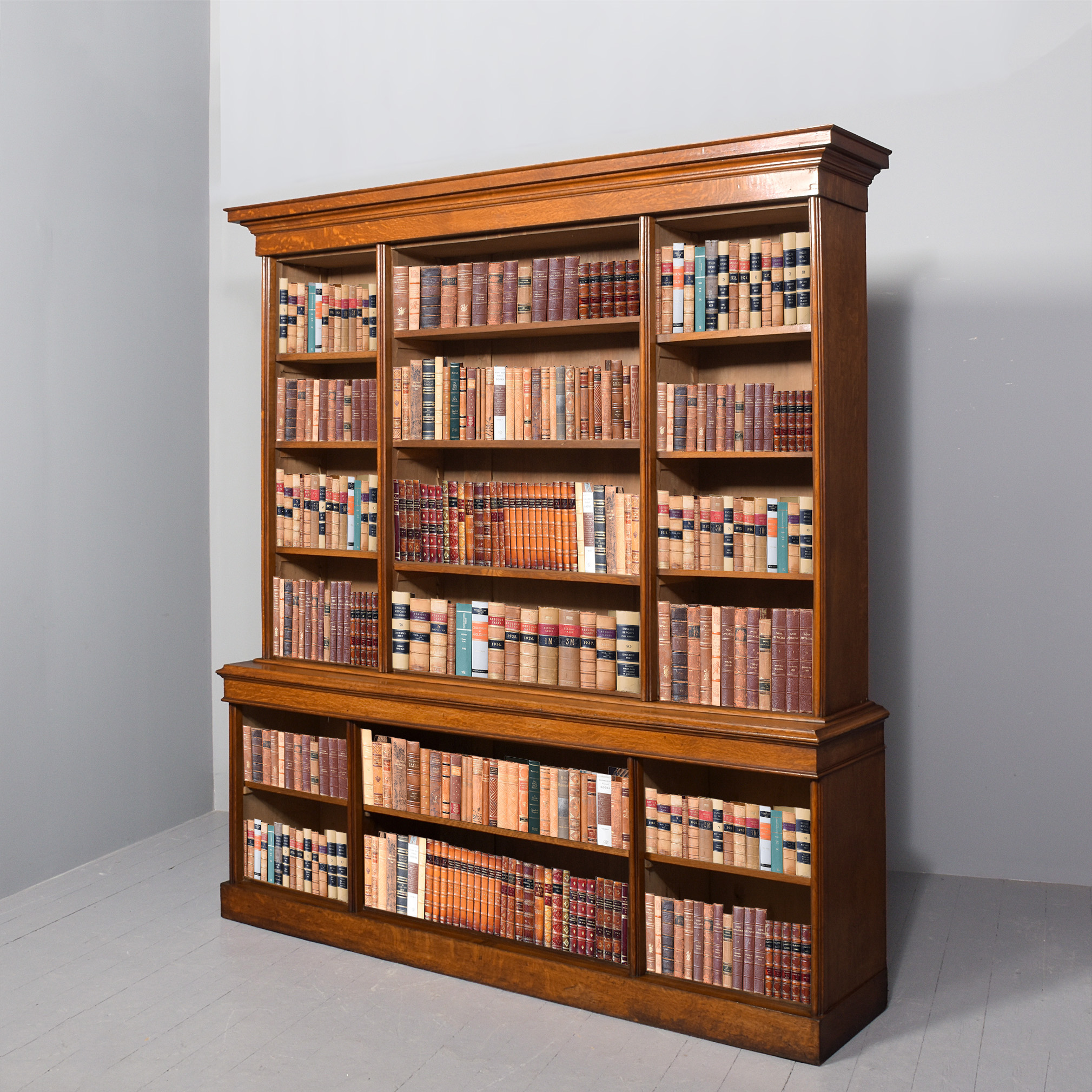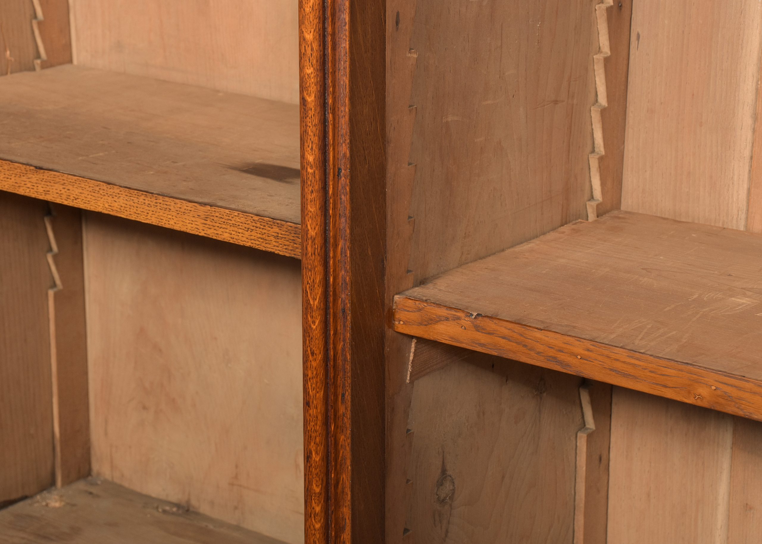quarter sawn oak, the front with three sections, each with three adjustable