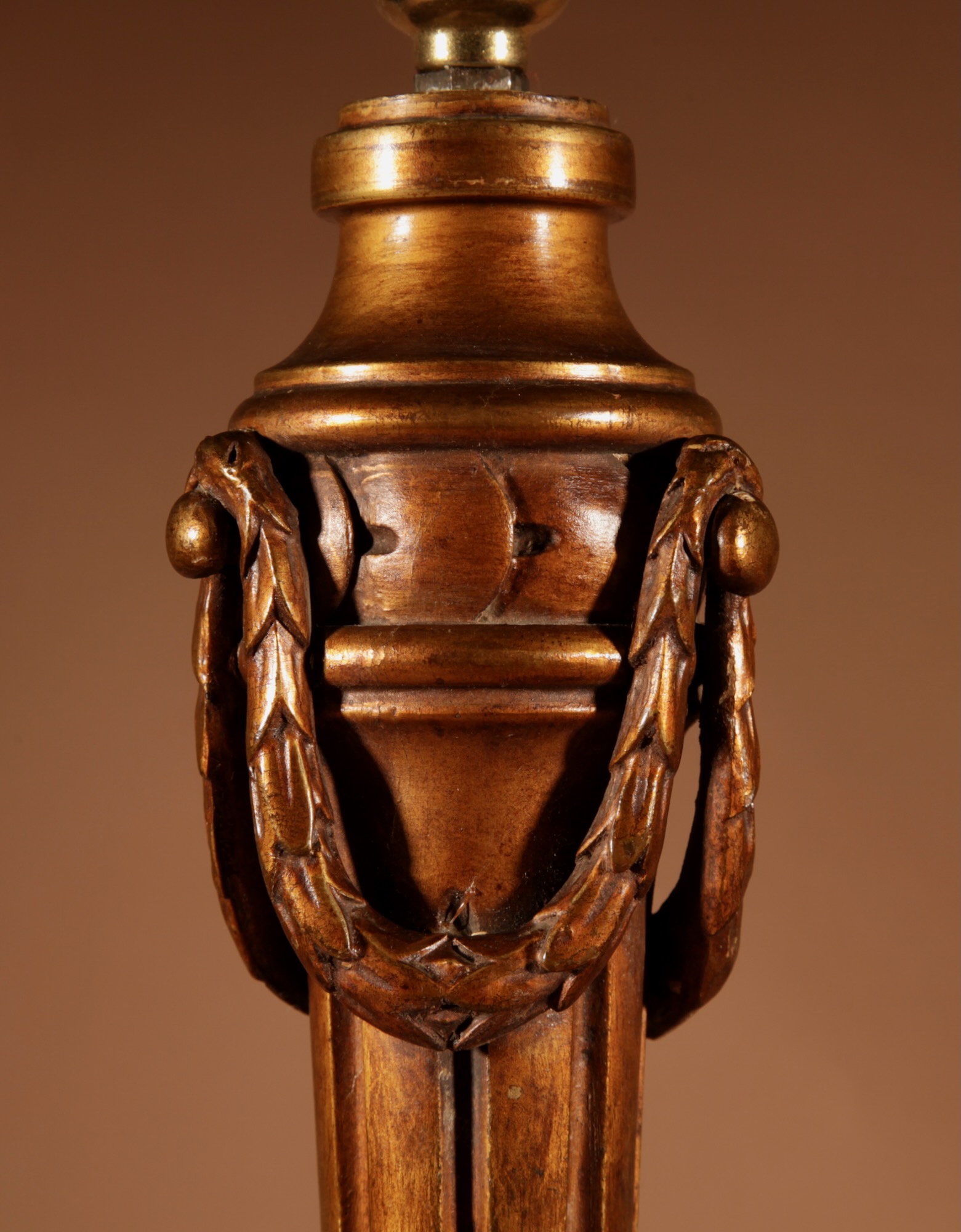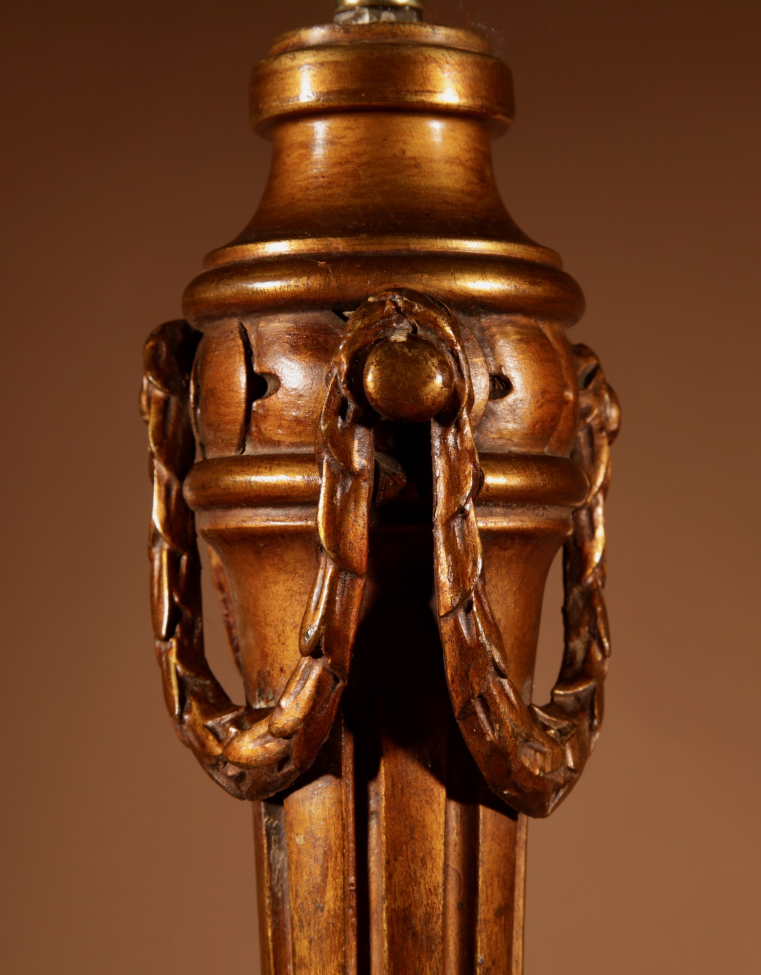 The base carved with fillet of pearls and the top section carved with three free hanging guirlandes.