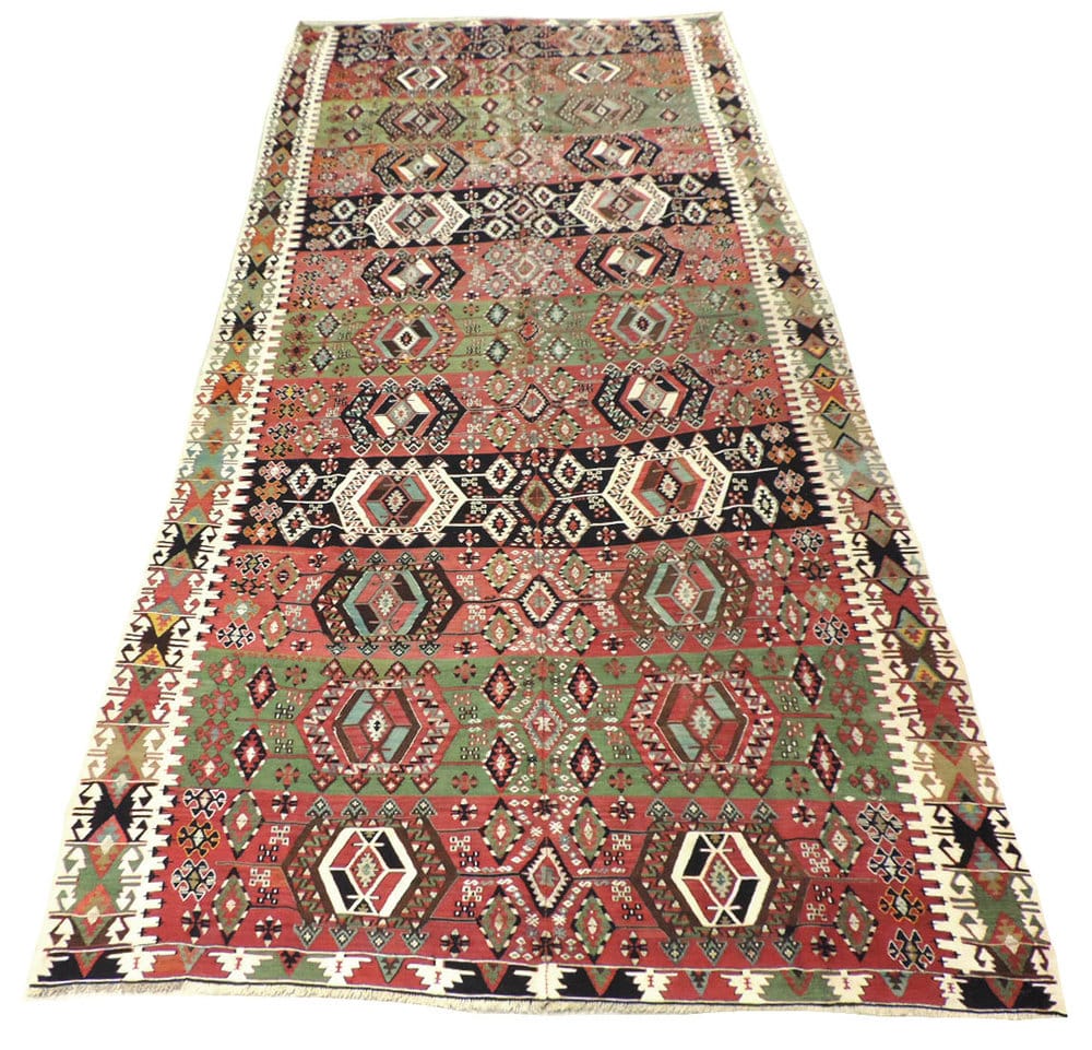 This exquisite antique kilim dates back to the 1880’s and is 100% wool.