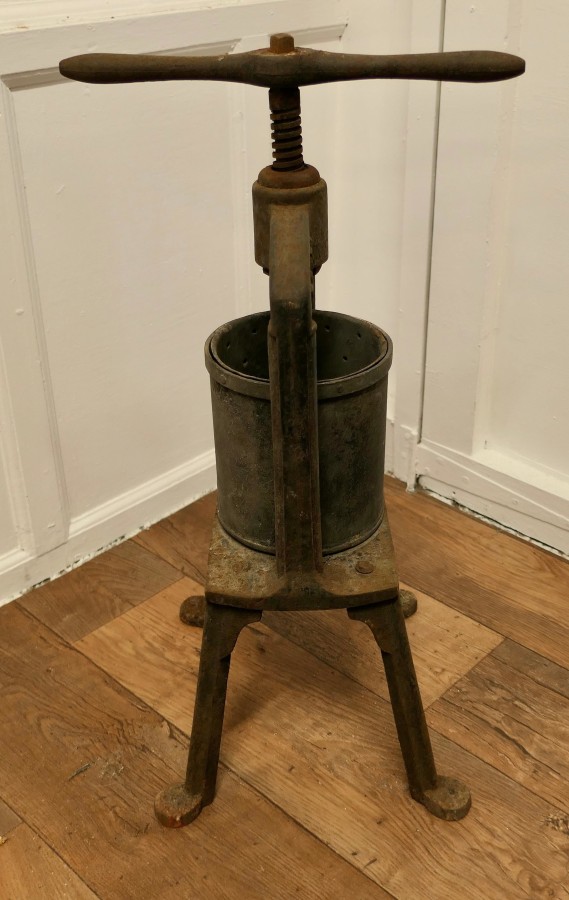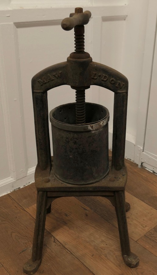 A Maw and Sons 19th Century Cast Iron Tincture Press This press dates from the 19th Century The Tincture press was used for making extracts of herbs, vegetables or fruit in a hospital pharmacy It is very heavy and seems to be fully working It is 35” high, 17” wide and 14” in diameter MS135. Manufacture Date : 1880 Materials : Iron