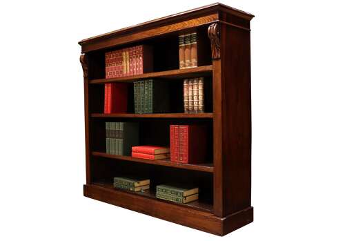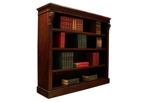 A handsome mid 19th century rosewood open bookcase of elegant proportions, dating to around 1850. Crafted from beautifully figured rosewood, the piece displays rich colour and striking natural grain throughout, enhanced by a warm, mellow patina developed over time.