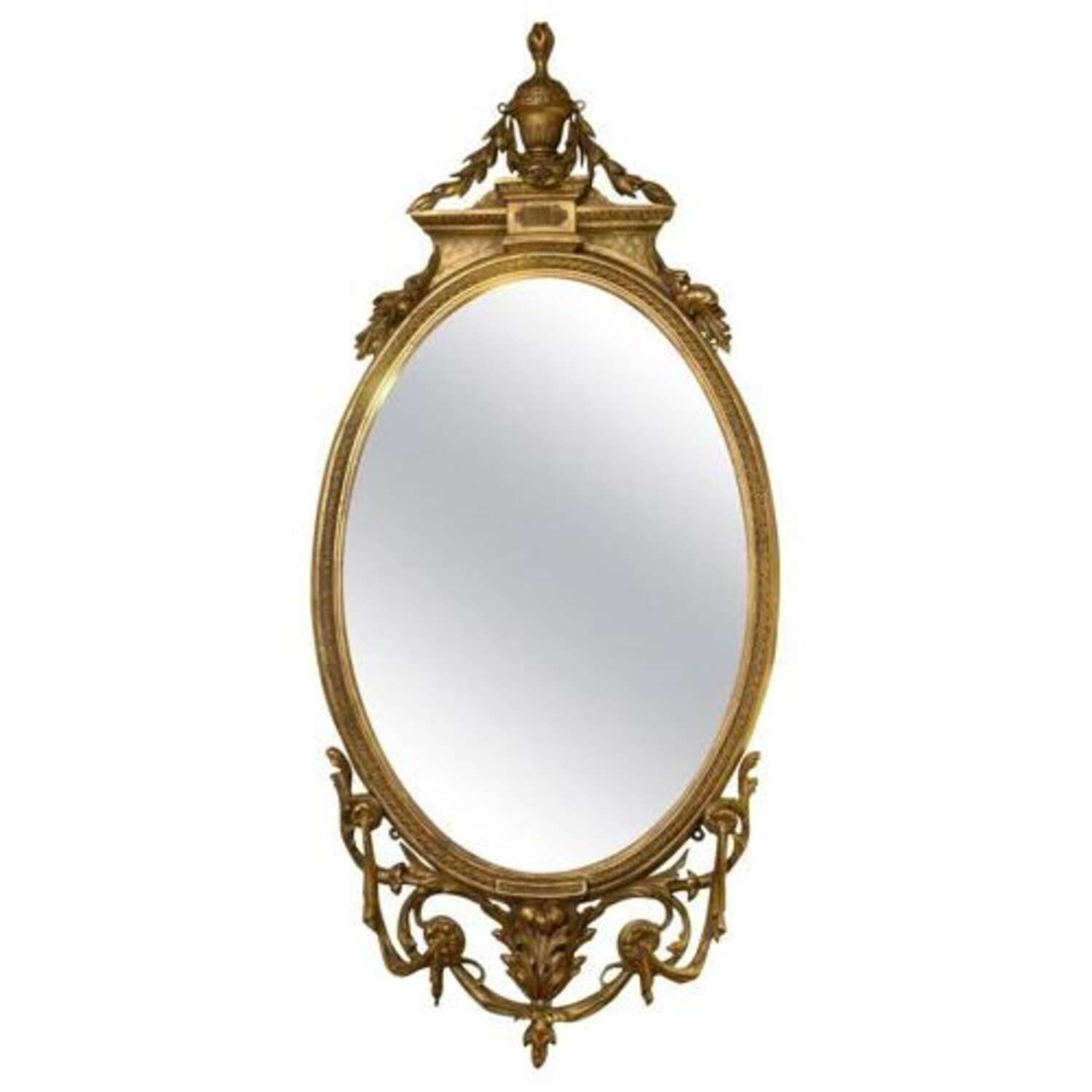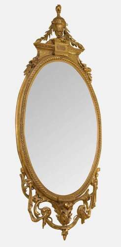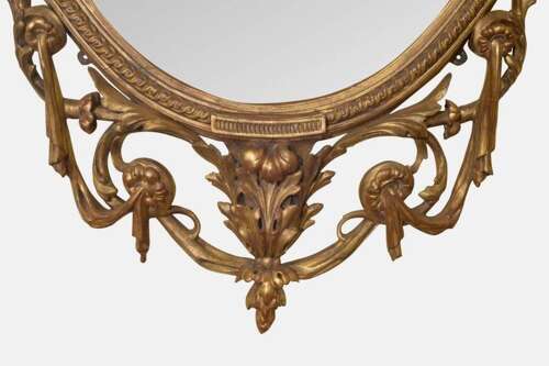 A fine mid 19thc carved oval giltwood mirror of large size with bevelled oval plate, the back with a pressed brass plate for the maker C.Nosotti, Upholsterer & Cabinet Maker, 398+399 Oxford Street circa 1850