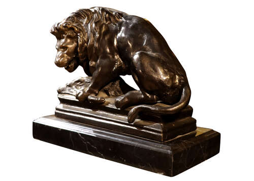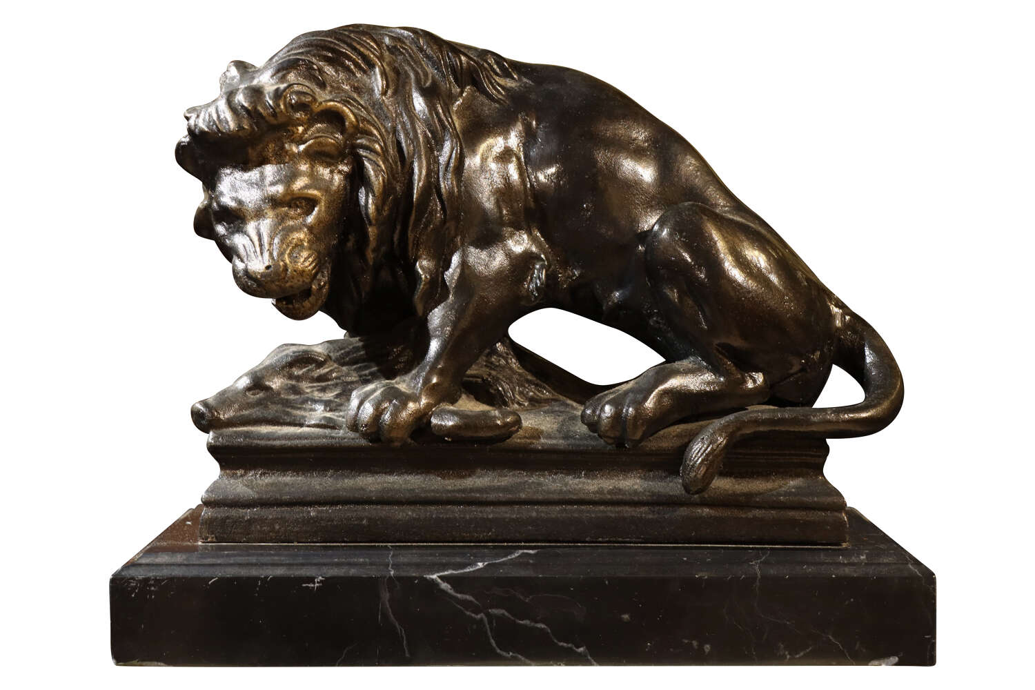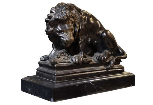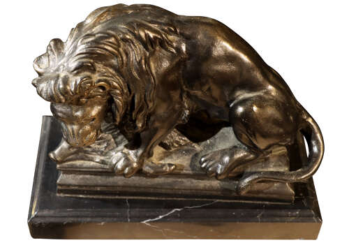 Well-proportioned and substantial, this sculpture works equally well as a statement object on a console, sideboard or desk, or as a decorative focal point within a traditional or eclectic interior. A timeless and decorative piece, drawing inspiration from classical and academic animal sculpture, yet firmly rooted in mid-20th-century taste.