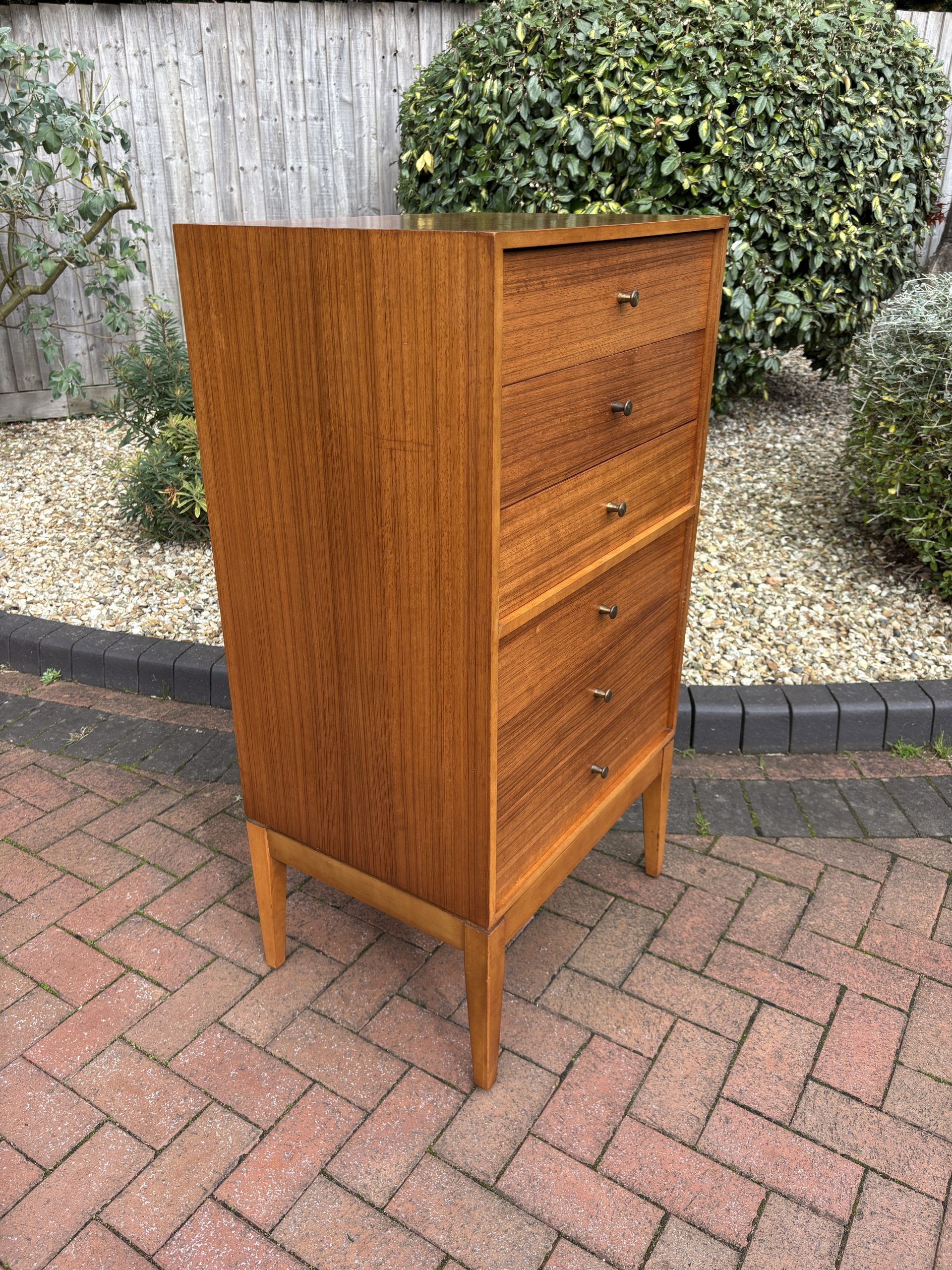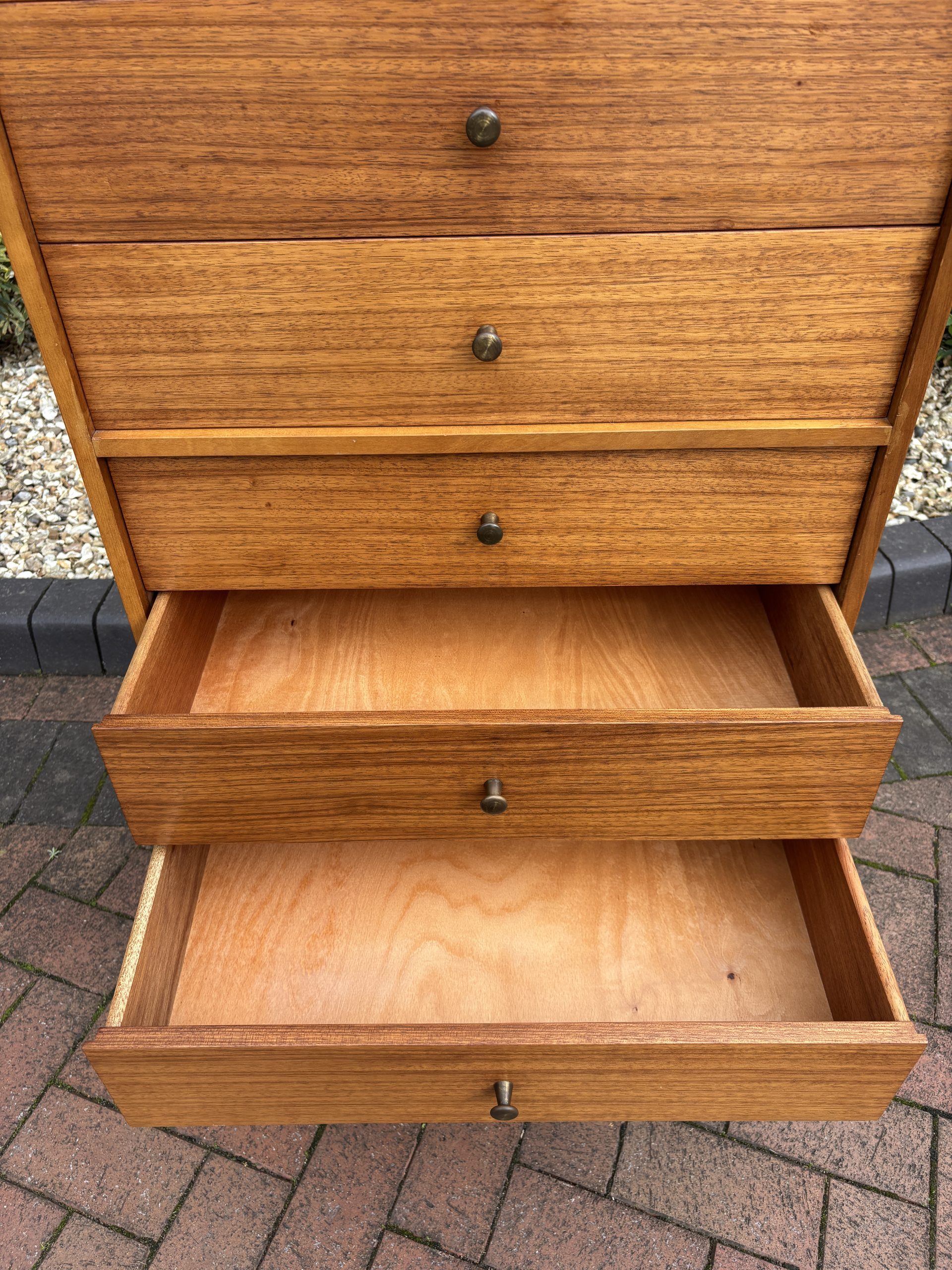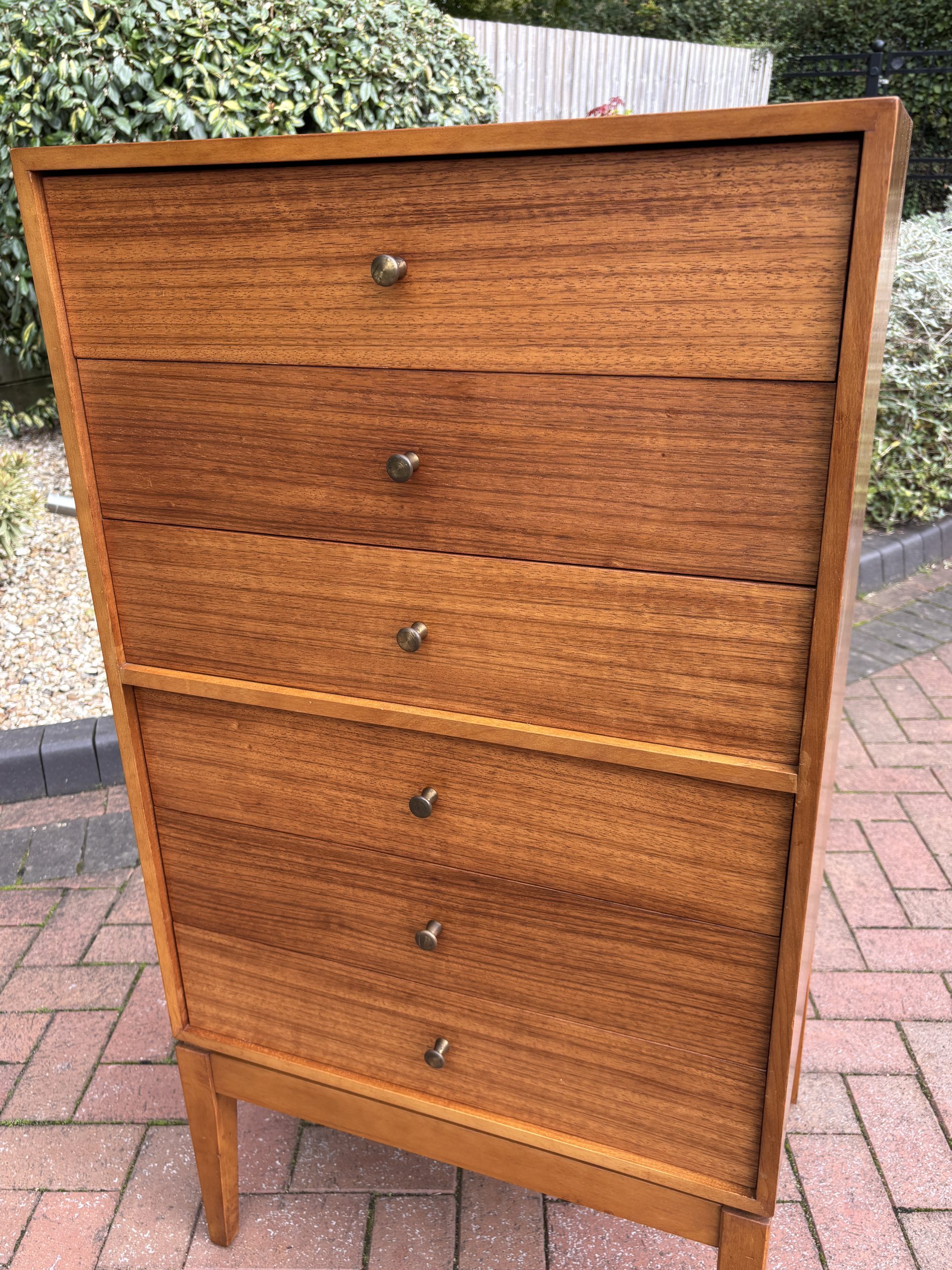 A well designed mid century tallboy chest of drawers designed by Peter Hayward for British manufacturer Uniflex c1960’s.