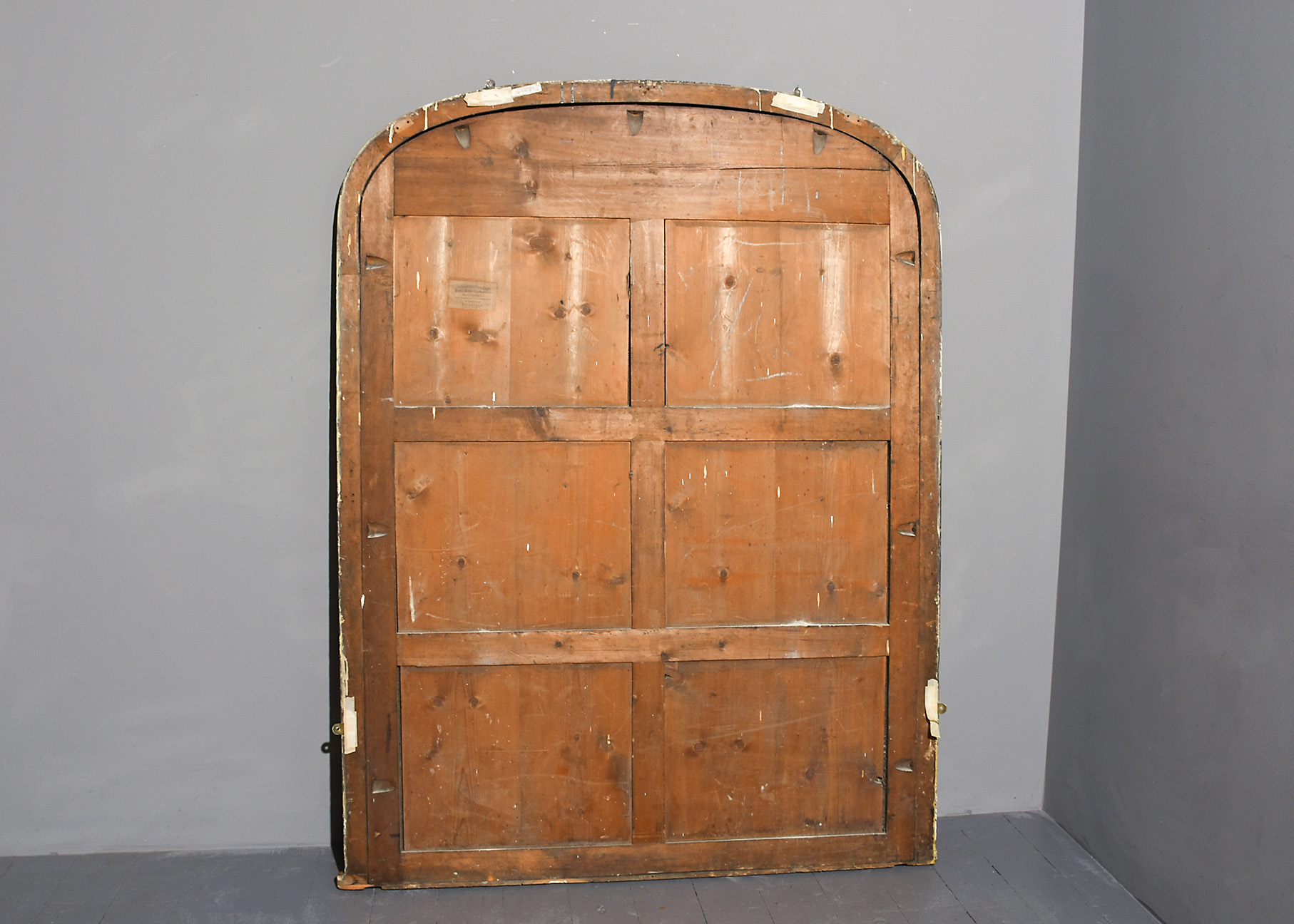 Circa 1860. A mid-Victorian gilded overmantle, the dome top with gilded pattern which continues down the sides, the facing the mixture of overlapping leaves with berries intersecting beside a concave section, the frame retains its original mercury mirror which is in excellent condition with a lovely speckle, resting on a simple base. The mirror has its original pine back