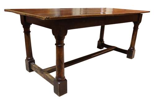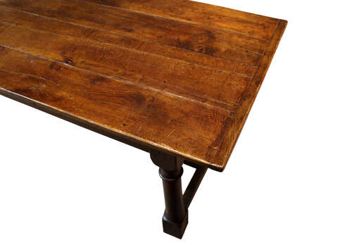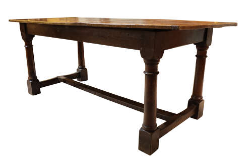 In true early refectory form, the top is removable, allowing the base to be transported easily—an authentic construction feature of the time.