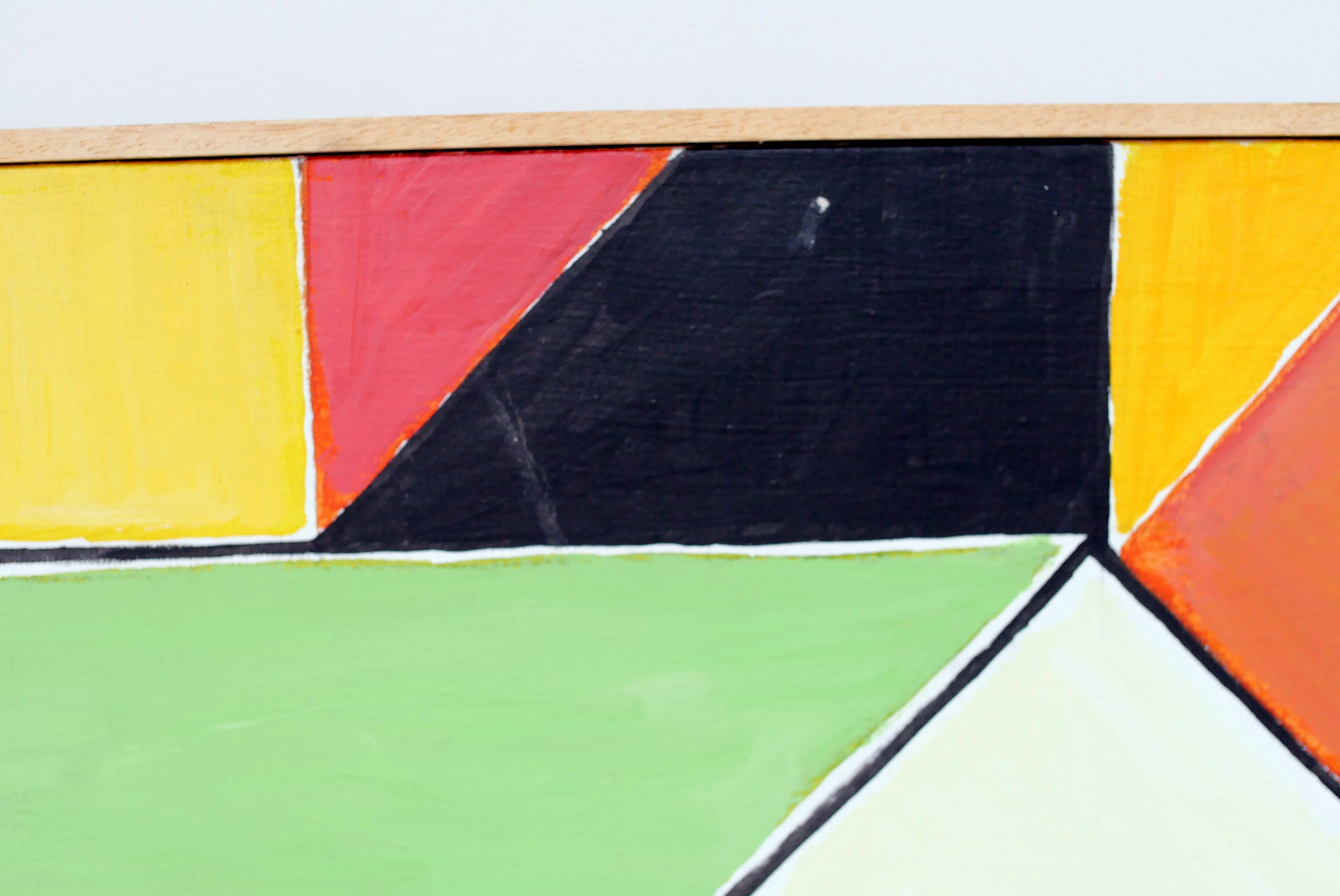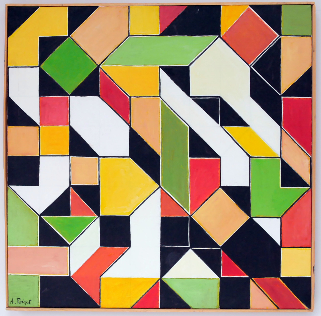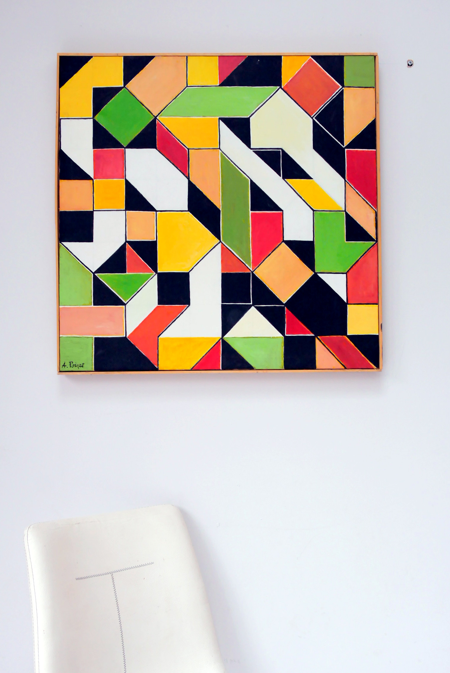 Step into the world of refined artistry with this modern mid-century painting by the French-born Albert Poizat. An abstract celebration of geometric precision and artistic ingenuity, this piece is a symphony of form and balance. Poizat masterfully weaves complexity and harmony, drawing the eye into an intricate dialogue of shapes and colours that evoke both intellect and emotion. Signed and dated by the artist, this painting carries the hallmark of authenticity and timeless value, a true collector’s gem. Its original frame complements the artwork’s aesthetic, preserving its vintage charm while seamlessly fitting into contemporary interiors. Whether you’re a seasoned art collector or a lover of unique design, this piece invites you to own not just a painting but a statement—an elegant slice of mid-century modernism that speaks volumes about the sophistication of its era and its creator. Don’t miss this opportunity to add a touch of abstract brilliance to your collection. Albert Poizat’s work transcends the ordinary, offering a rare chance to own a piece of artistic legacy.