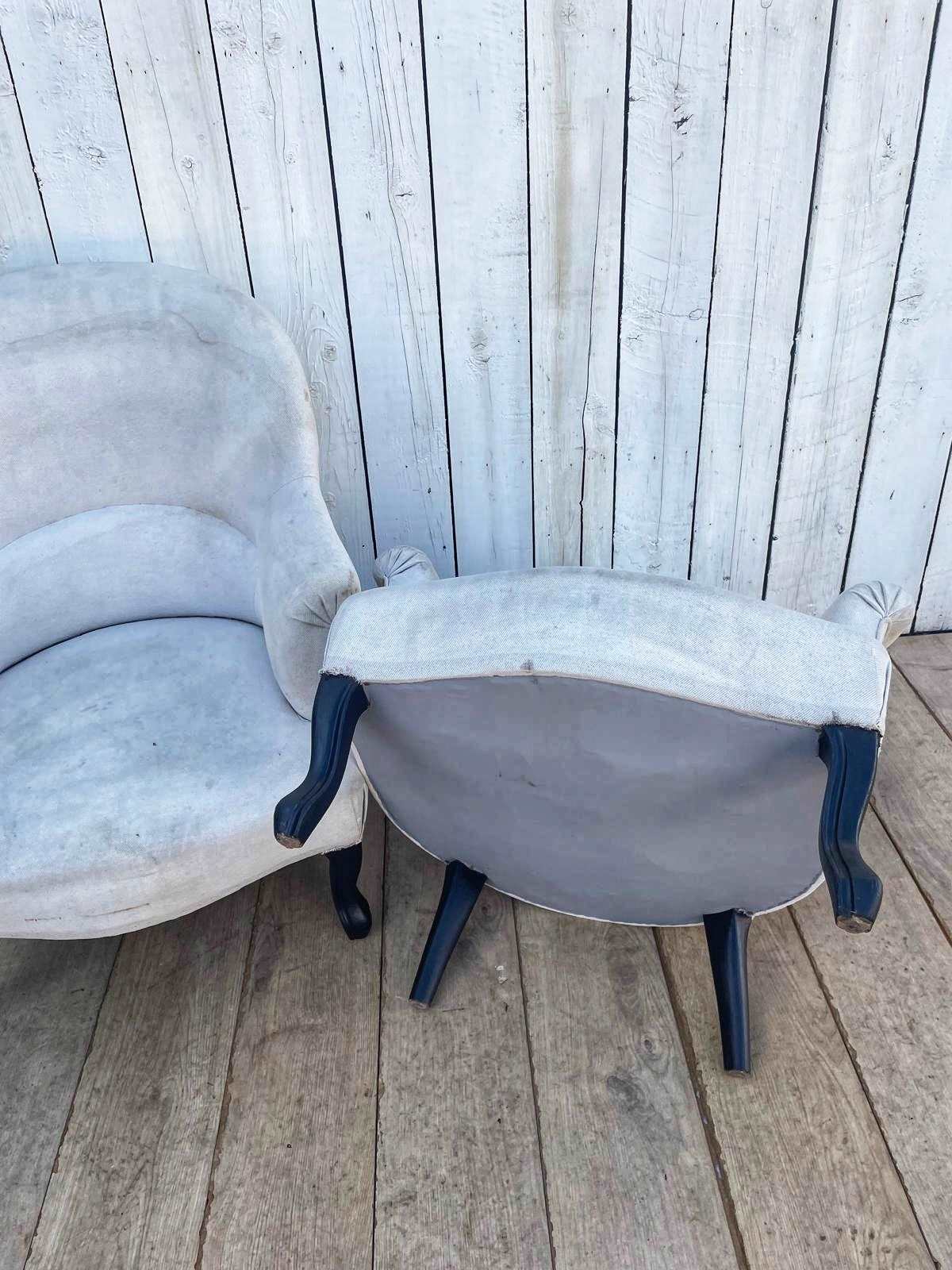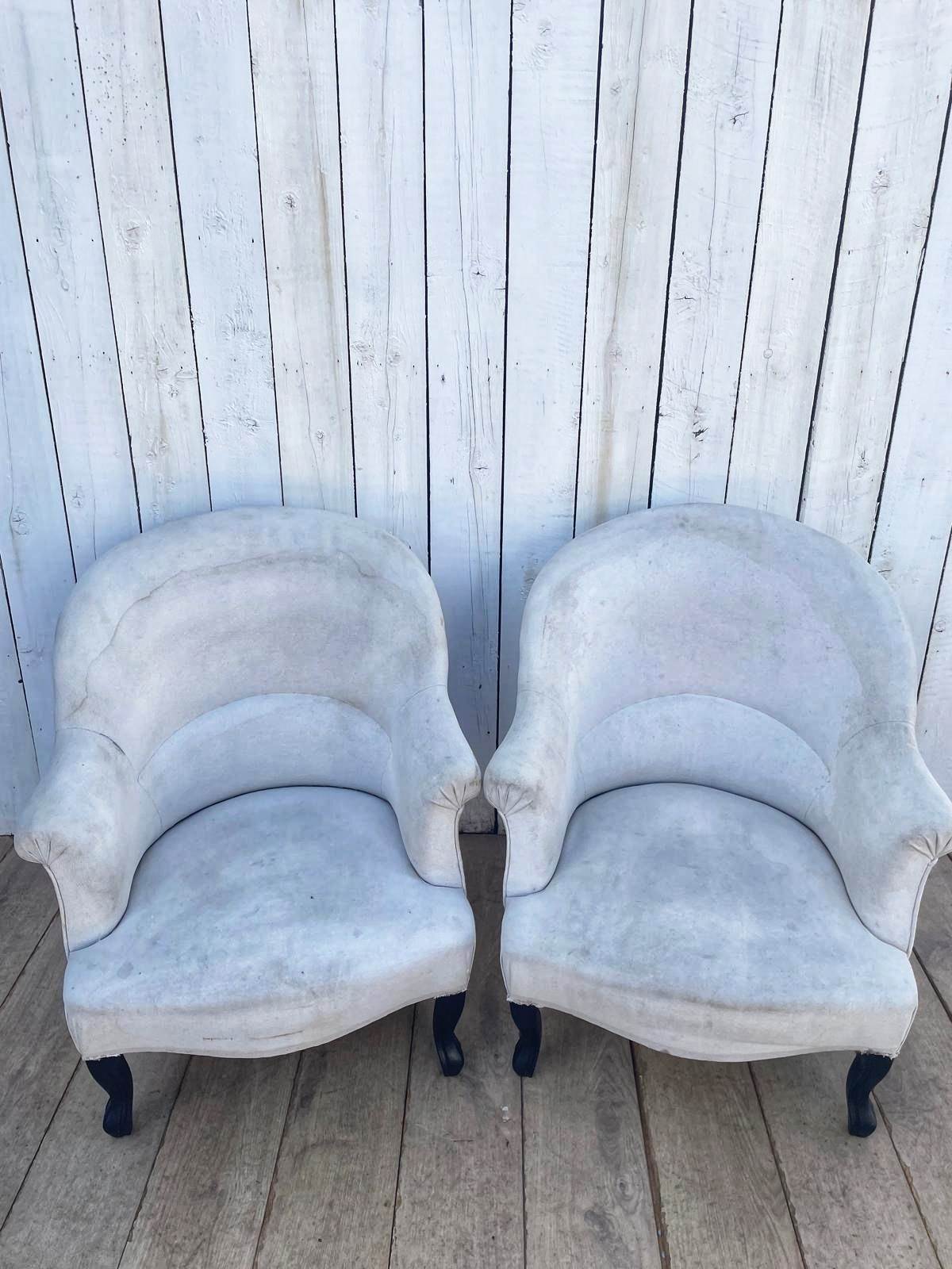 A pair of French 19th century crapaud (toad back) armchairs.
