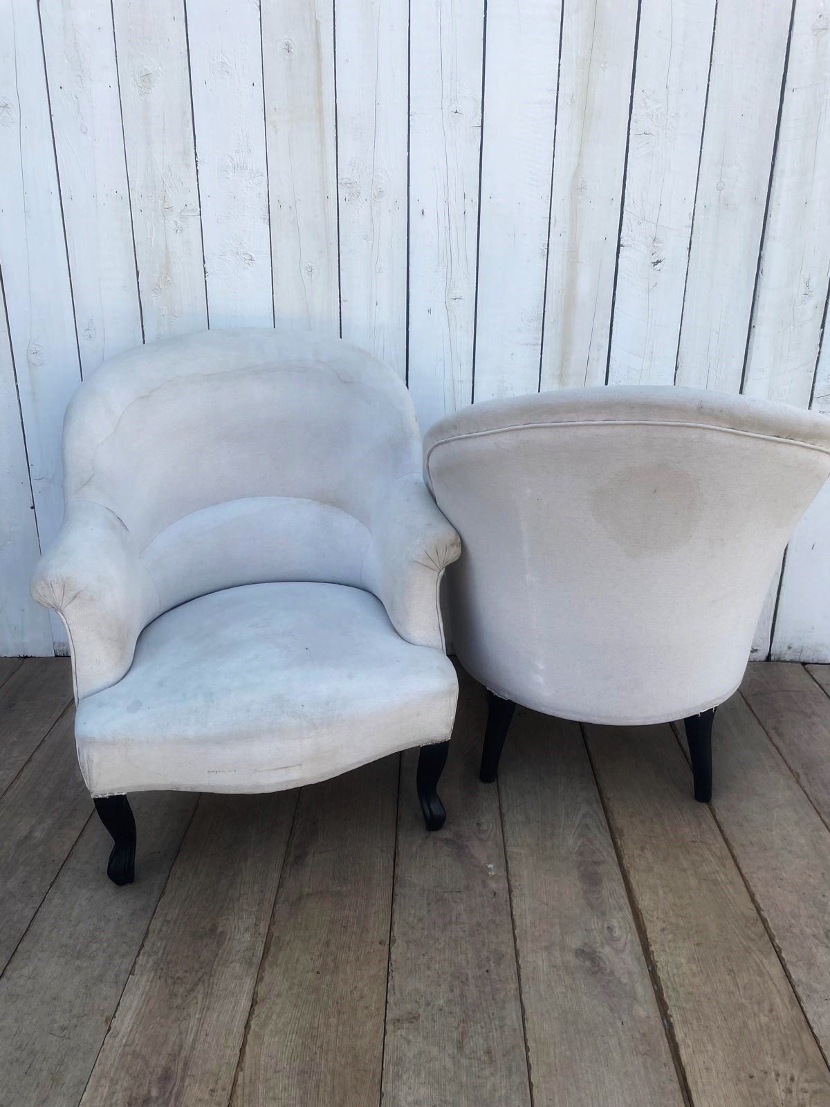 For re-upholstery these chairs are sturdy, well sprung on original ebonised shapely legs.
