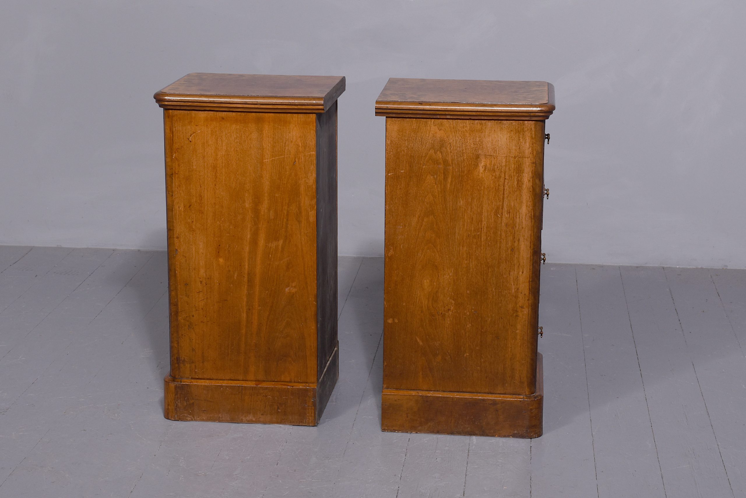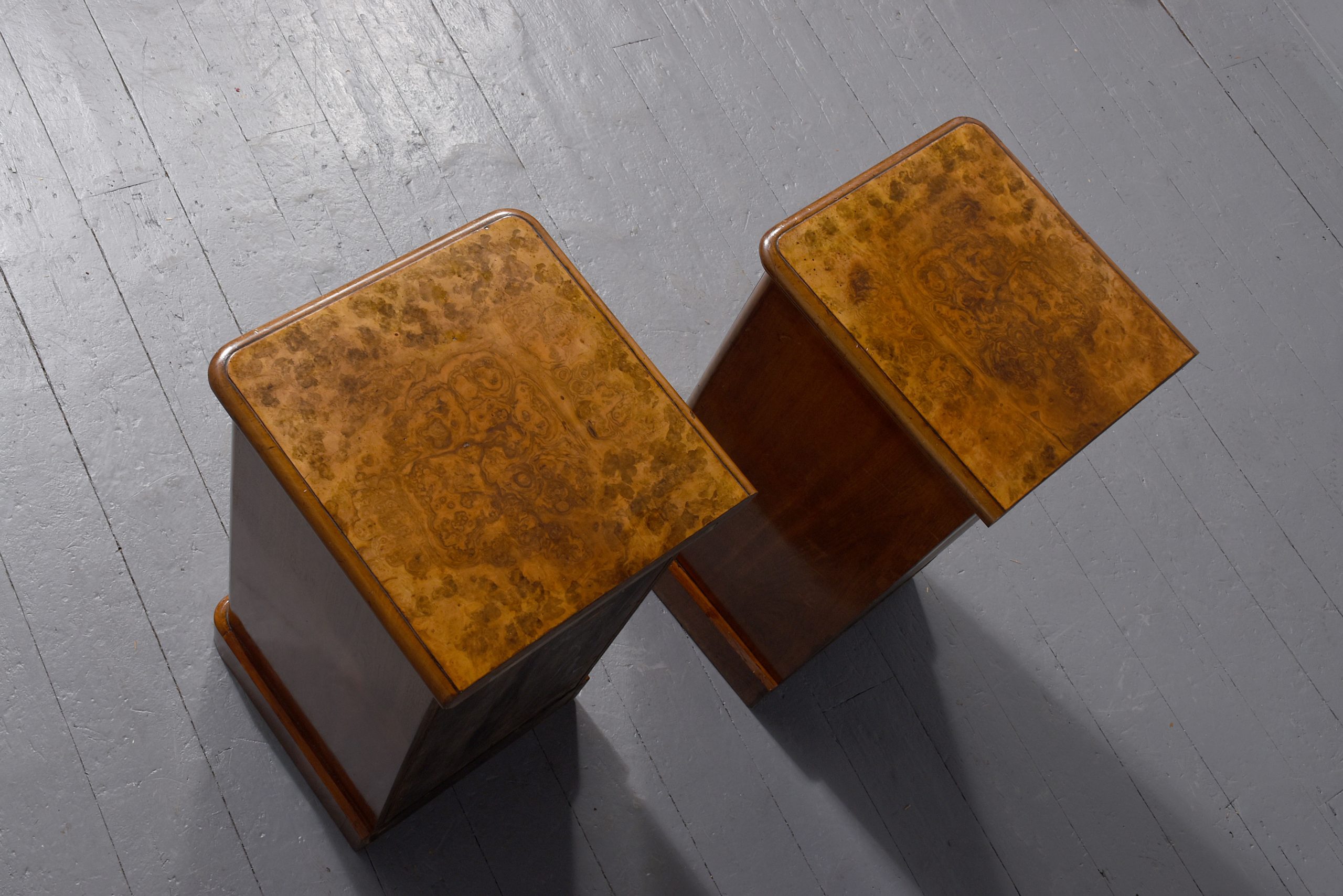 Pair of late Victorian burr walnut small chests of drawers/bedside lockers