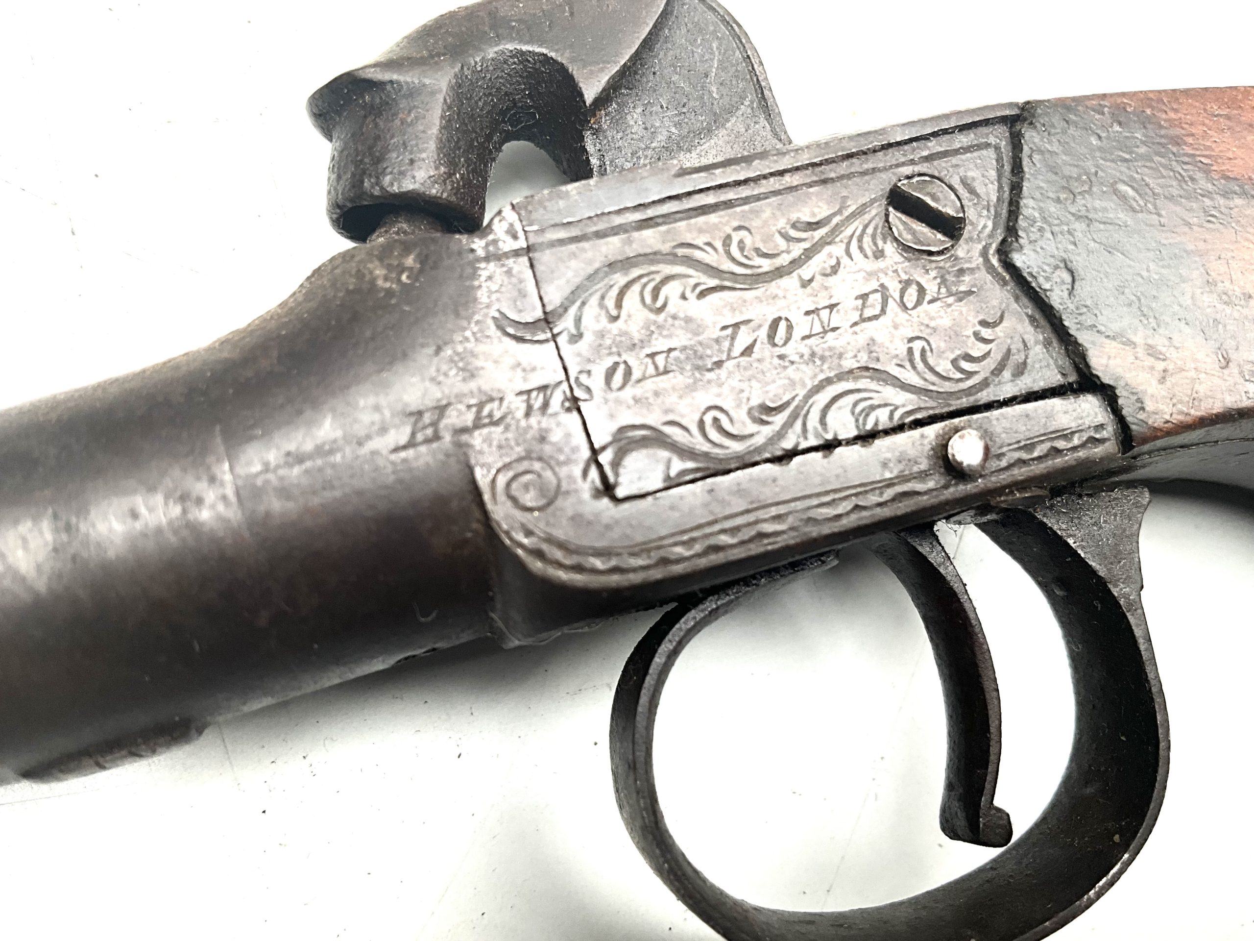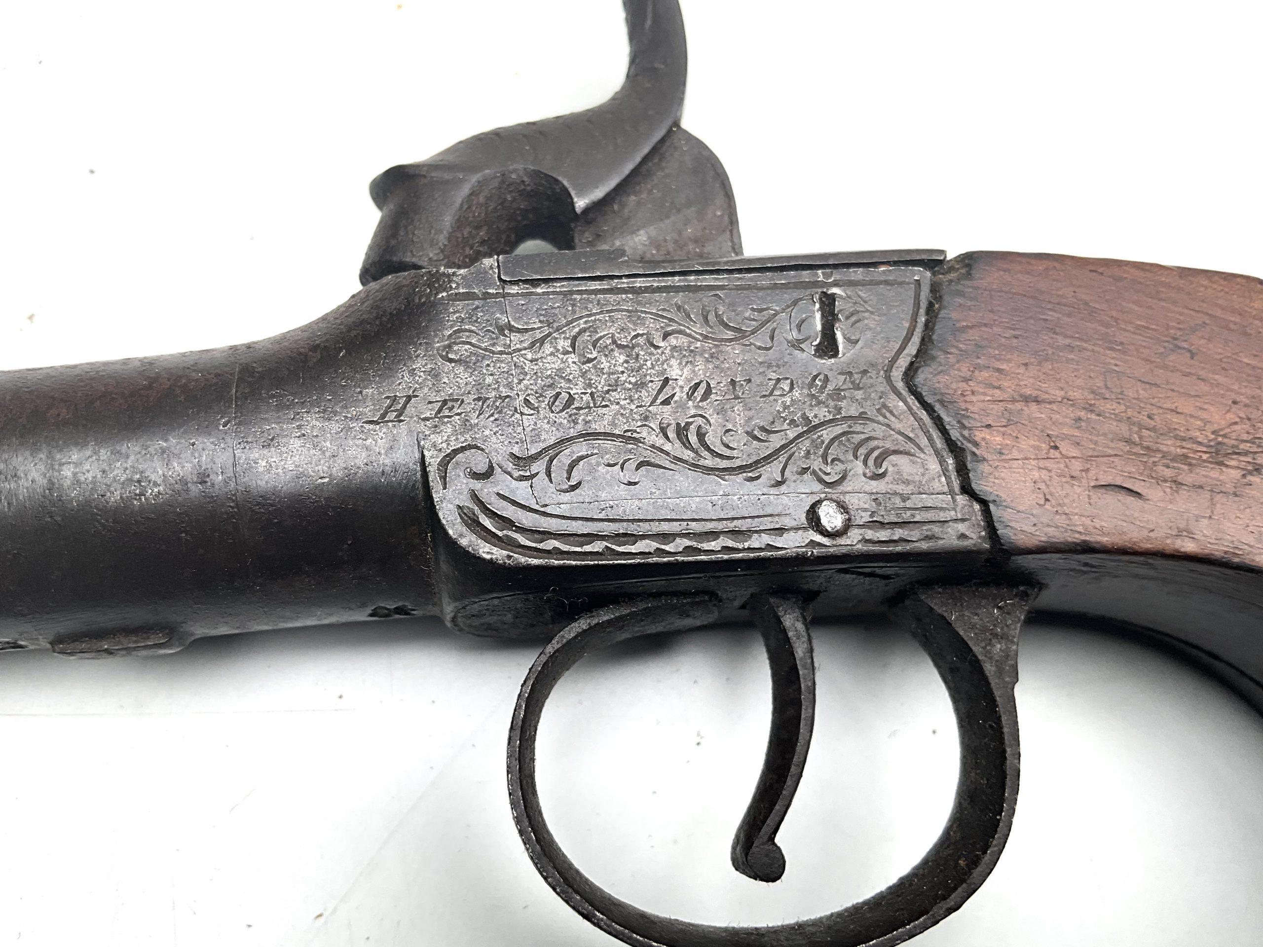 Restoration projects. the matching pair by Hewson of London, both having cocking issues, the trigger springs on both are strong and good, one half cocks the other not at all, length of pistols are 19 cm height 8 cm width at butt 25 mm barrels gauge 1 cm, offering free UK delivery reference DRC8. Tel: +44 7505 165 843 We accept online payments for all our items listed: Bank transfer cash on collection or if wishing over the phone using your debit or credit cards, also doing layby payments plan, or email giving your address details & contact number and we shall send you your items invoice to make payment with your card. Send your request to – john.strong2@gmail.com