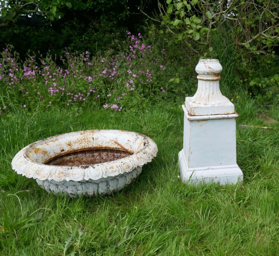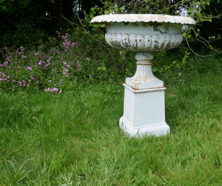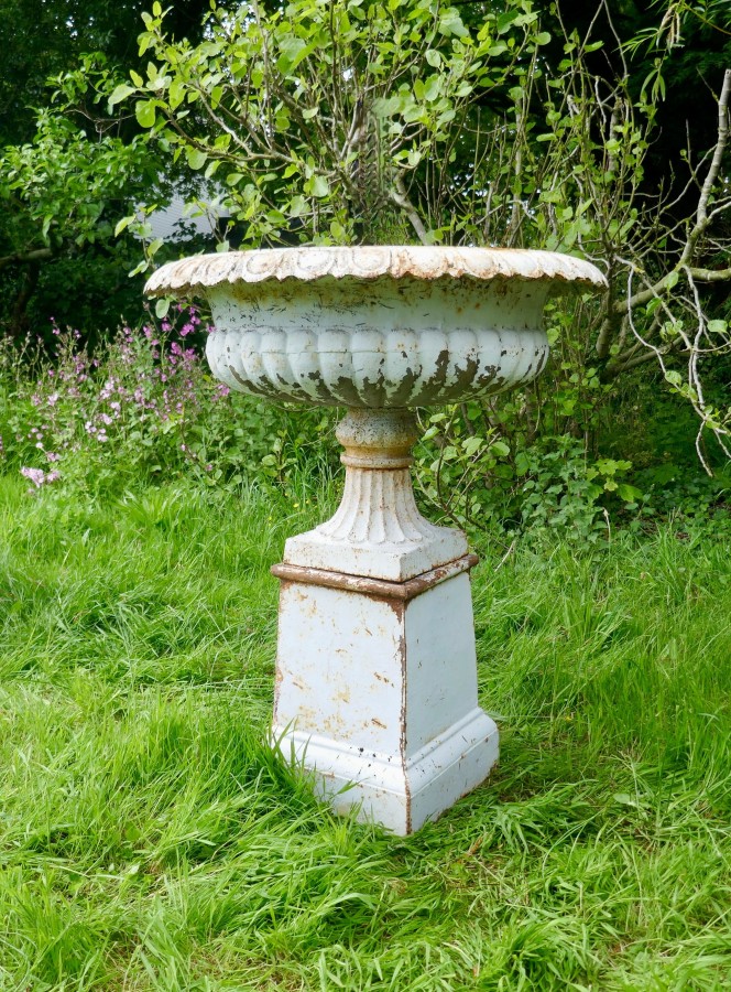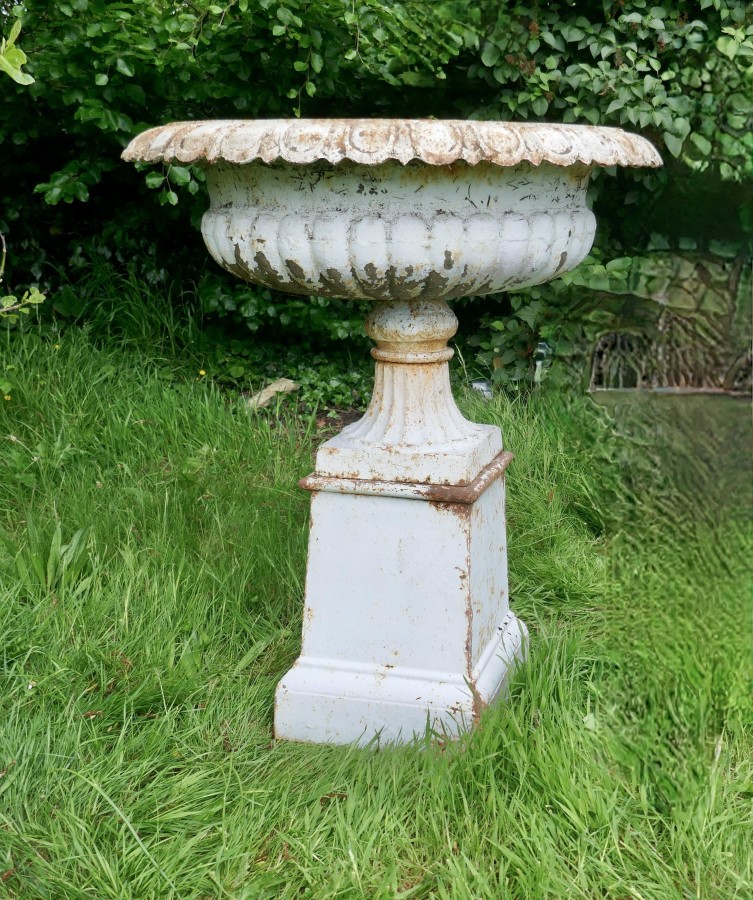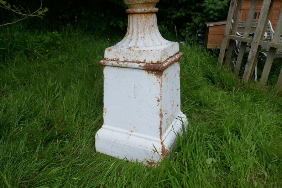 Pair of very large Victorian cast iron garden urns, garden planters This is a superb and unusually large pair of cast iron urns The urns are in good condition for their age, still very sound although they are weather worn and have slightly rusty paint which after all this time has protected them from the elements, they could be repainted for a newer spruced up look These are very heavy pieces needless to say, they do come into three to aid transportation, we will supply new fixings with the pair The urns are 52” tall, and 44” in diameter WD88. Manufacture Date : 1900 Materials : Iron