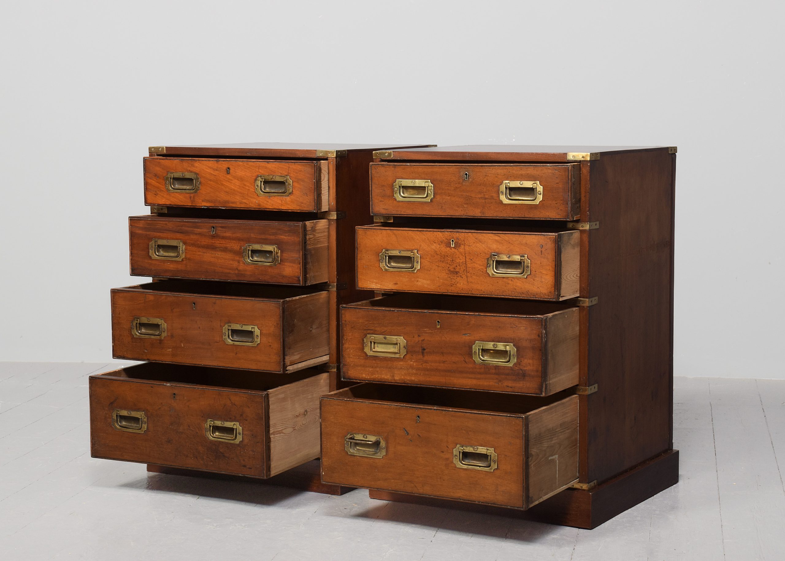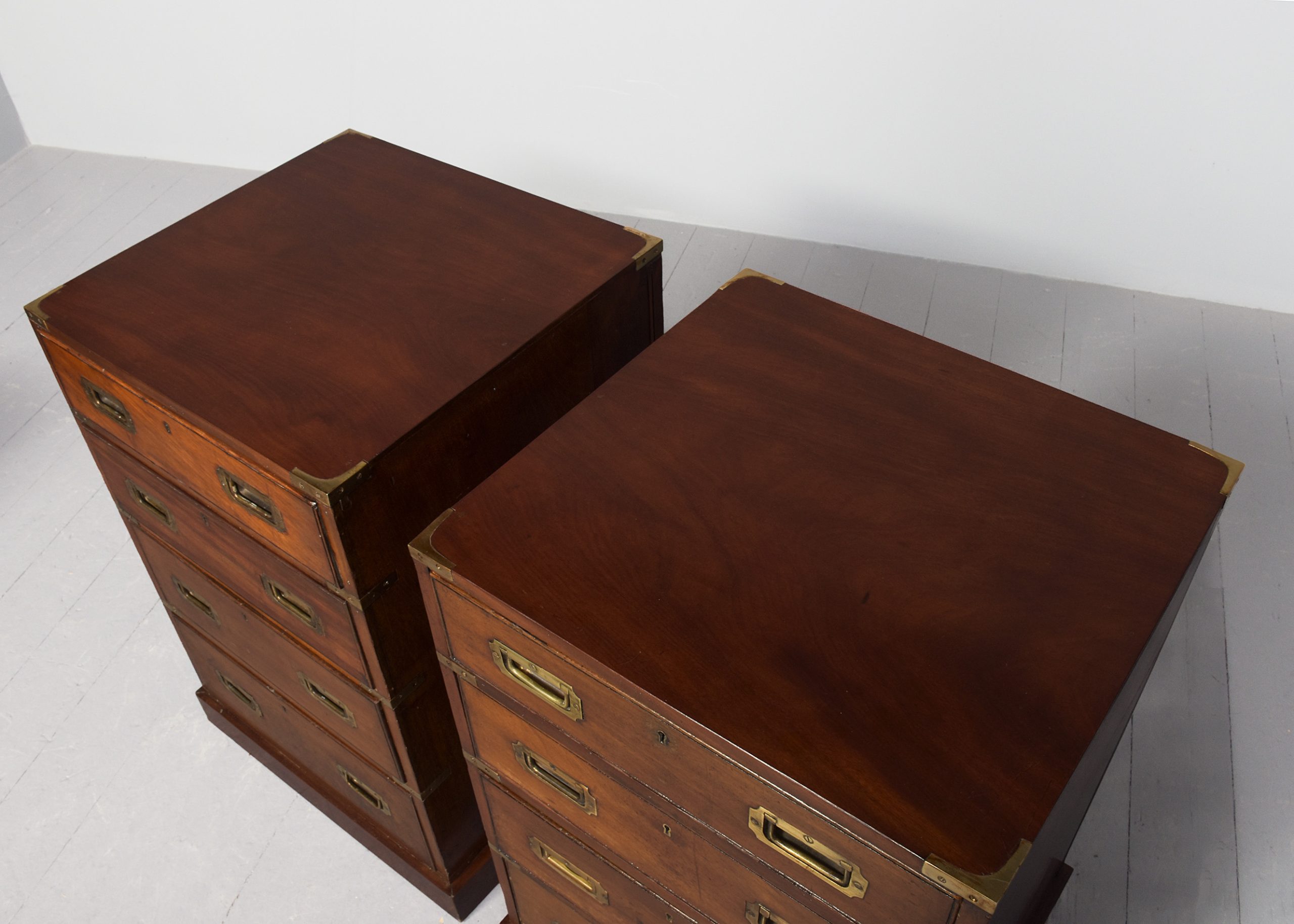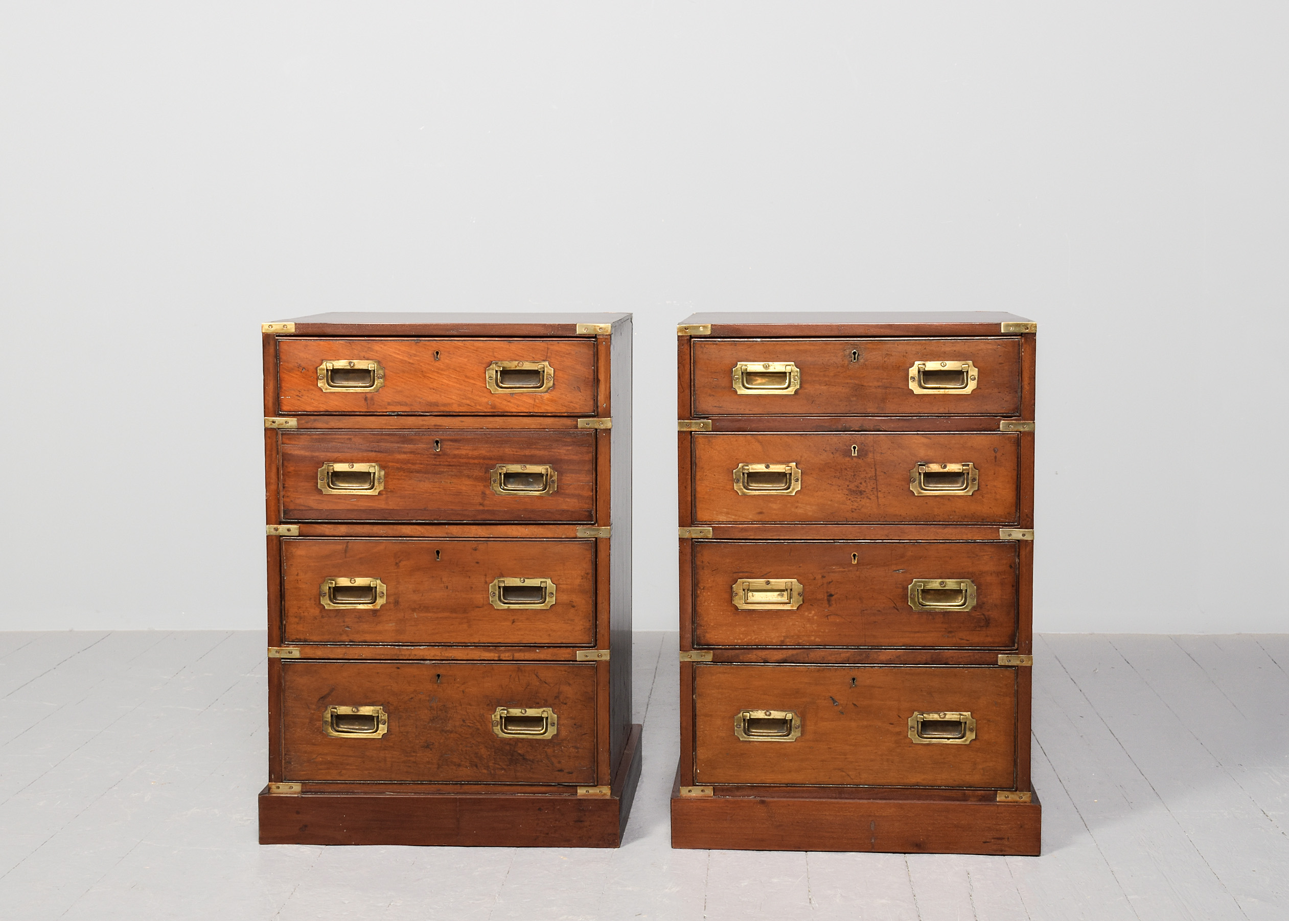 Pair of Victorian brass-bound neat-sized mahogany military chest of drawers