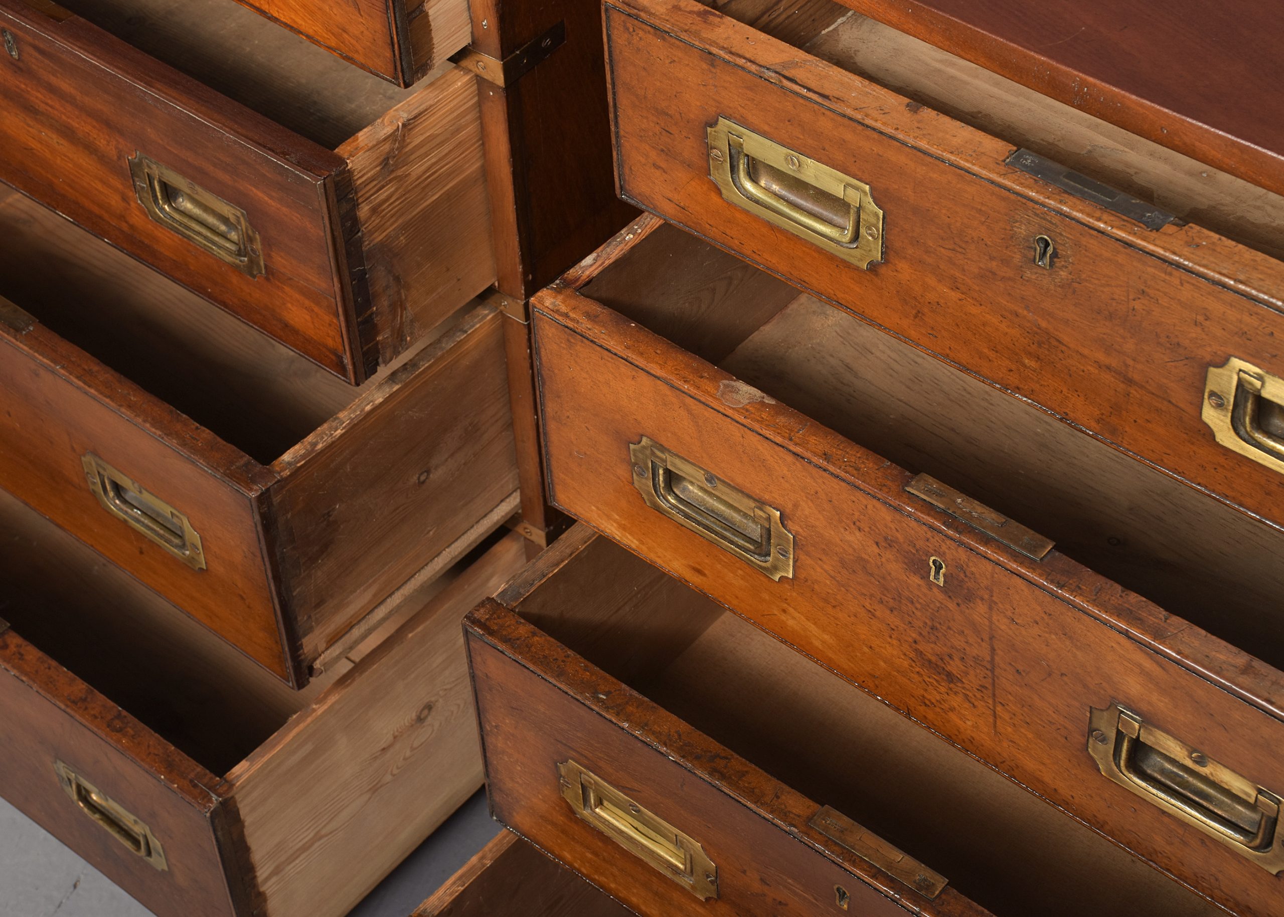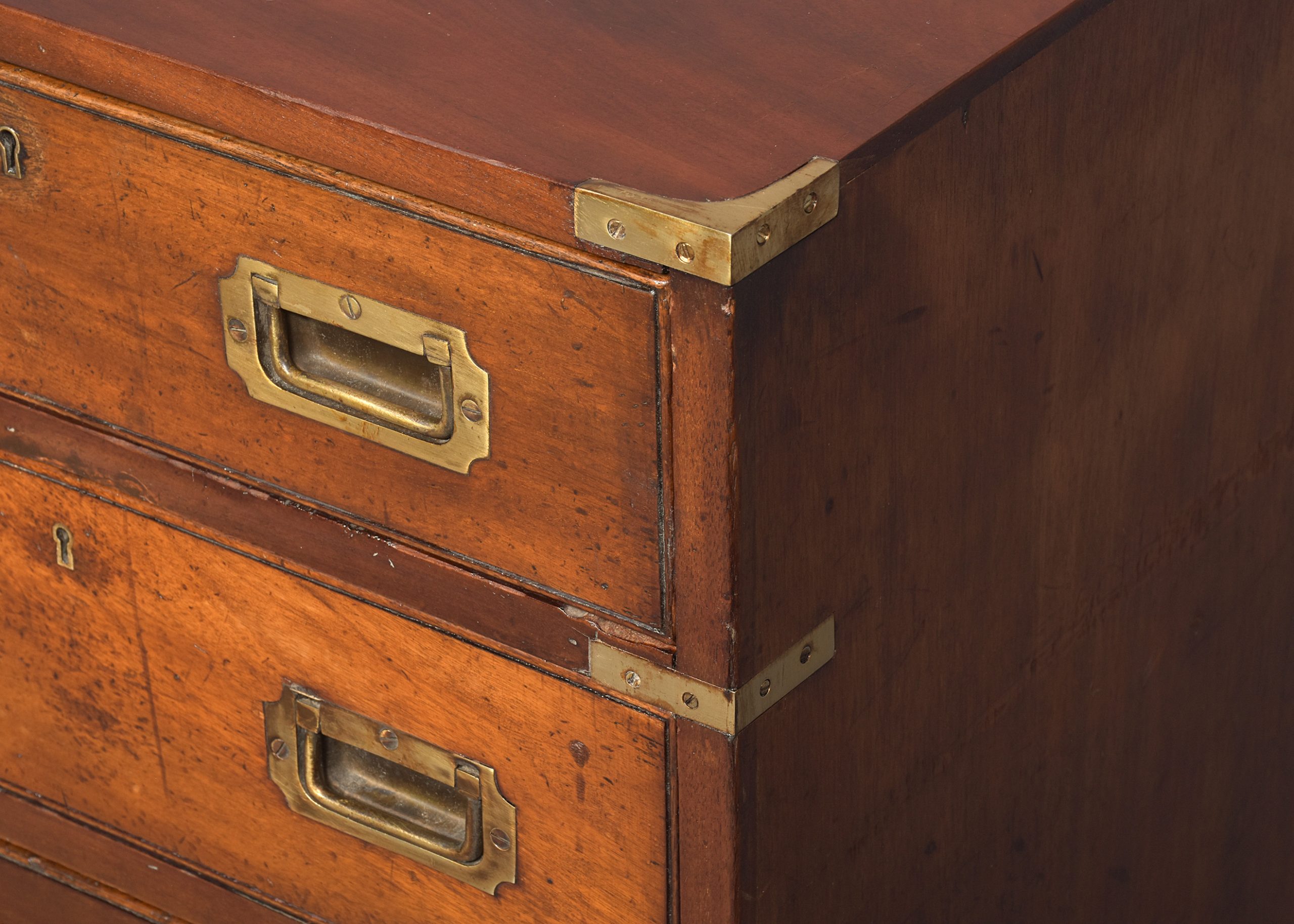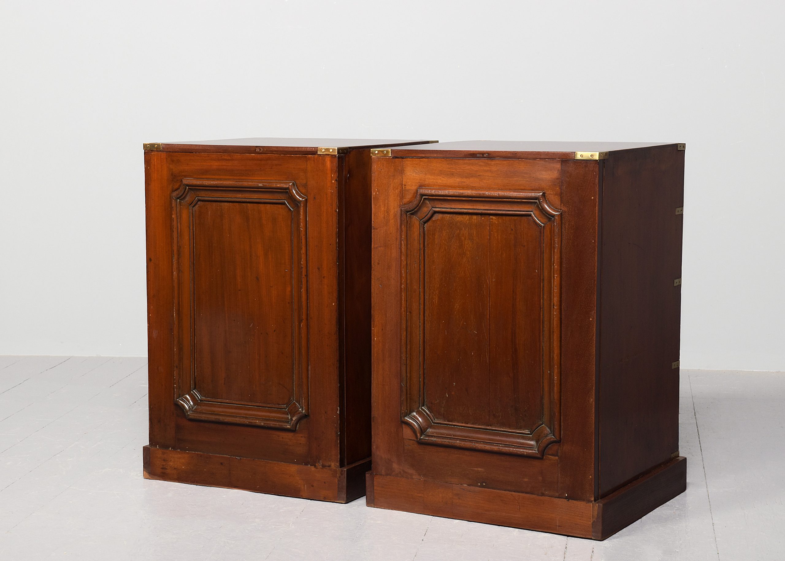 Pair of Victorian brass-bound neat-sized mahogany military chest of drawers