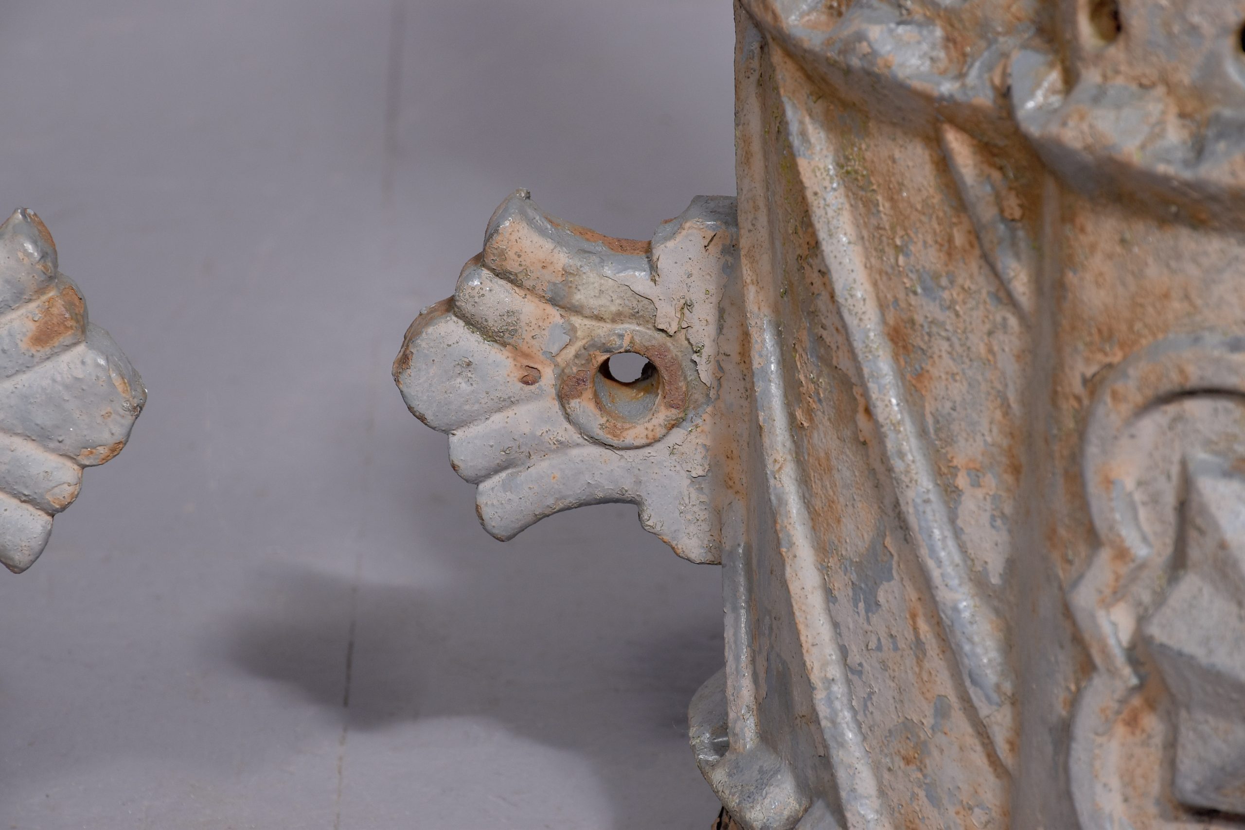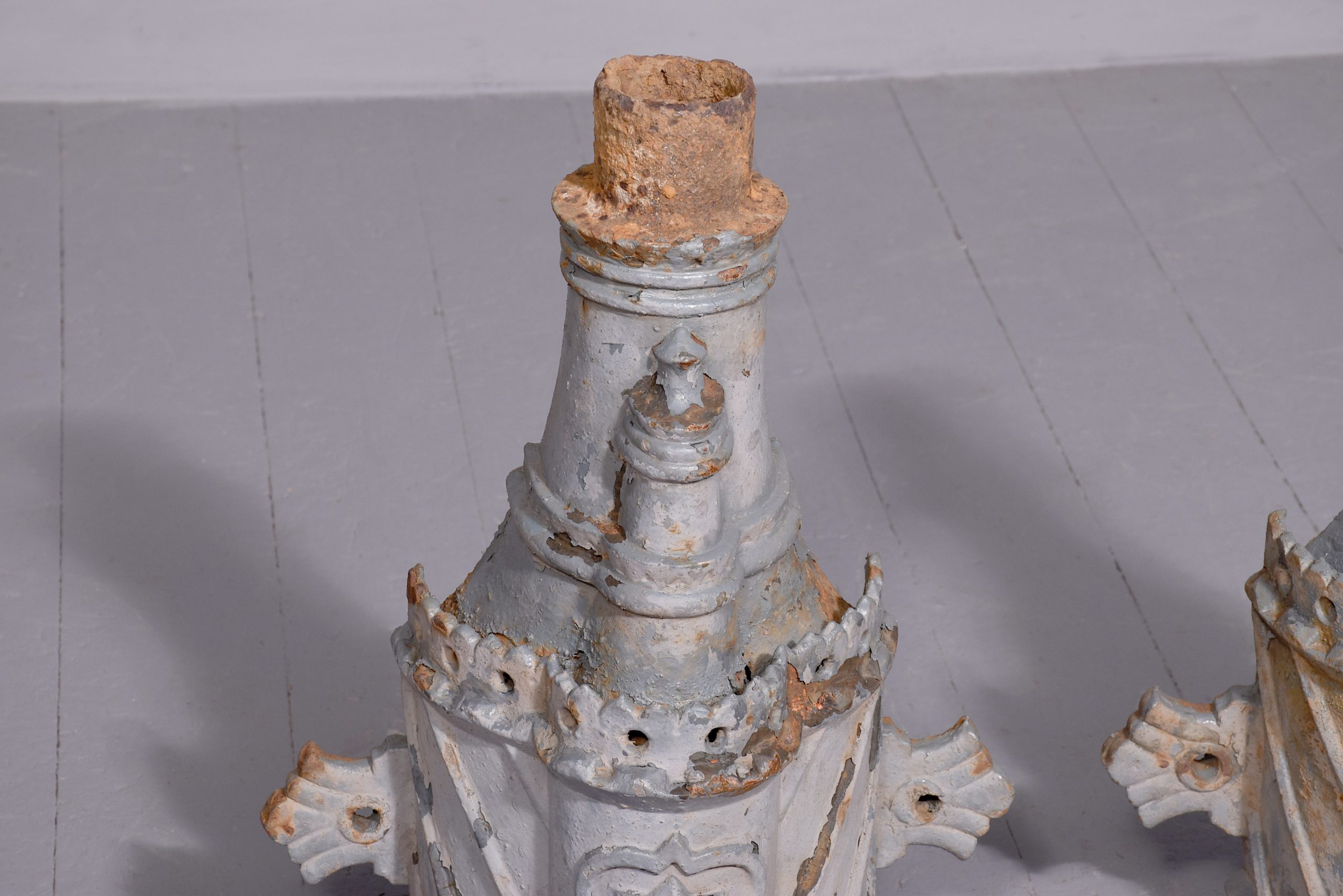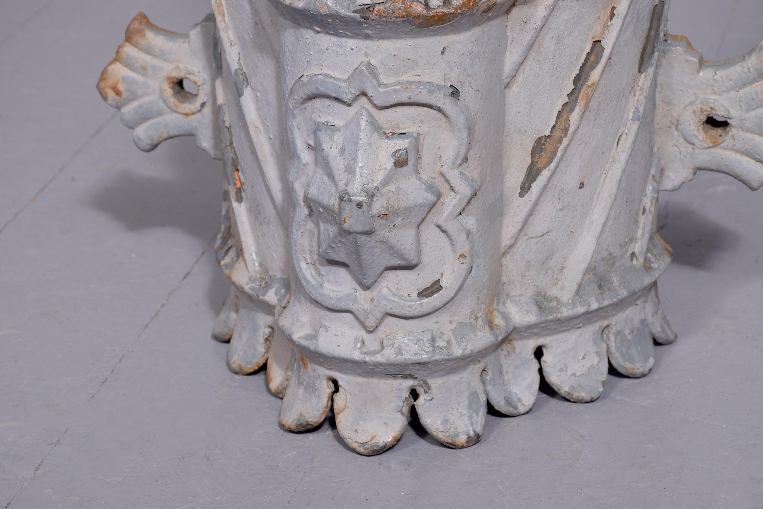 Circa 1870. A quality pair of cast iron rain water hoppers, each with a flared pierced top, curved front, faced by a cartouche shaped section with a star in the centre, the tapering body with pierced sections and a small frieze.