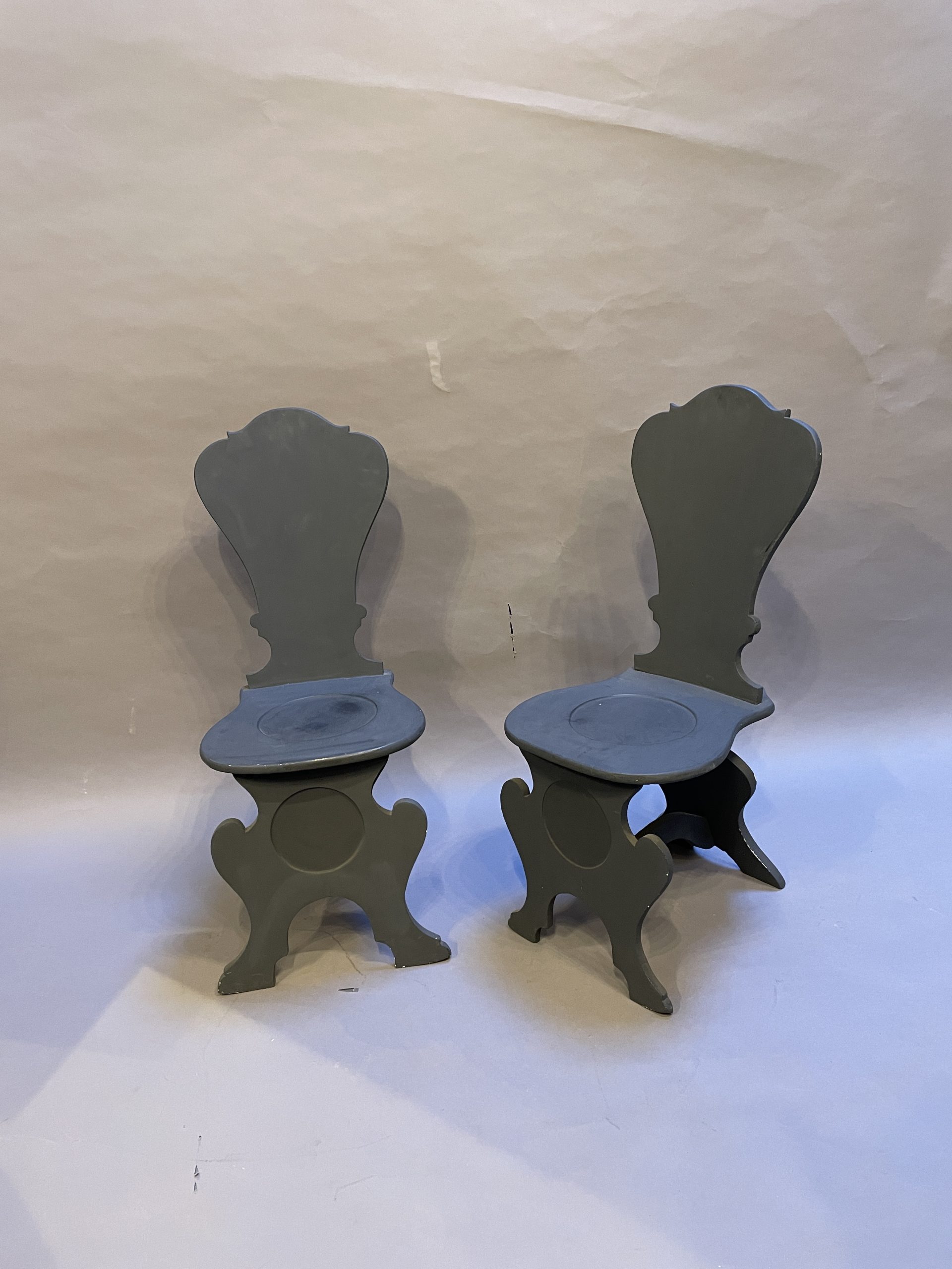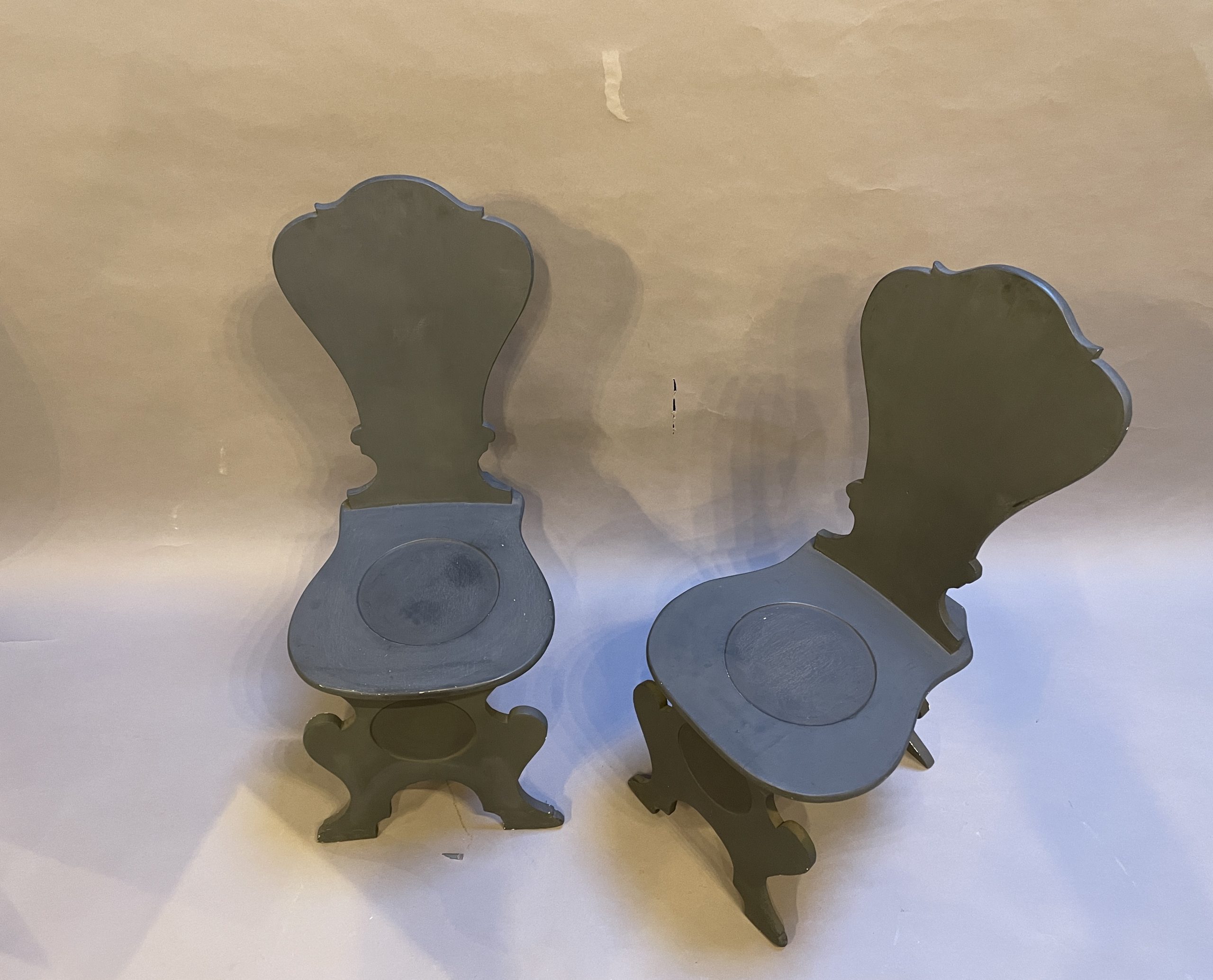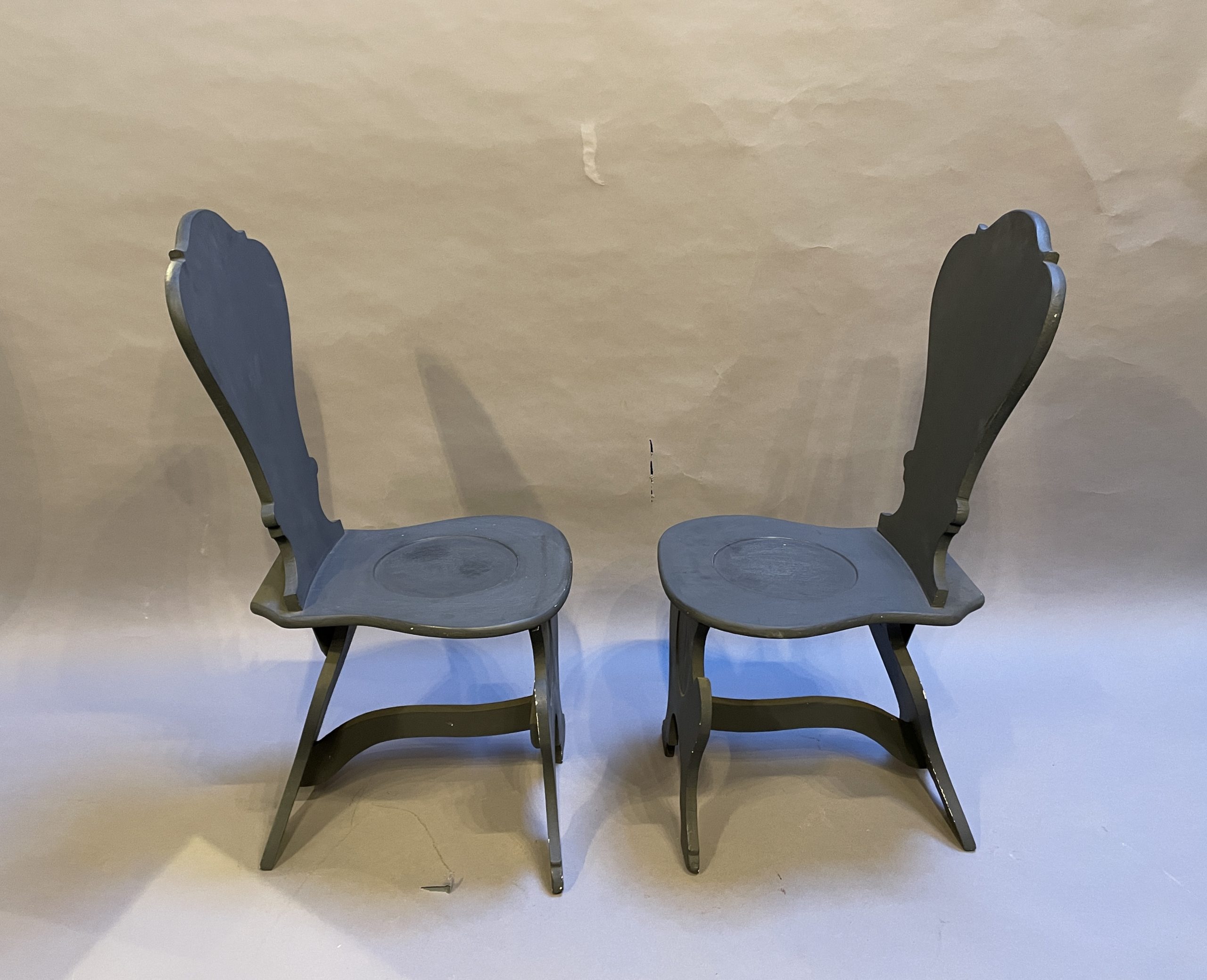 Pair Painted Sgabello Hall Chairs