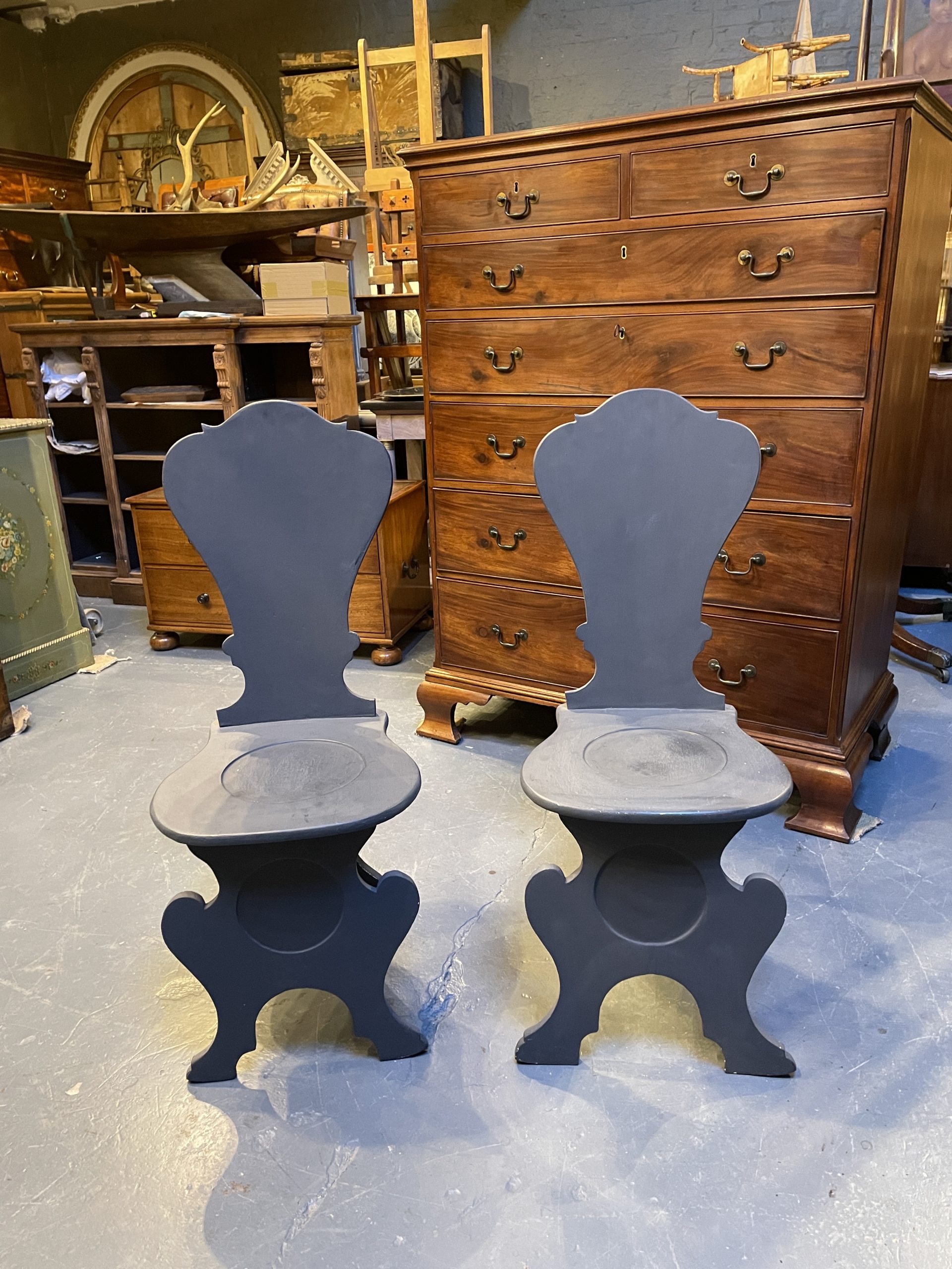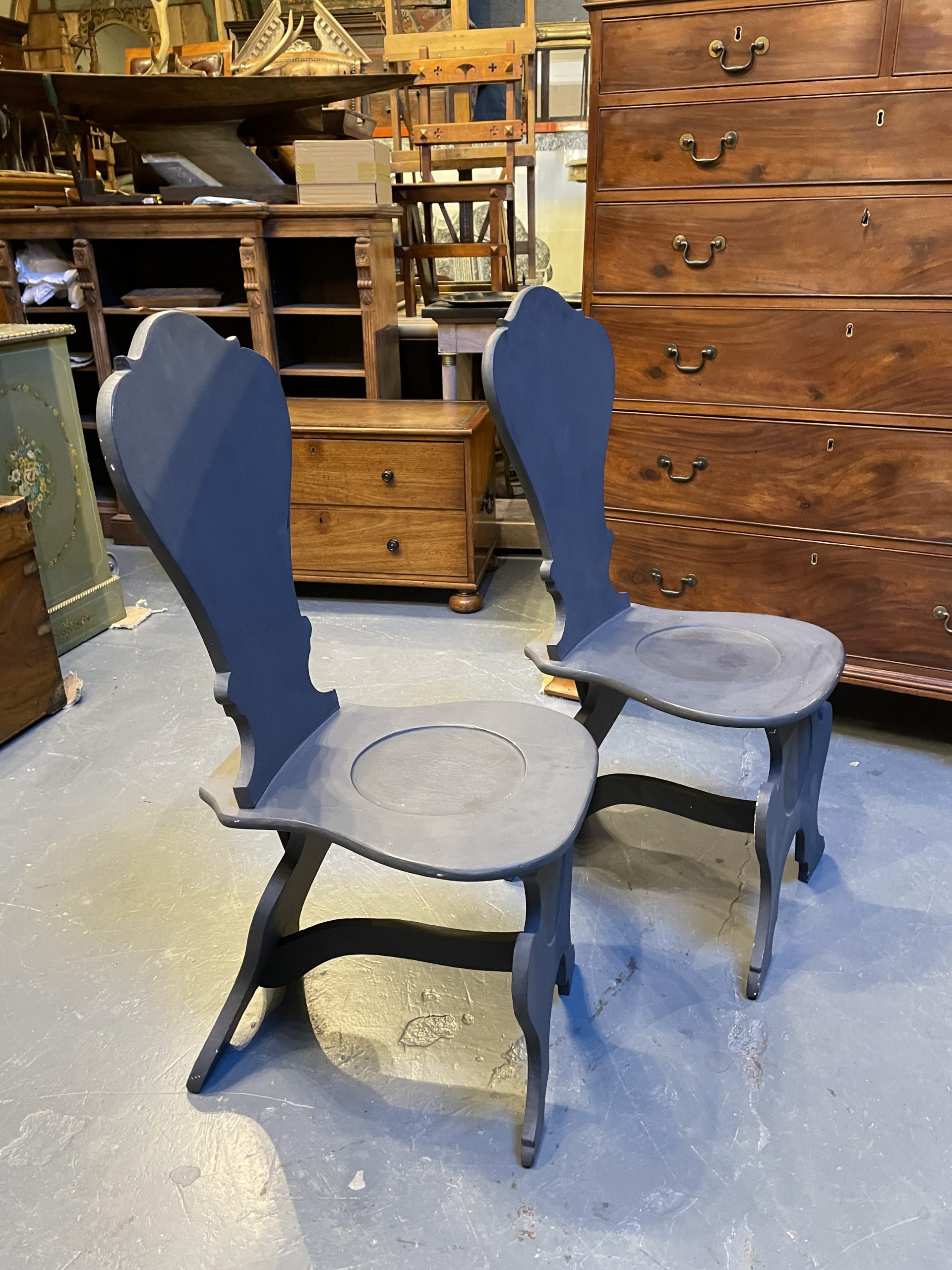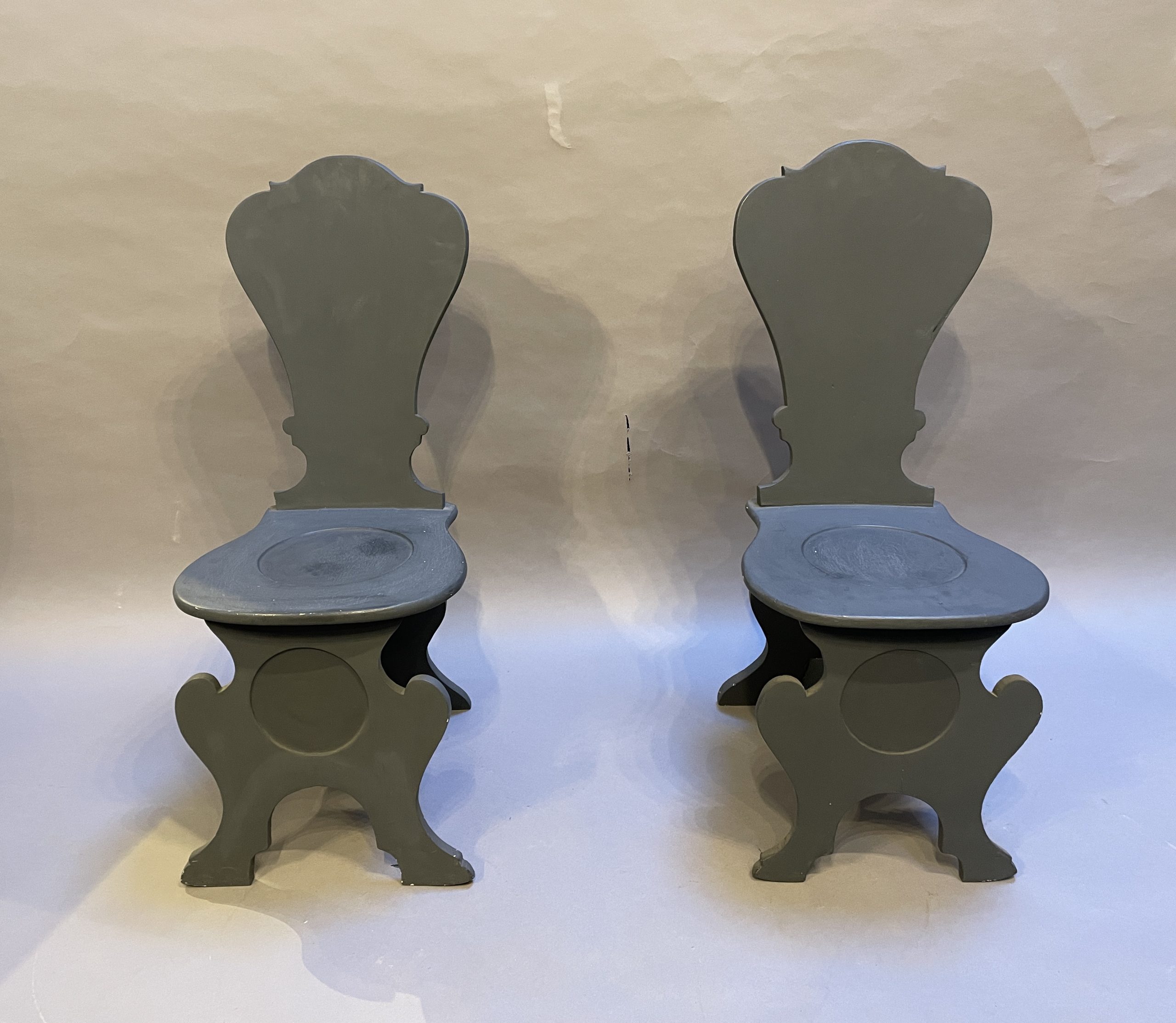 Pair Painted Sgabello Hall Chairs