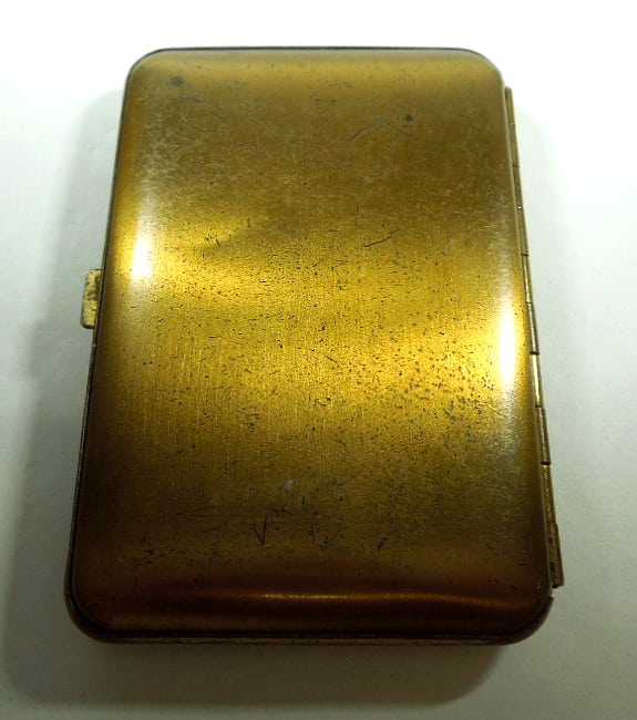 I can’t be sure of the age but would guess it to have been made in the 1930’s or 1940’s. There is a minor dent to the cover and the back and some wear to the enamel figures which can be expected from an item in regular use.
