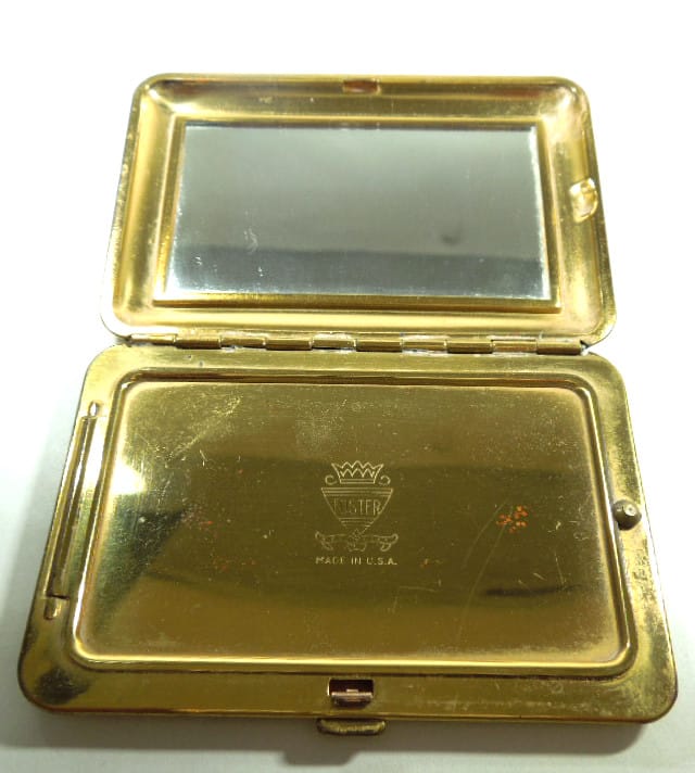 It measures 7.7cm x 5.2cm. This is a fabulous and quirky little powder compact for a collector or lovers of vintage accessories.
