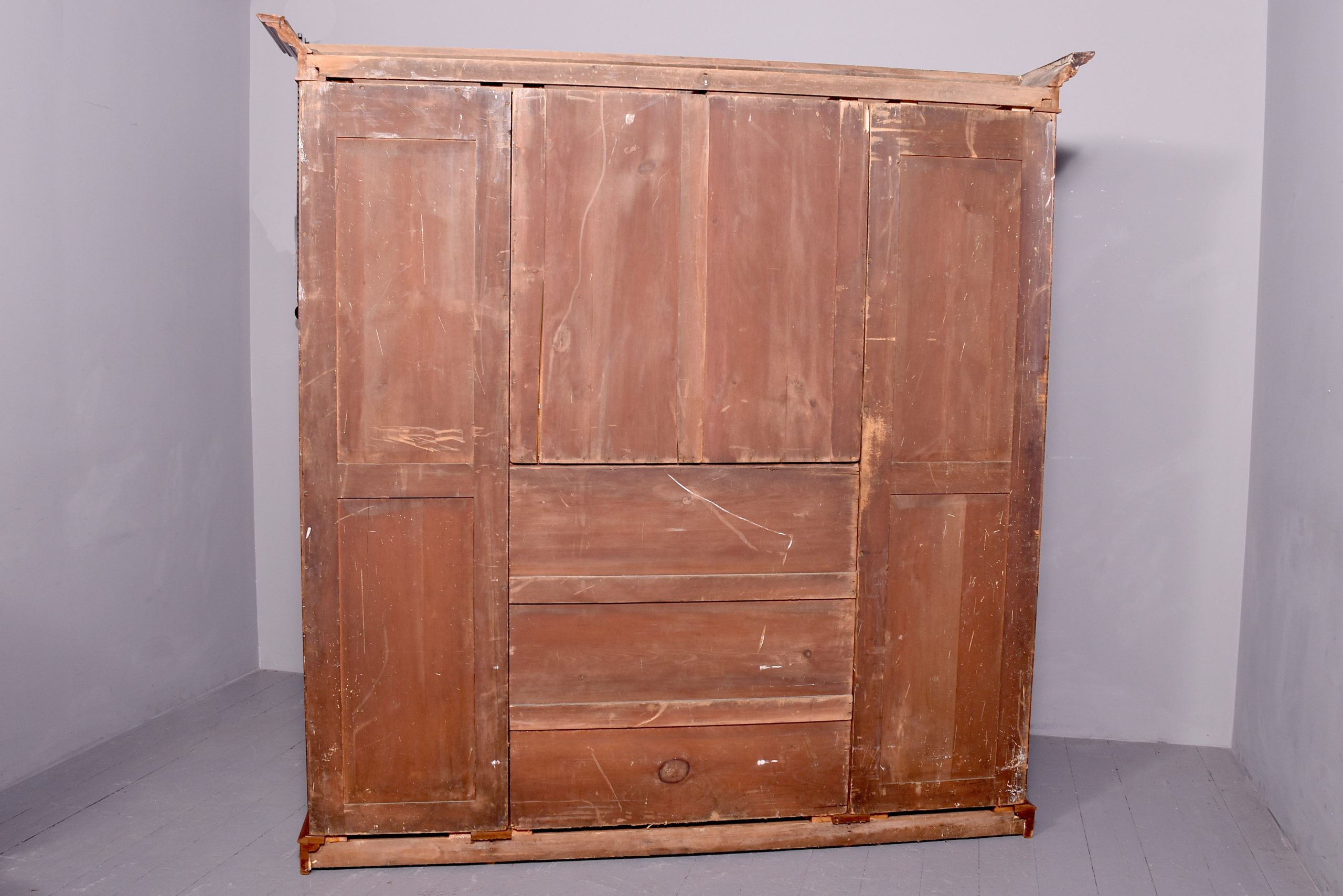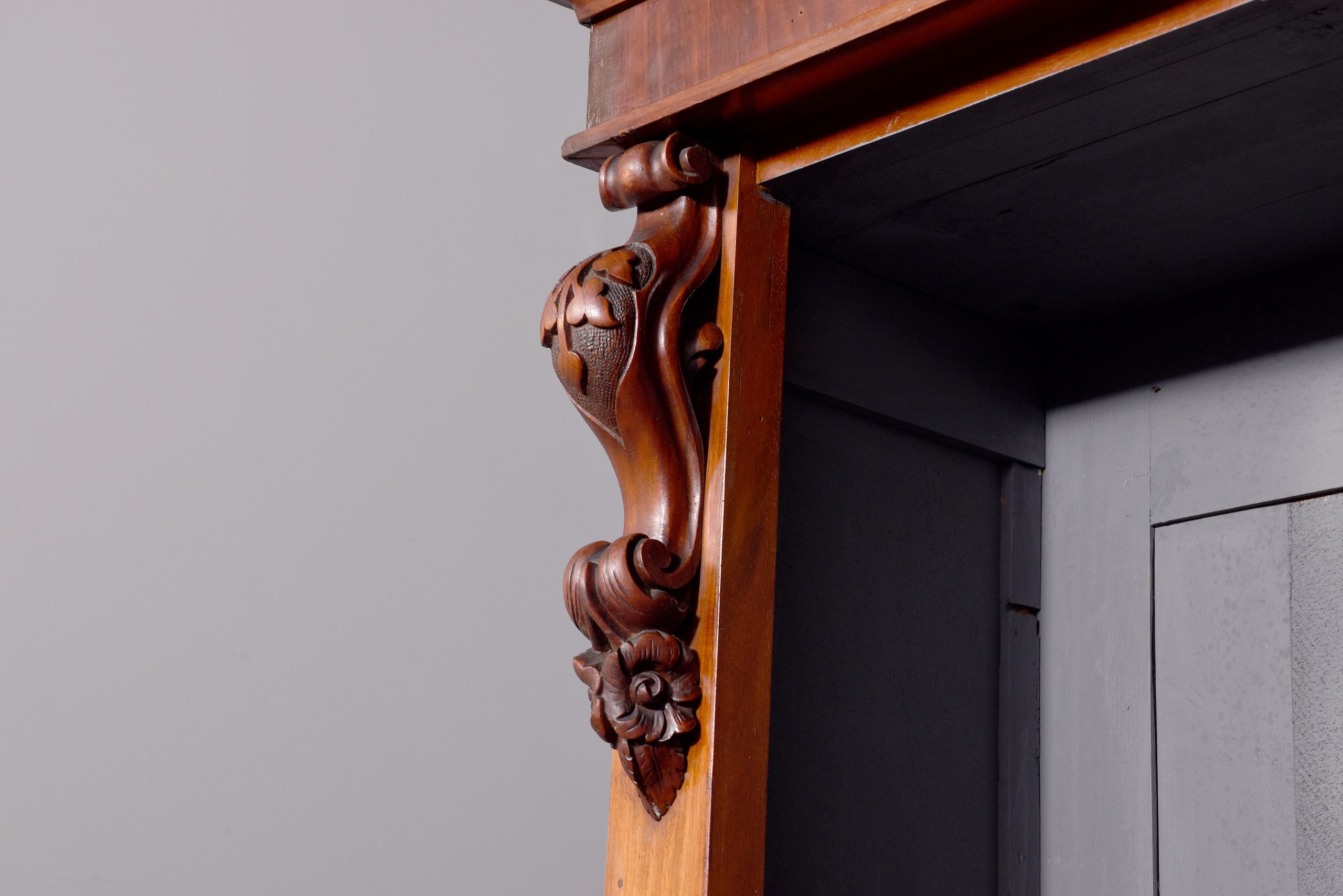 Quality three-section, mid-Victorian mahogany open bookcase