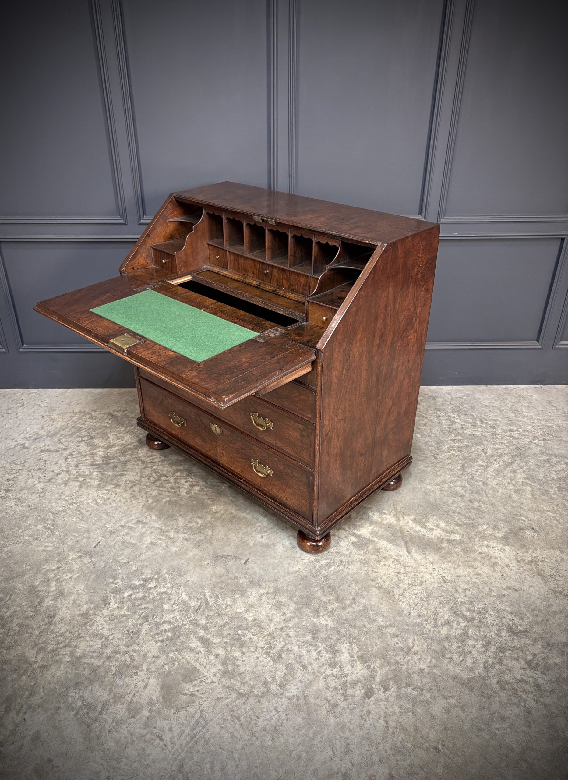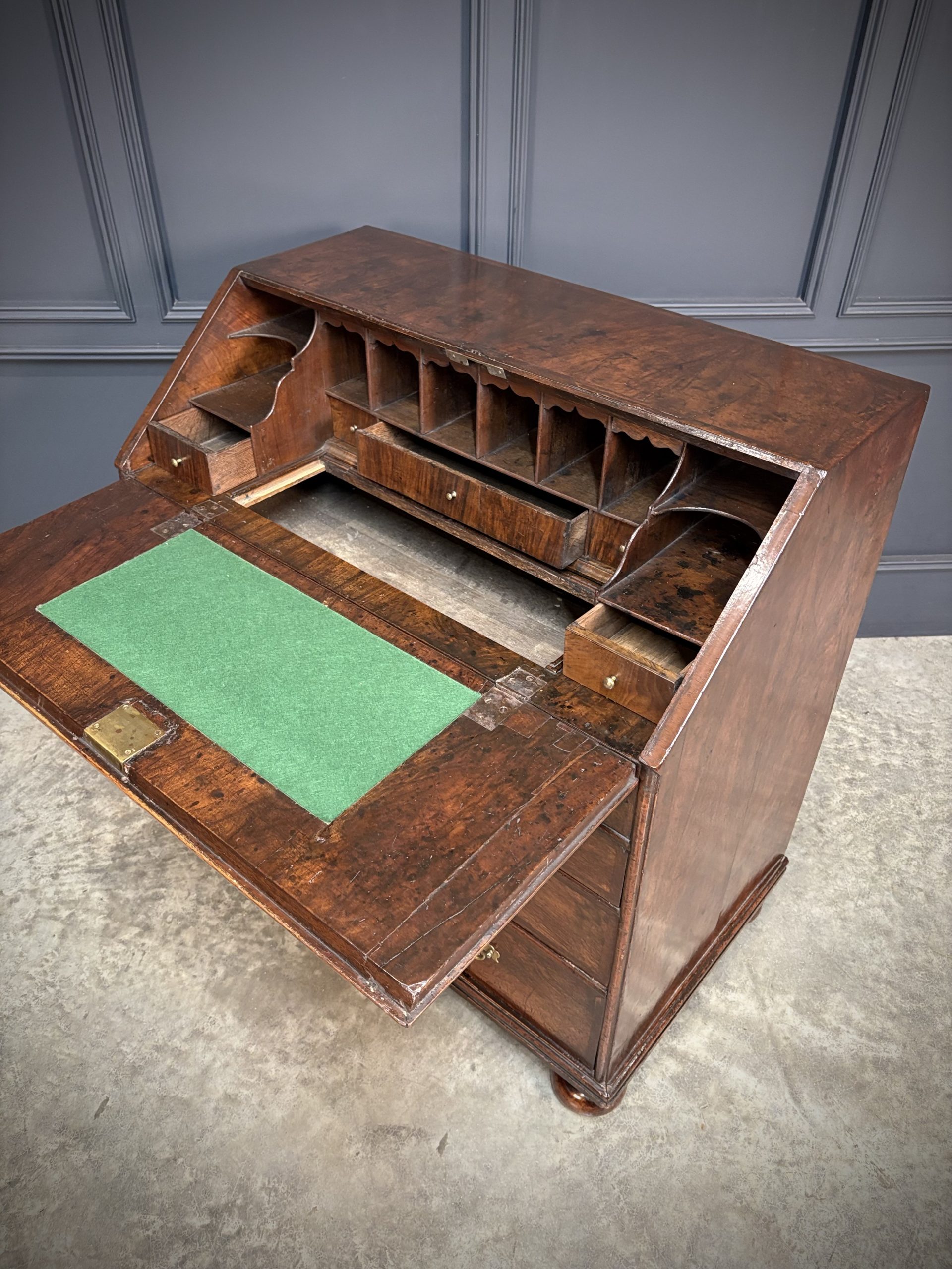 A fine early 18th century Queen Anne walnut bureau of excellent colour and figuring, dating to circa 1710.