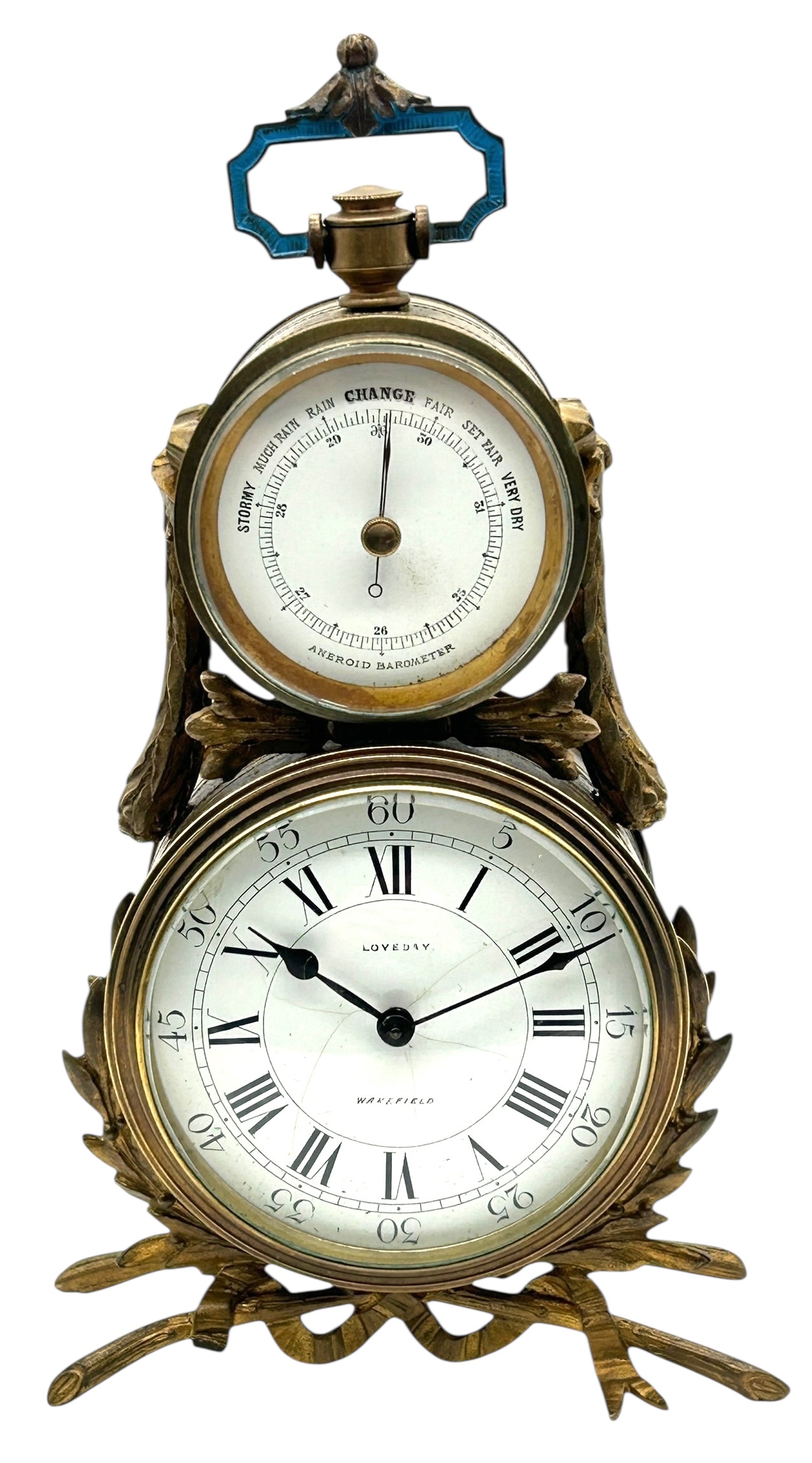 Rare Antique French Desk Clock – Combination Barometer & Mantel Clock Set C1870