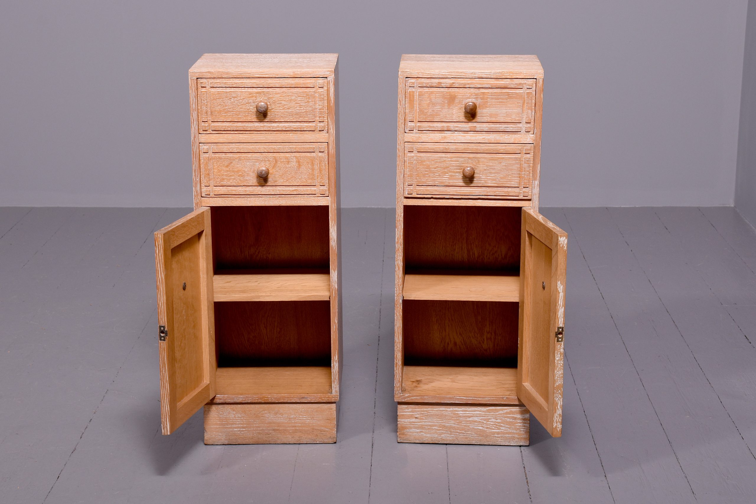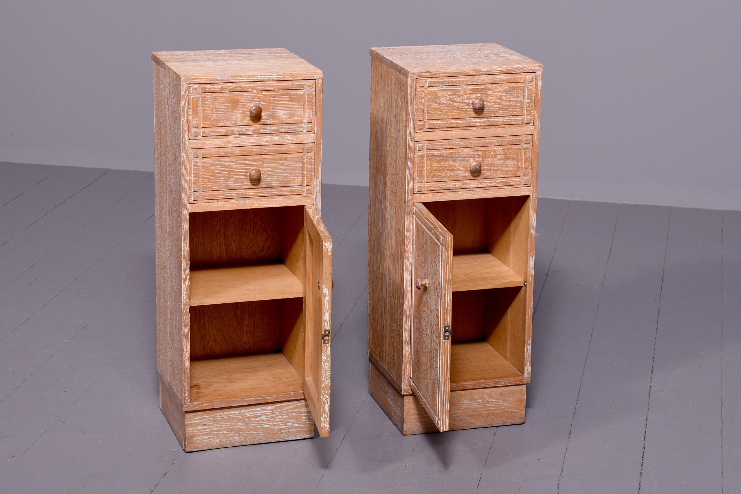 Rare Pair of Heal’s Limed Oak Bedside Lockers on the Art Deco Style