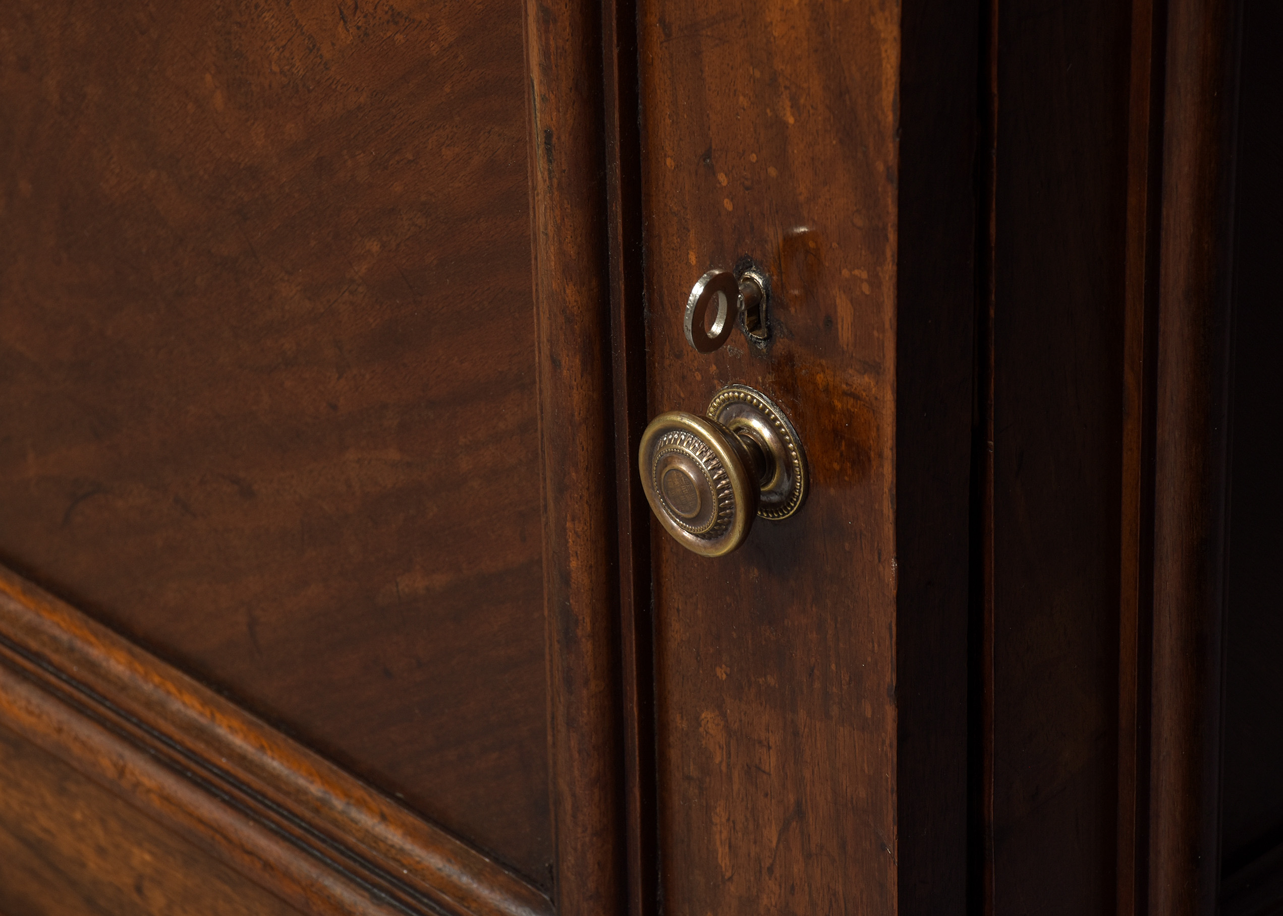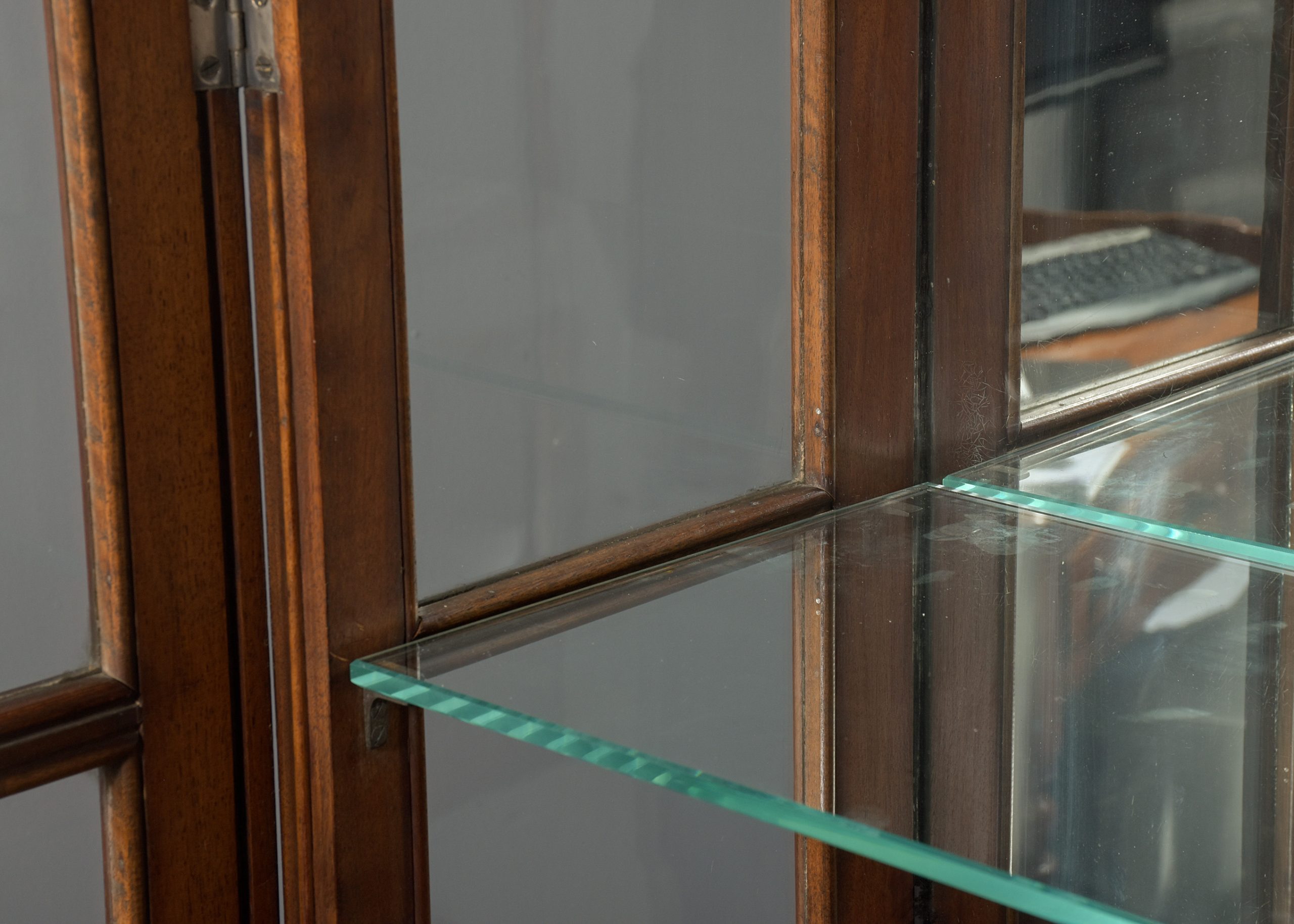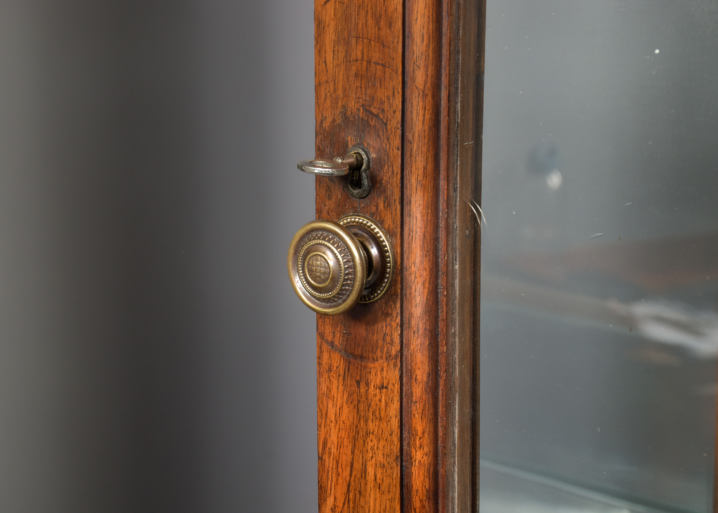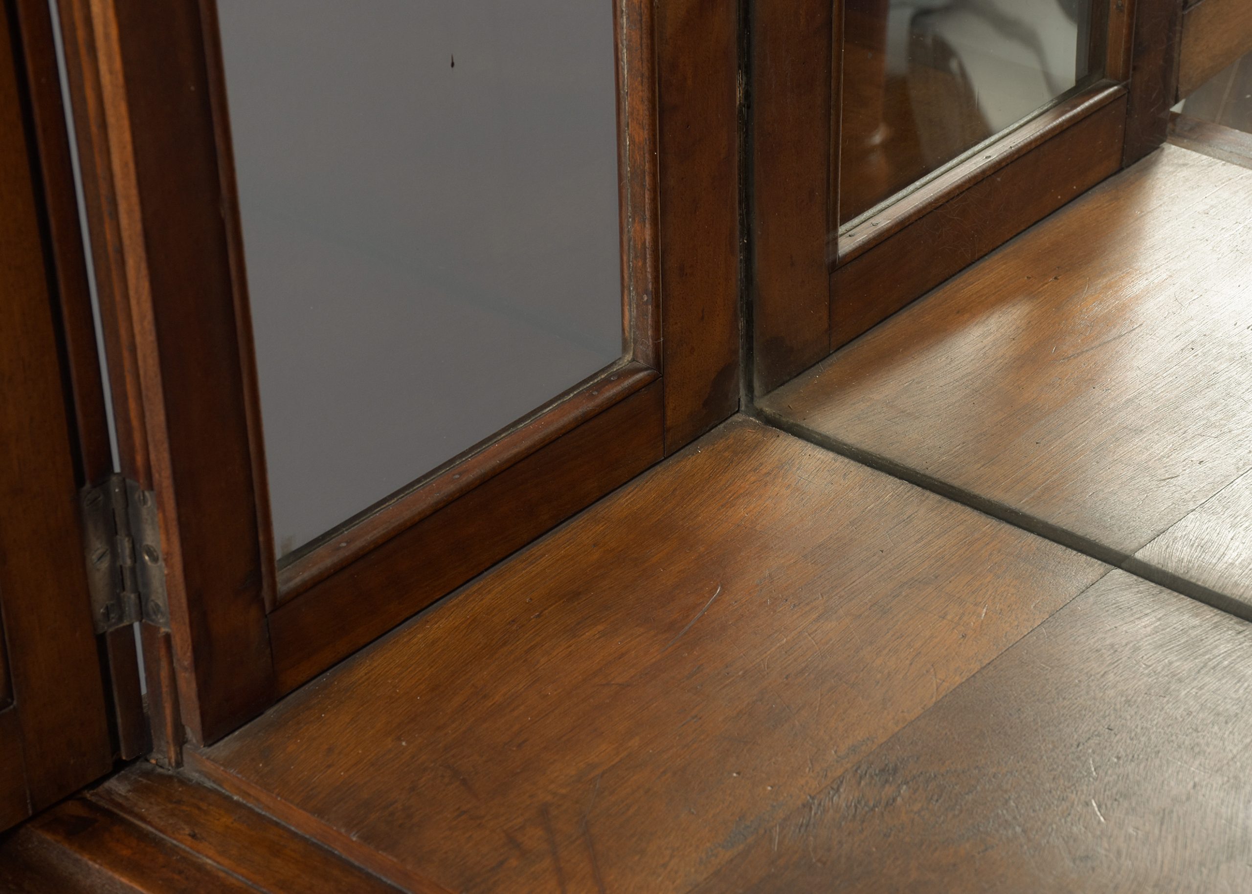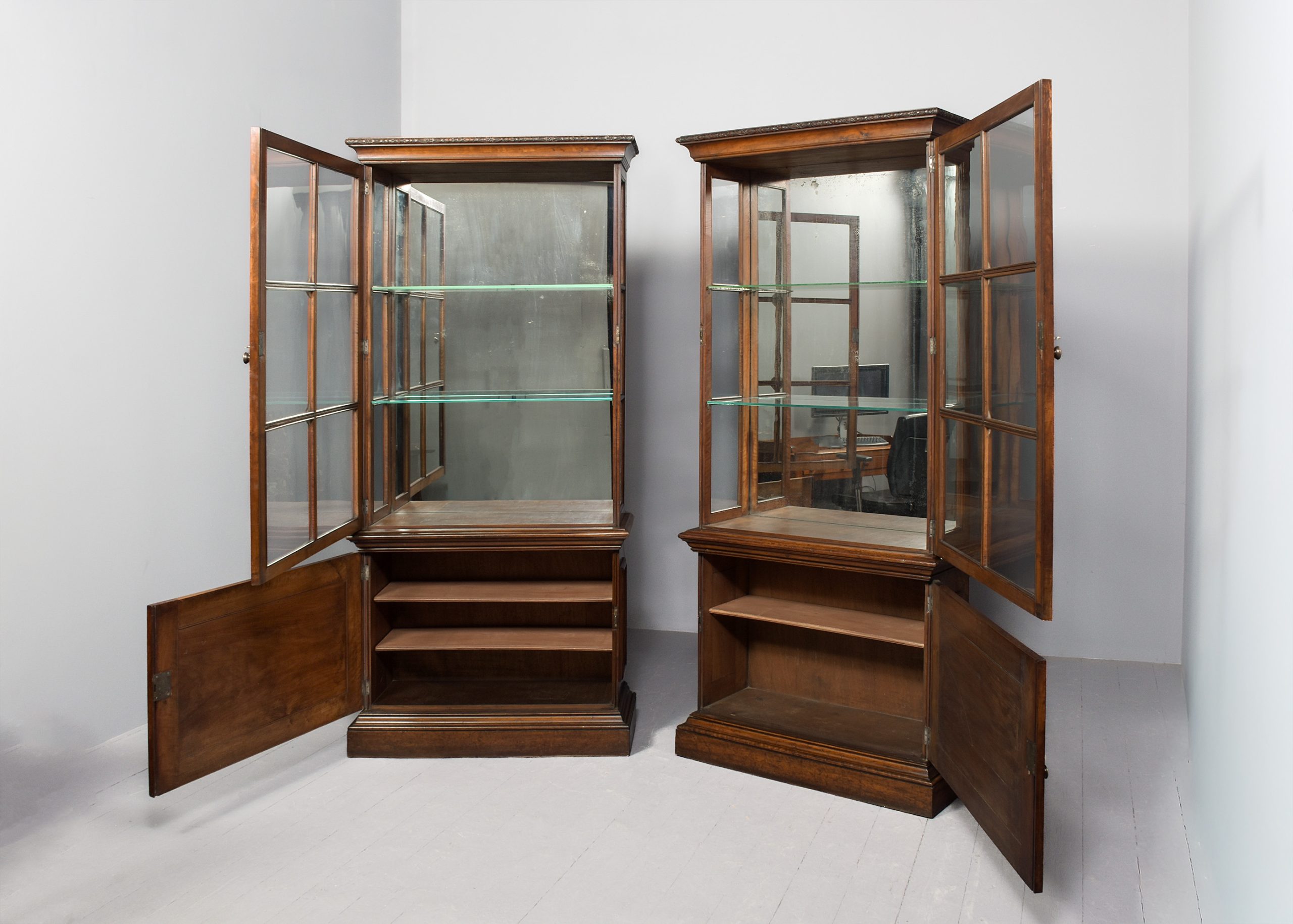 Rare pair of tall Neo-Classical style part-glazed display walnut cases