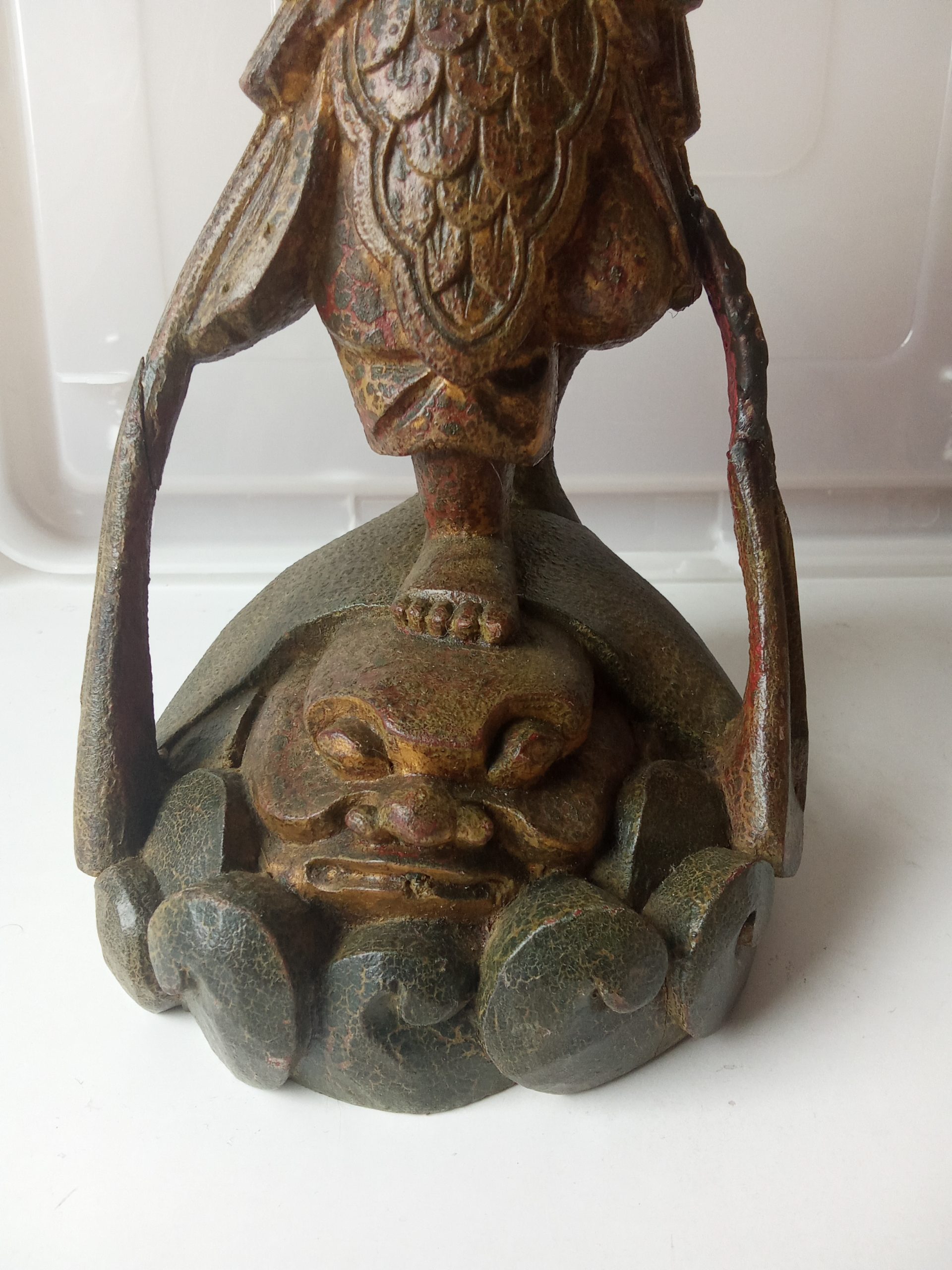 There is an amazing amount of detail on this piece such as the features of the face of both the Lokapala and the mythological beast that he is riding.