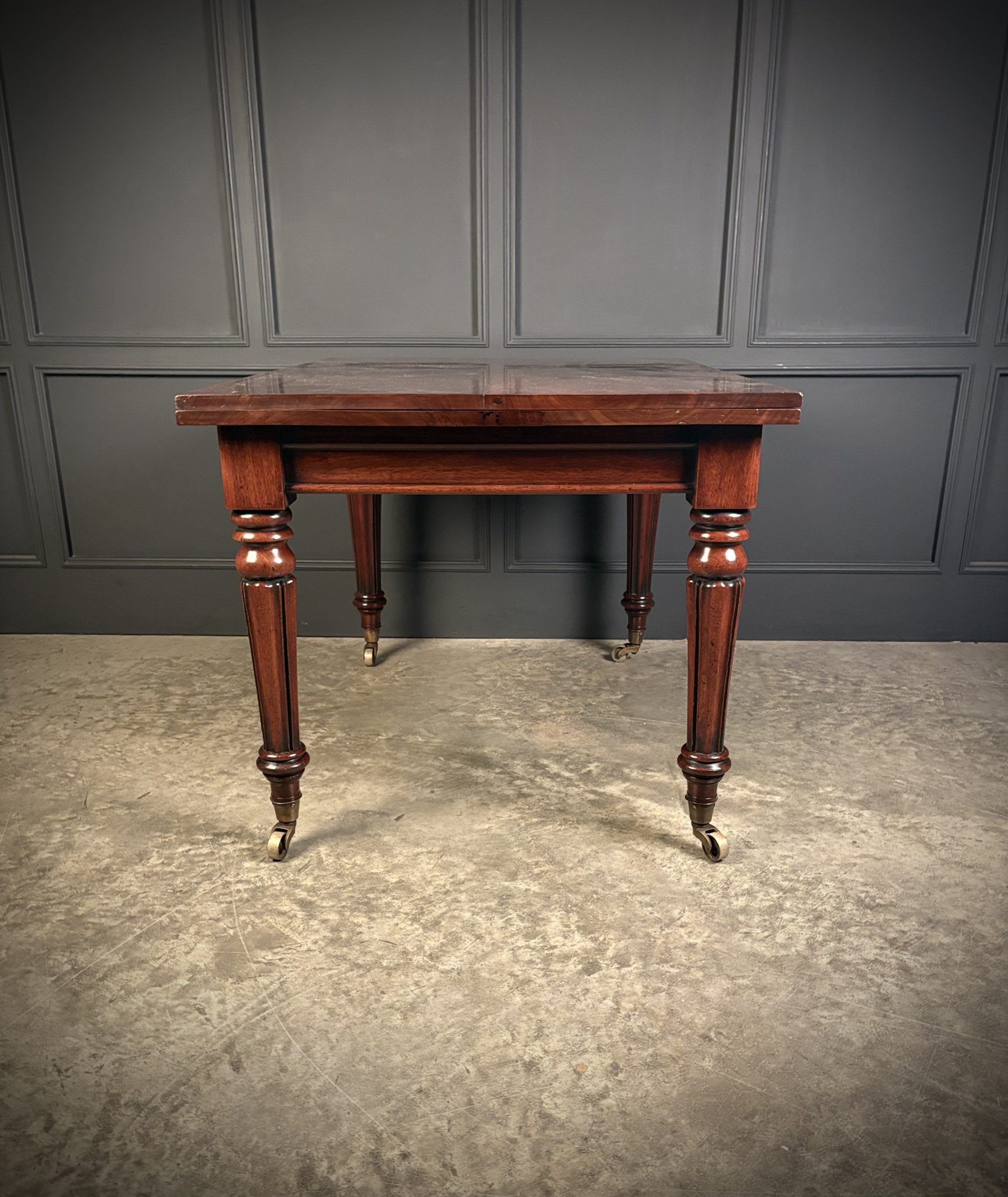 Raised on elegant fluted and turned legs, each terminating in brass cup casters.