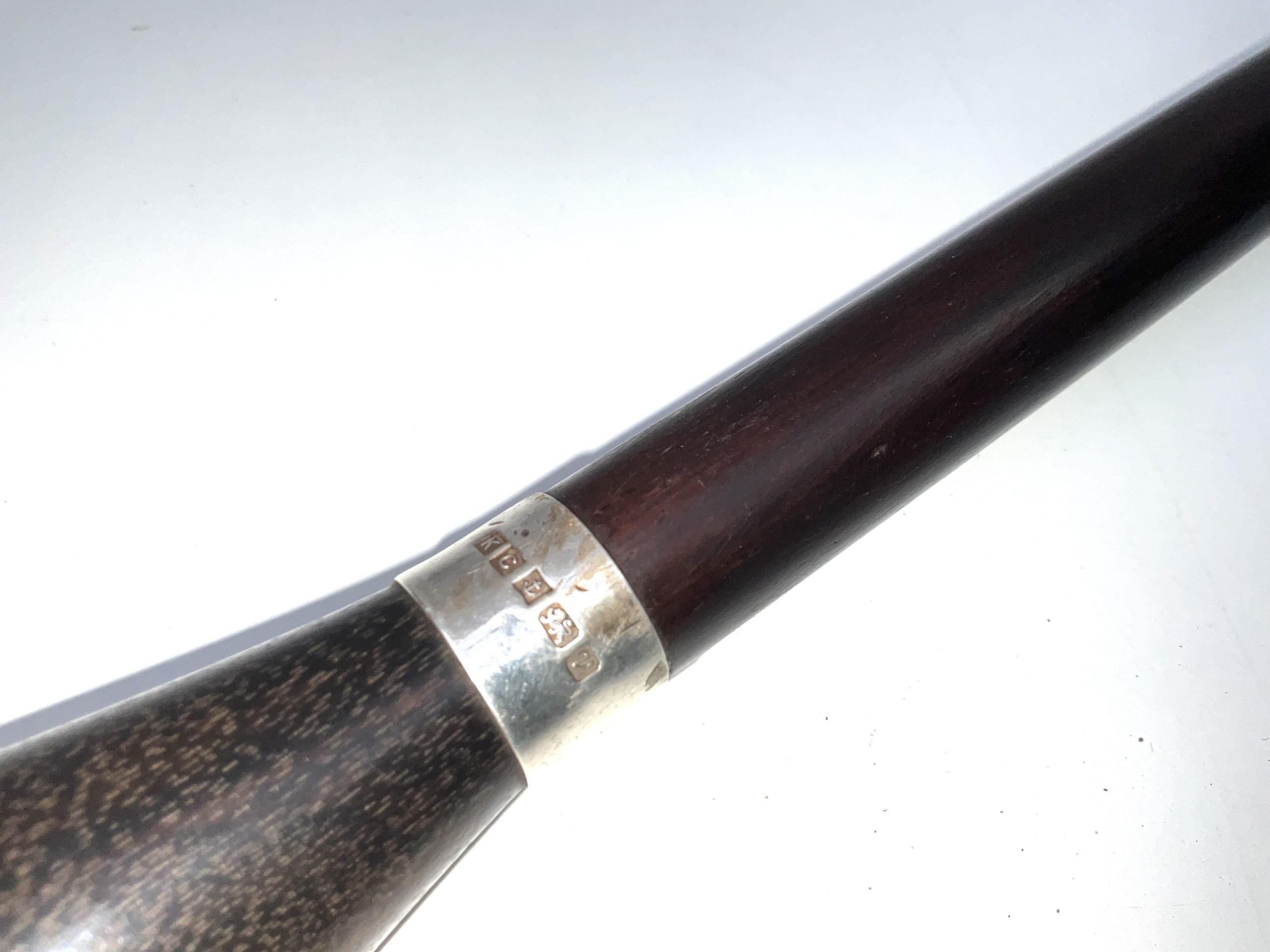 Superb stick, comes in fantastic condition wonderful deep rosewood and good hard horn grip, having a total length of 87 cm diameter of grips 35 mm sticks diameter from tops 20 mm tapering down to bottom 10 mm from steels tip to top of handle being 79 cm, hallmarked for Birmingham 1920. Offering free worldwide delivery refence LX1 Tel: +44 7505 165 843 We accept online payments for all our items listed: Bank transfer cash on collection personal cheques or if wishing over the phone using your debit or credit cards, also doing layby payments plan, or email giving your address details & contact number and we shall send you your items invoice to make payment with your card. Send your request to – john.strong2@gmail.com