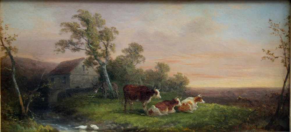 Shayer lived a long life, during which he had two wives and ten children. His eldest son, William Joseph Shayer, junior (1811-1892) was also a painter, and painted in a style very similar to his father. Their paintings are easily confused, which is made all the more difficult by the fact that they probably collaborated on several paintings in the elder Shayer´s later years. Three of Shayer senior´s younger sons – Edward Dasherwood Shayer (1821-1864), Henry Thring Shayer (1825-1894) and Charles Walker Shayer (1826-1914) – became painters at well, and all assisted him at times in his studio. William Shayer, senior died at the age of 92 on 21 December 1879 at his home at Bladon Lodge near Southampton.