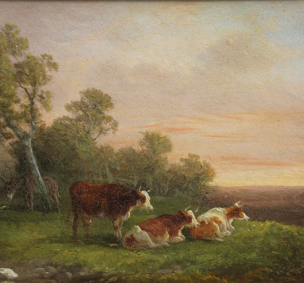 Rural landscape with cows and a donkey by William Joseph Shayer (1787–1879)