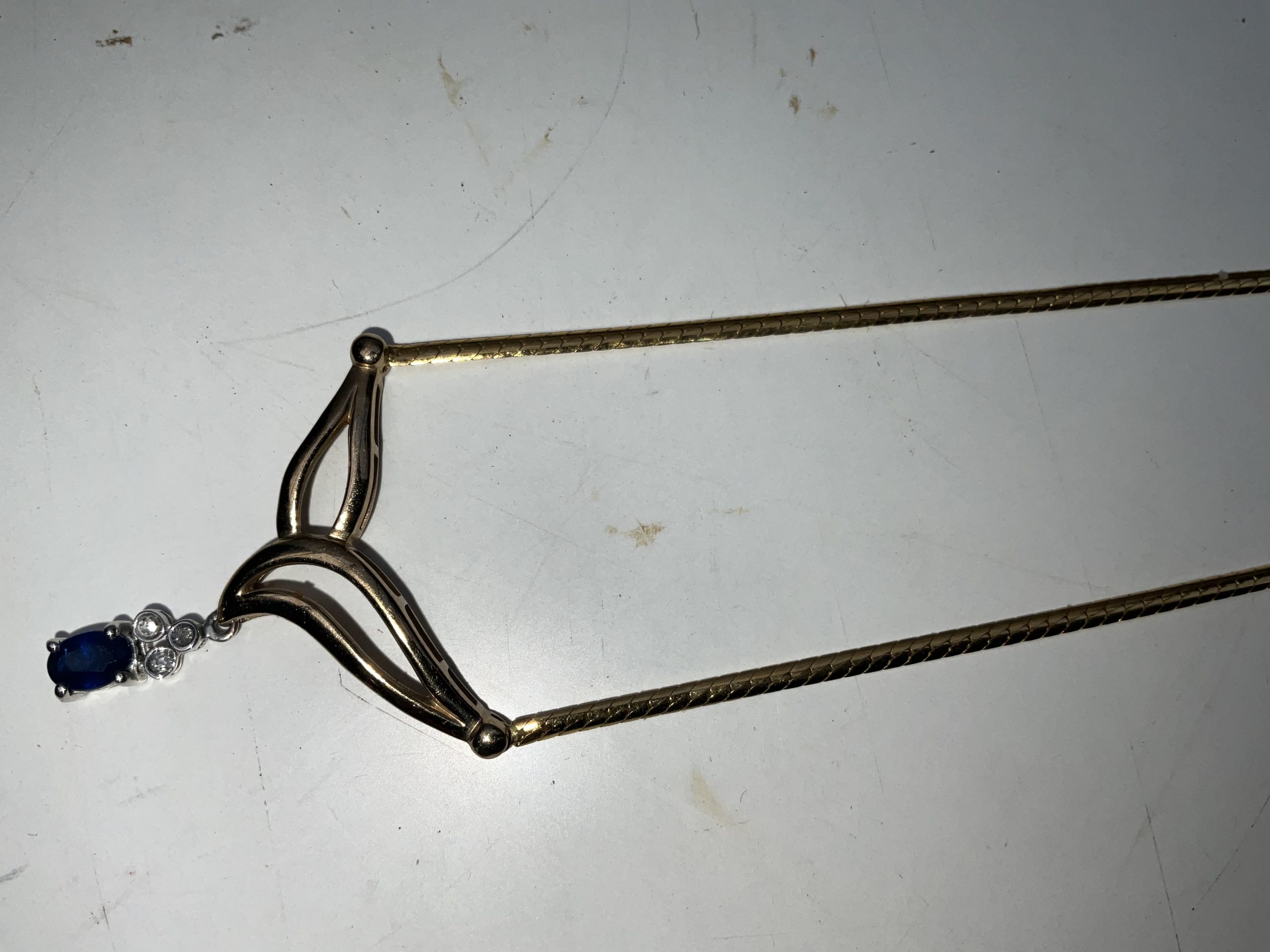 Stunning quality 9ct solid gold sapphire and diamond Italian necklace and pendant combined, comes with presentation box in immaculate condition length of 46 cm weighing 6.86 grams offering free worldwide delivery reference CC. Tel: +44 7505 165 843 We accept online payments for all our items listed: Bank transfer cash on collection personal cheques or if wishing over the phone using your debit or credit cards, also doing layby payments plan, or email giving your address details & contact number and we shall send you your items invoice to make payment with your card. Send your request to – john.strong2@gmail.com