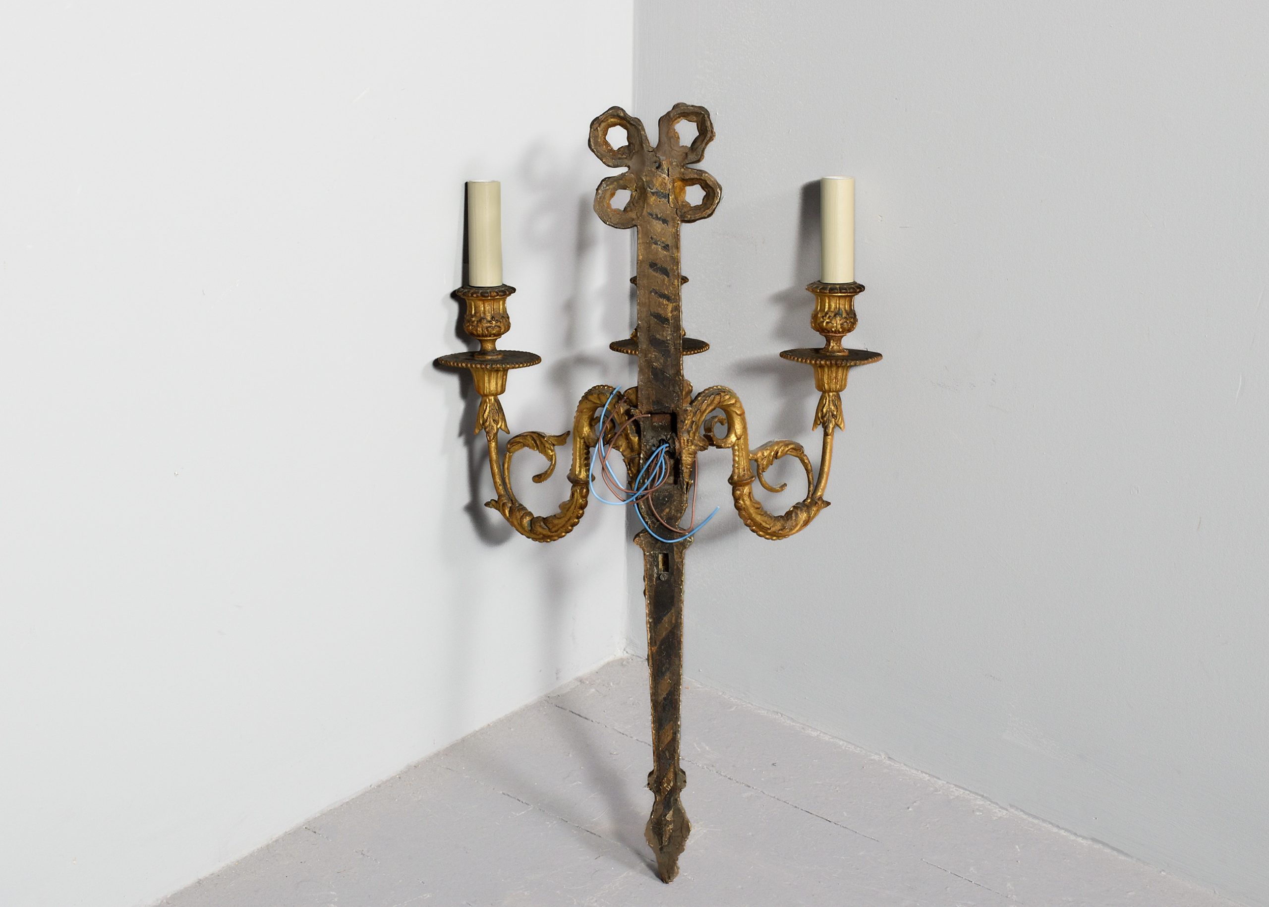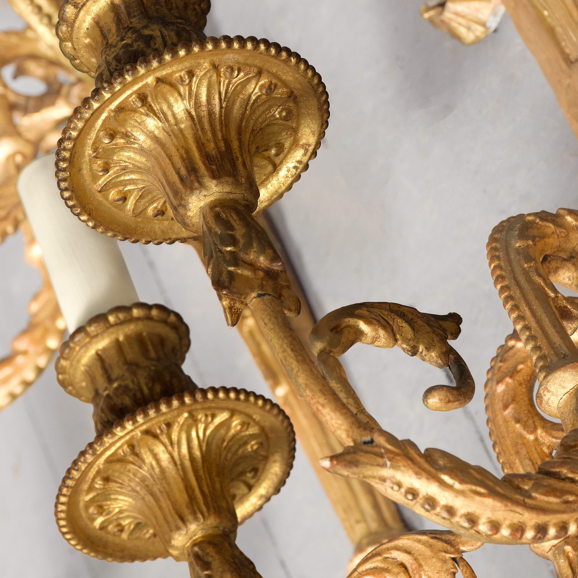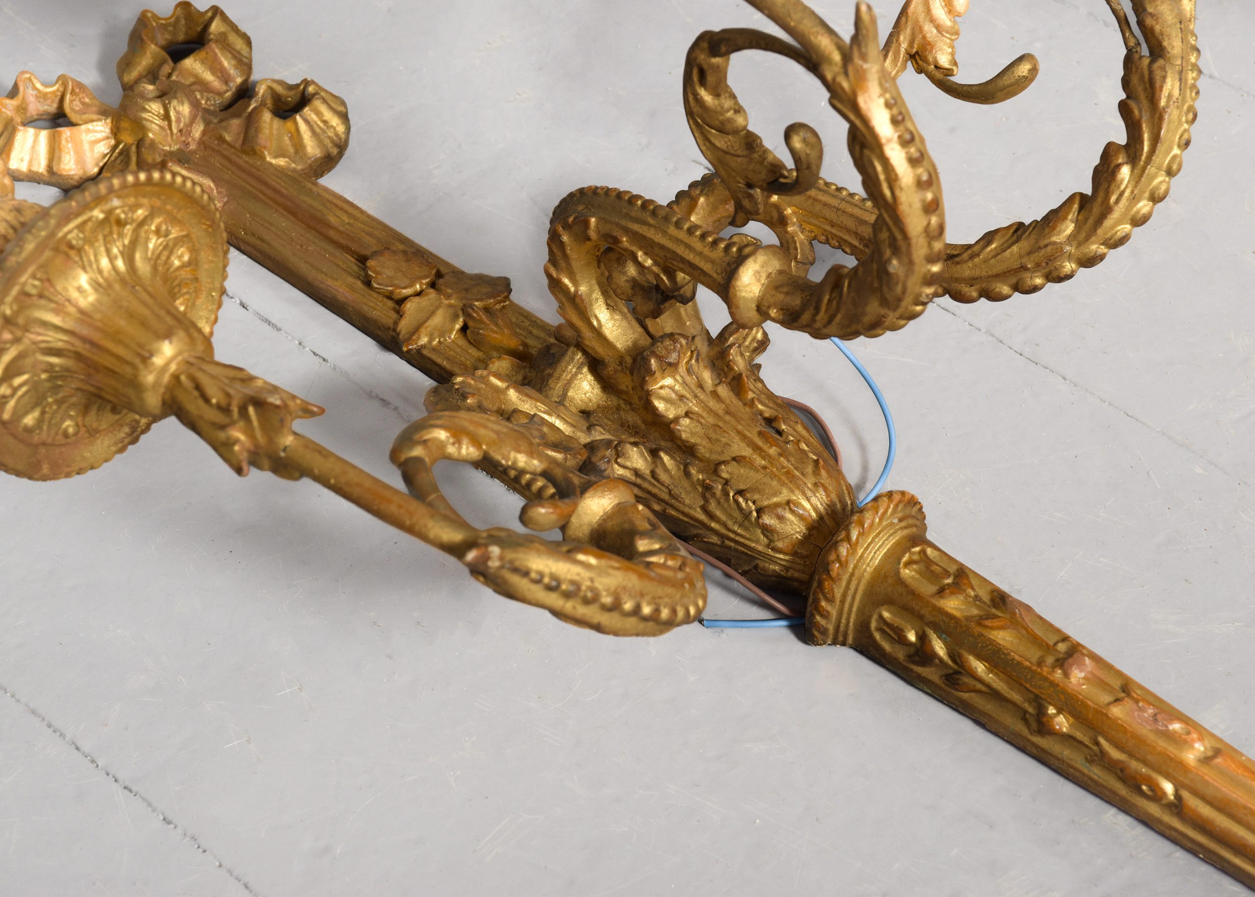 of gilded flowers, surmounted with faux candles, recently cleaned, rewired