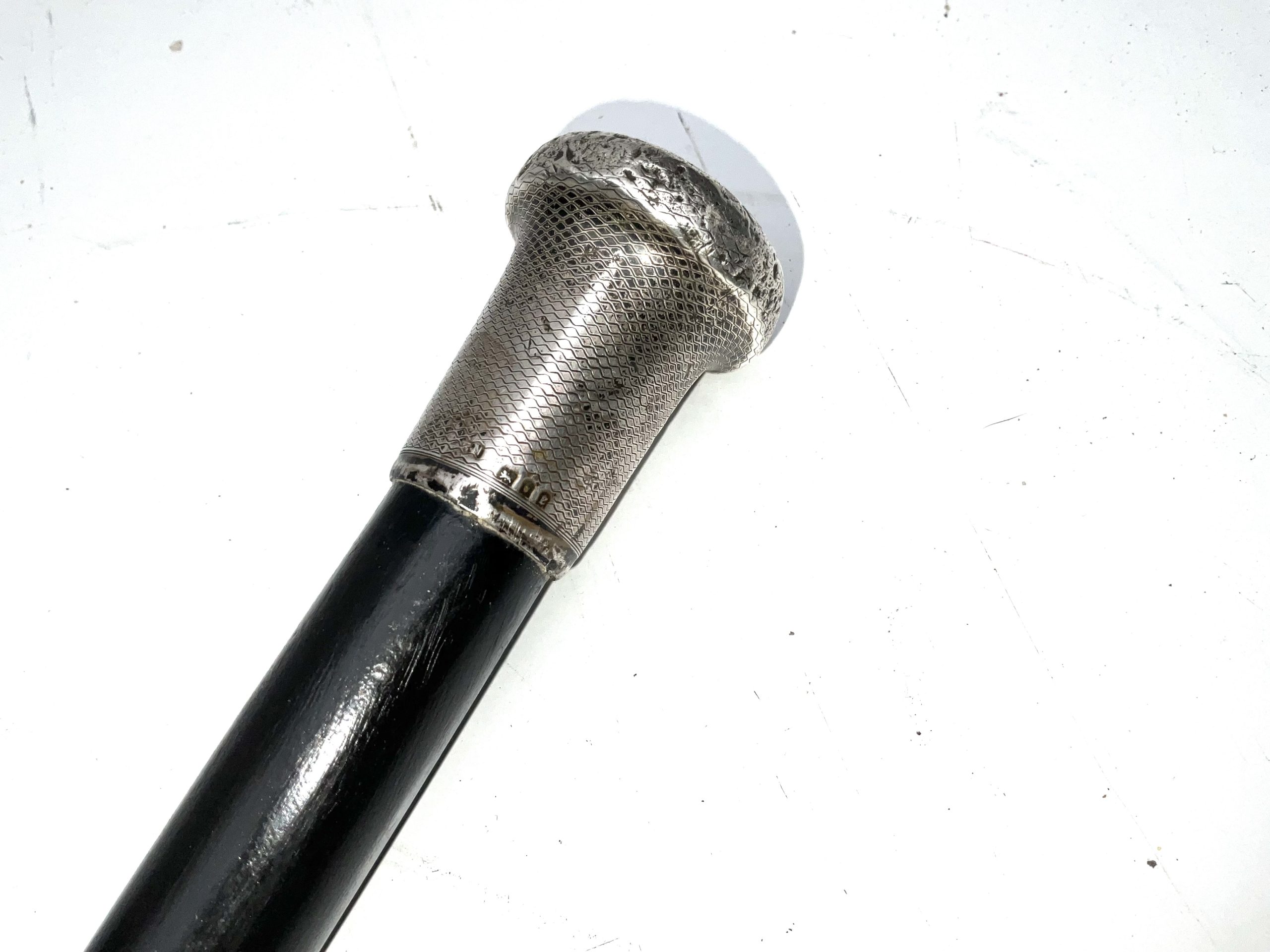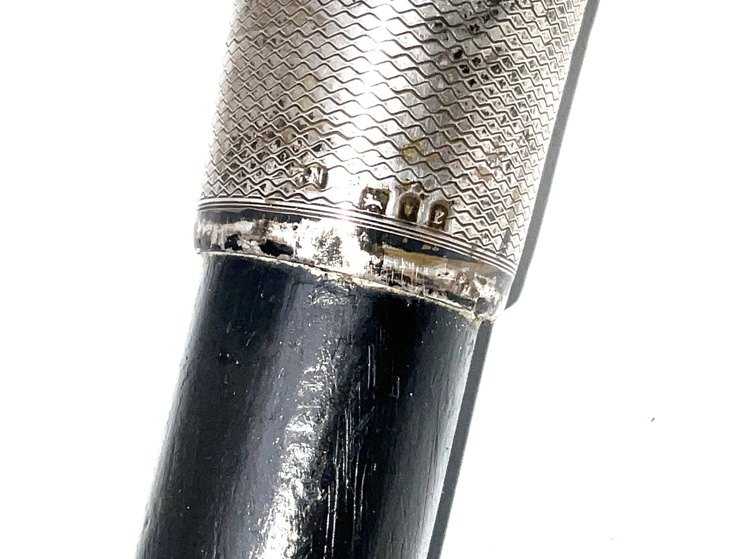Ebony cane silver top which is hallmarked for London 1920, overall conditions good though silver grip has the odd ding or two, length in total is 84 cm diameter of tops 37 mm sticks diameter from tops 22 mm tapering down to ferule 15 mm, from steel tip to top being 77 cm, offering free delivery reference T71. Tel: +44 7505 165 843 We accept online payments for all our items listed: Bank transfer cash on collection or if wishing over the phone using your debit or credit cards, also doing layby payments plan, or email giving your address details & contact number and we shall send you your items invoice to make payment with your card. Send your request to – john.strong2@gmail.com