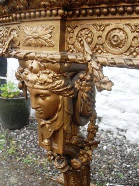 Profusely decorated with elaborate swagger. A very exotic sideboard indeed and of stately proportions. The marble top is in perfect condition. the table base has a few small cracks and faults conducive to age.
