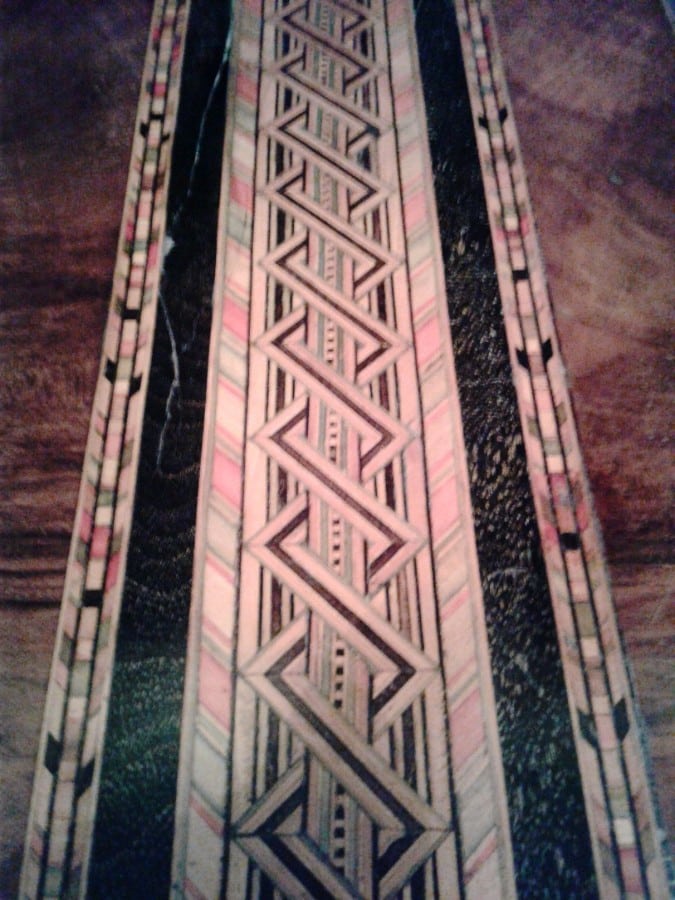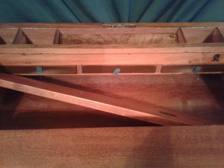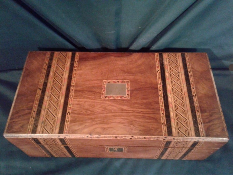 A large Victorian walnut and tumbridge inlaid lap desk. Three secret drawers. Good condition.