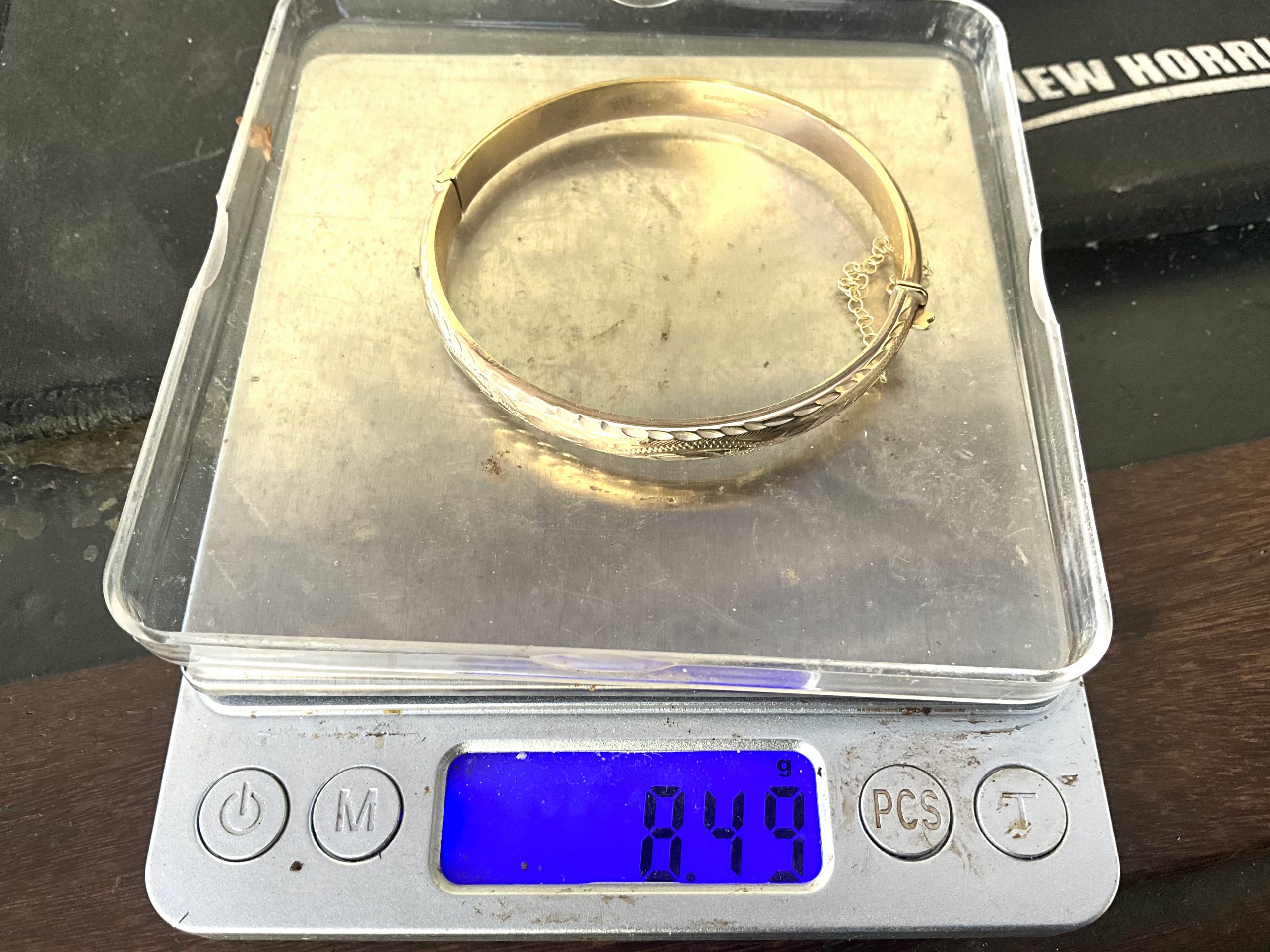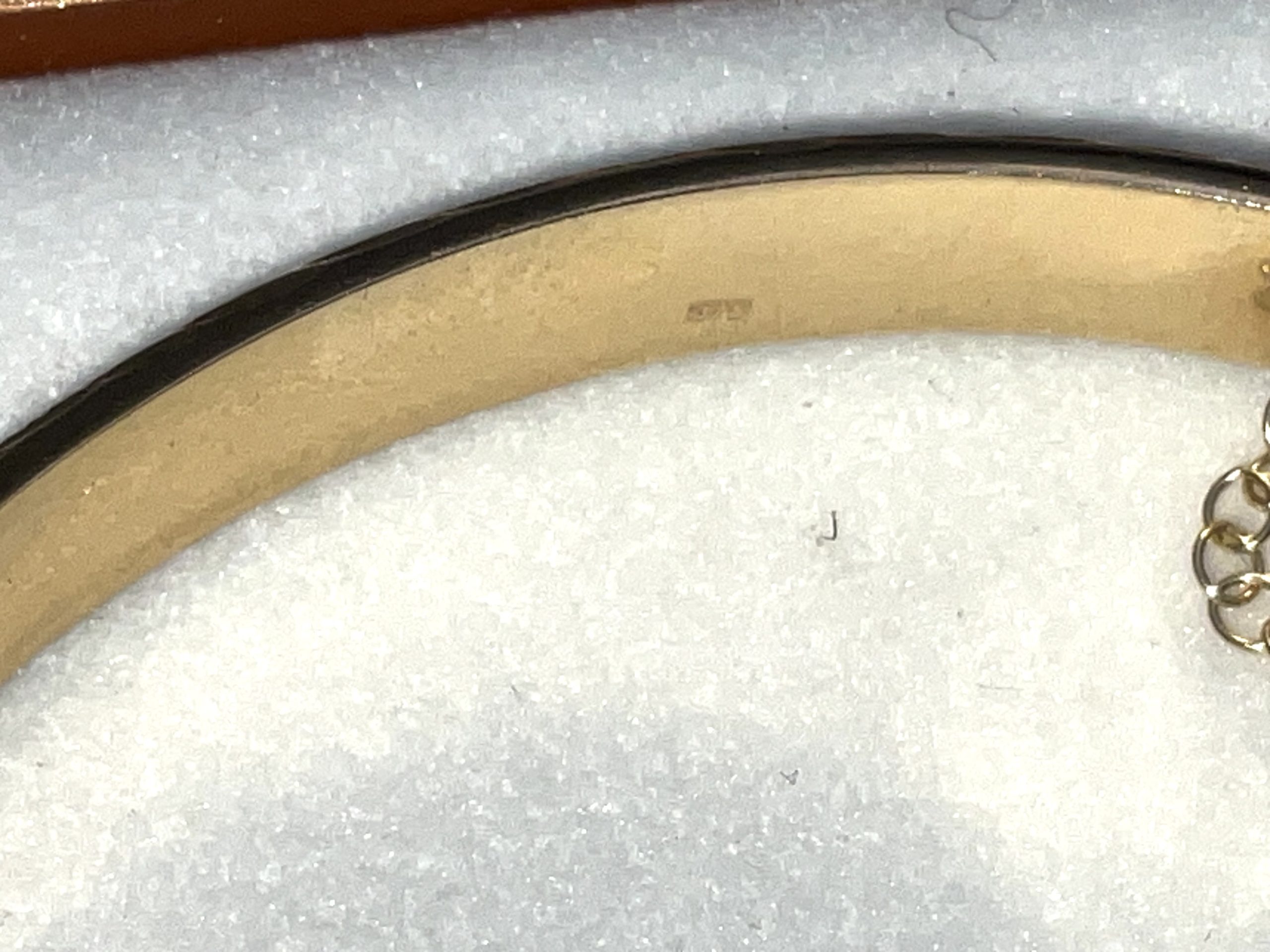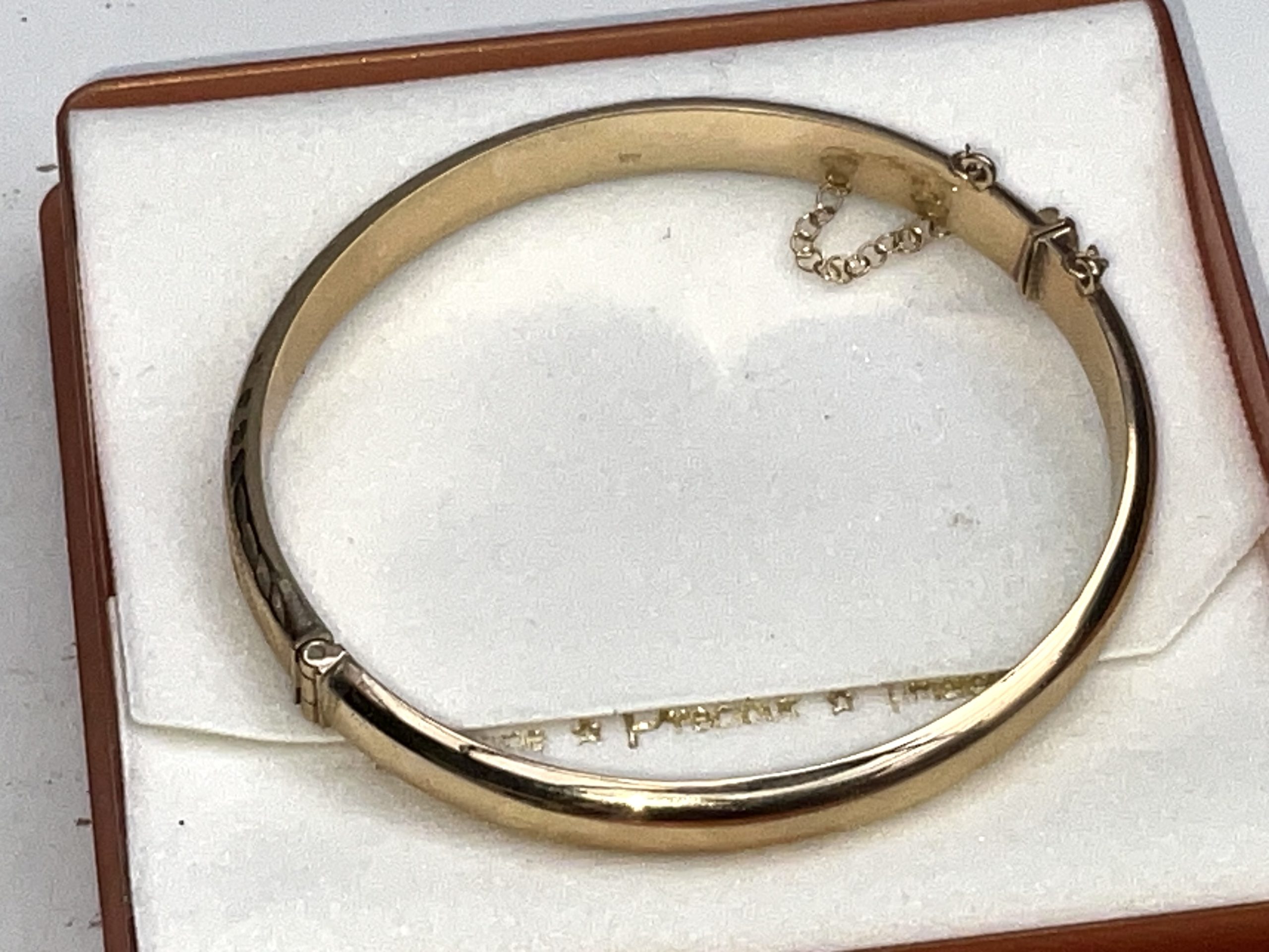 Superb Bangle, unworn so as new diameter of 62 mm outer inner being 52 mm height 8 mm weighing 8.49 grams has good working safety chain comes in original presentation case, offering free worldwide delivery reference CC. Tel: +44 7505 165 843 We accept online payments for all our items listed: Bank transfer cash on collection personal cheques or if wishing over the phone using your debit or credit cards, also doing layby payments plan, or email giving your address details & contact number and we shall send you your items invoice to make payment with your card. Send your request to – john.strong2@gmail.com