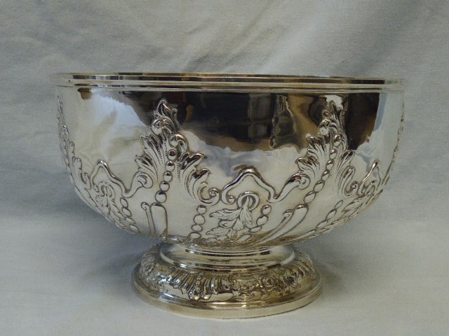 A solid silver punch bowl. Hallmarked London 1897 by Charles Stuart Harris, a renowned London silversmith who provided high quality, popular silverware during the 19th century.