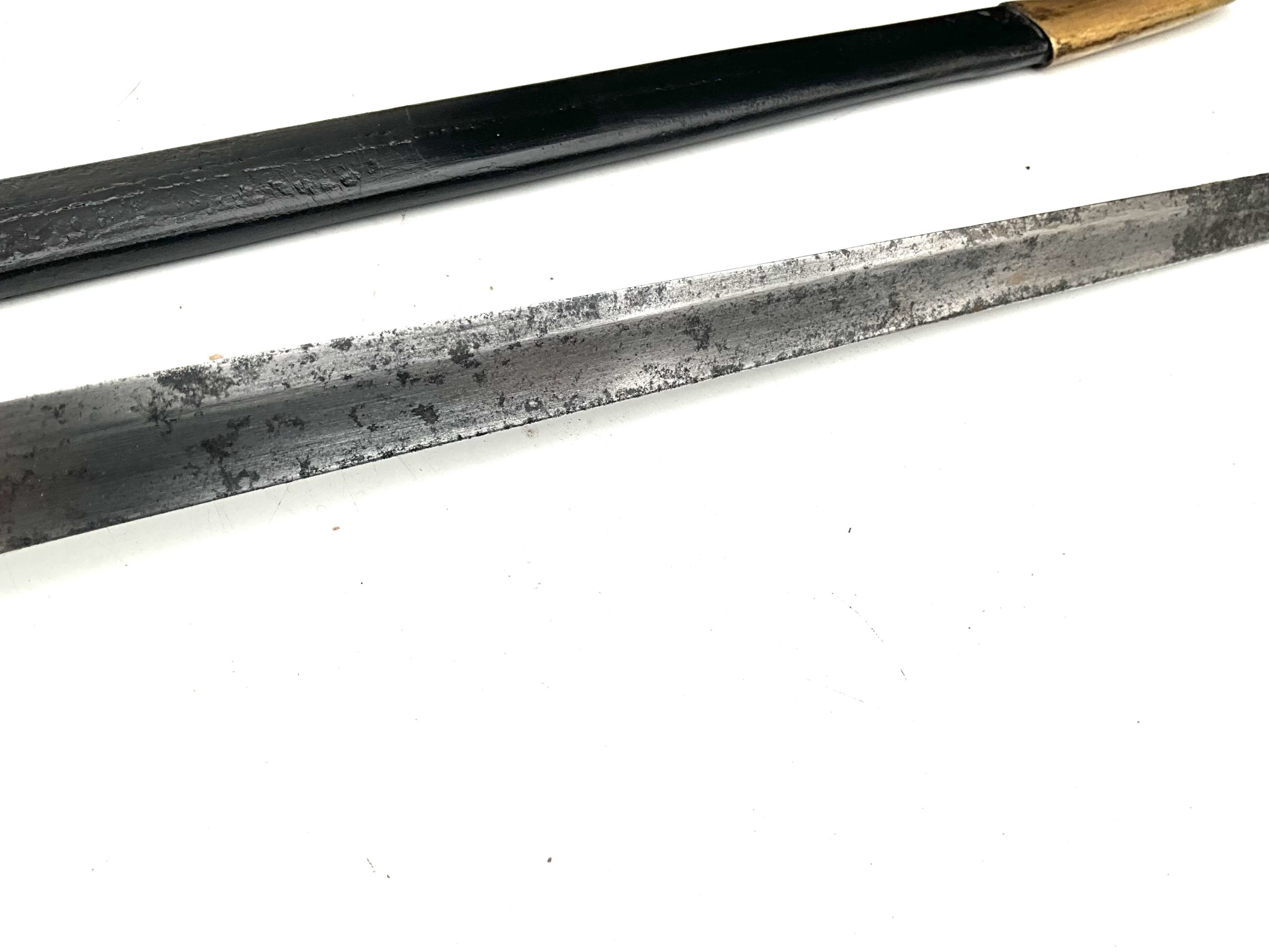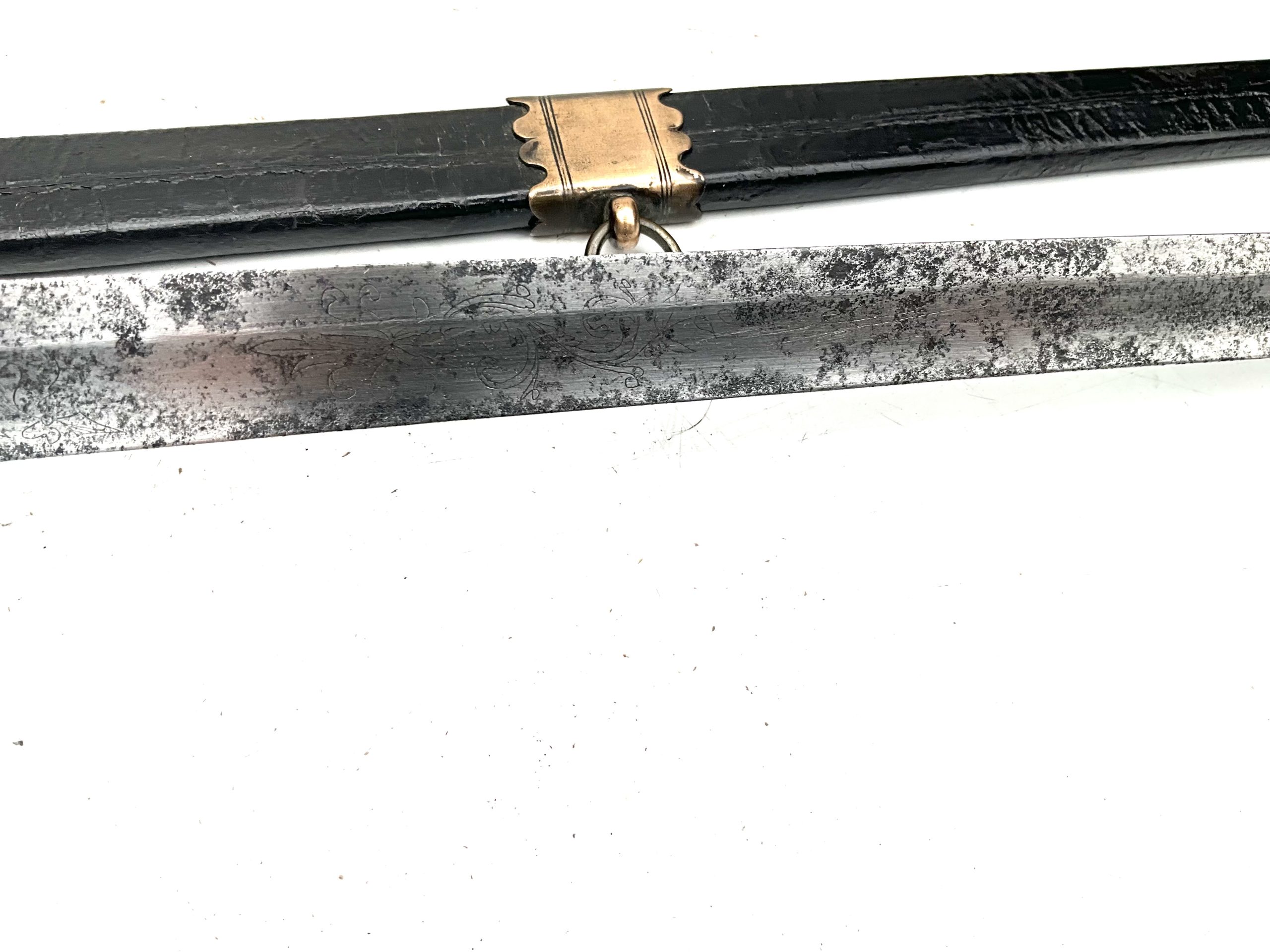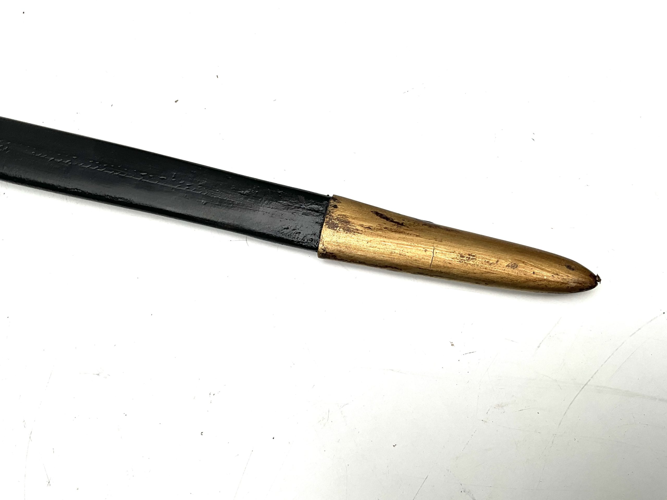 A spadroon is a light sword with a straight-edged blade, enabling both cut and thrust attacks. The English term emerged in the early 18th century, although swords of this type were used in Europe from the late 17th century onward. Spadroons were primarily sidearms for military officers and non-commissioned officers (NCOs) in the army and navy during the 17th to early 19th centuries, this one for sale is showing much service, the blades engraved and has some blemishes to both sides, the guards of the folding variety the scabbards a rarity as usually missing, there is no makers name on the blade and wire is missing on grip, length in total being 100 cm heights 12 cm depth 9 cm, offering free UK delivery reference DBSD2 Tel: +44 7505 165 843 We accept online payments for all our items listed: Bank transfer cash on collection or if wishing over the phone using your debit or credit cards, also doing layby payments plan, or email giving your address details & contact number and we shall send you your items invoice to make payment with your card. Send your request to – john.strong2@gmail.com