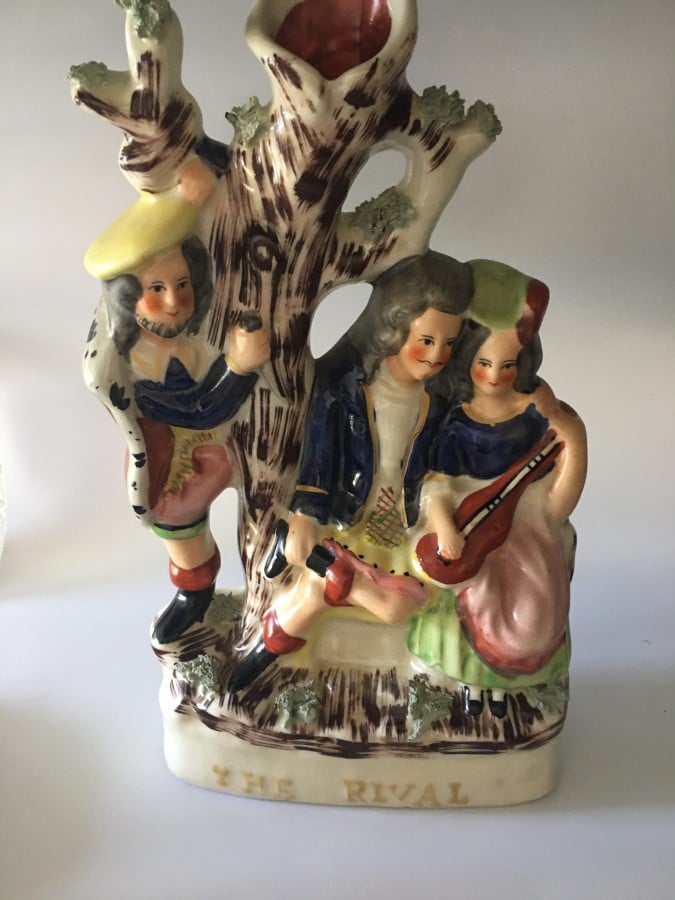 Staffordshire figures were originally made as ornaments to enliven a mantlepiece and to brighten up the home. Some had secondary uses such as spill vases, pastille burners and watch holders, but their main purpose was decorative.