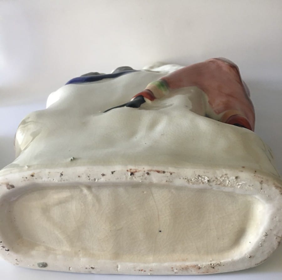 Most of these figures have been used and can show signs of wear and tear i.e., paint loss, crazing, firing cracks and chips. These earthenware figures and figurines were made from approximately 1740 till 1960 and during the later year’s copies and reproductions of the scarcer pieces were made in China and very good quality making them hard to distinguish from the originals.