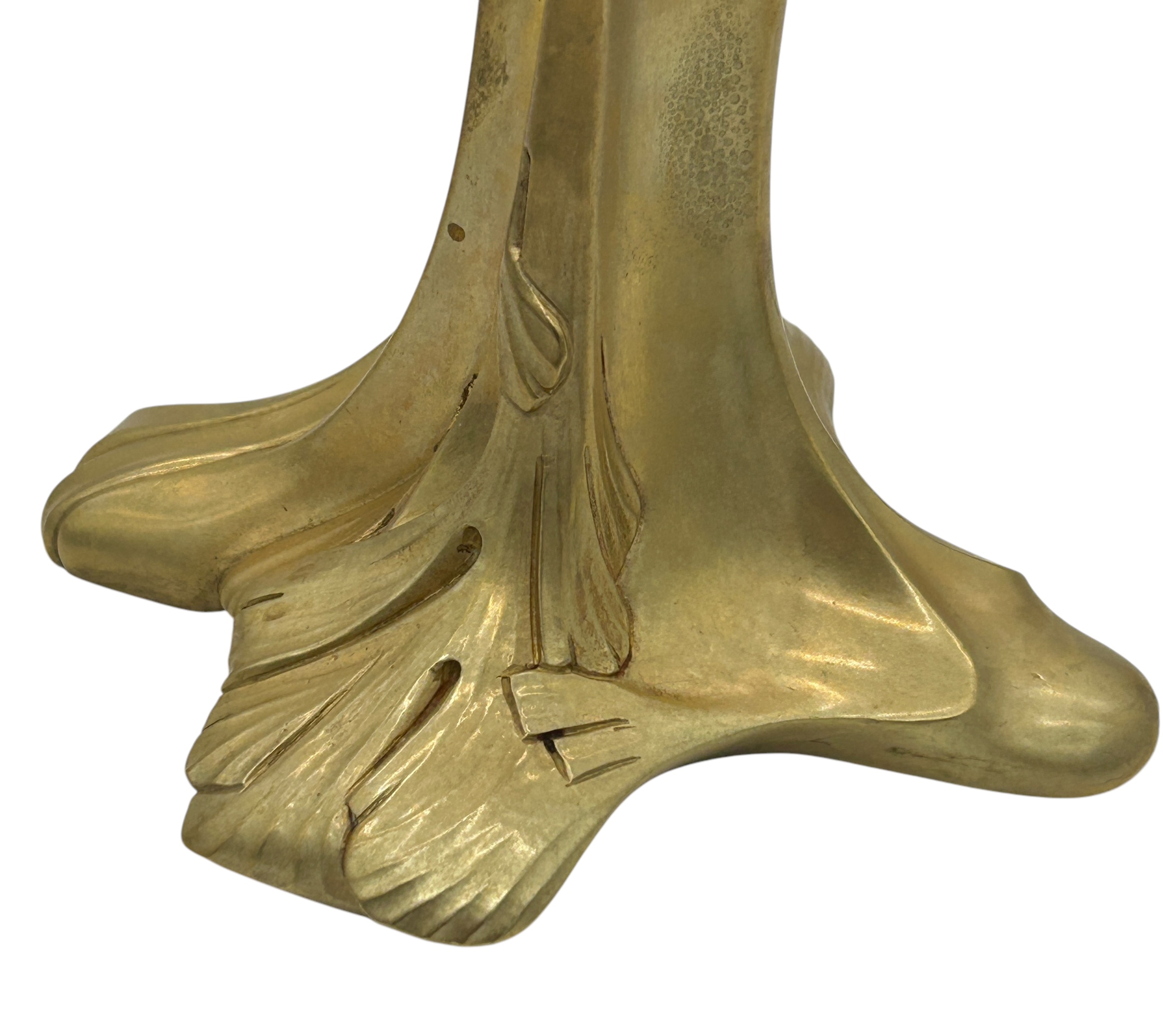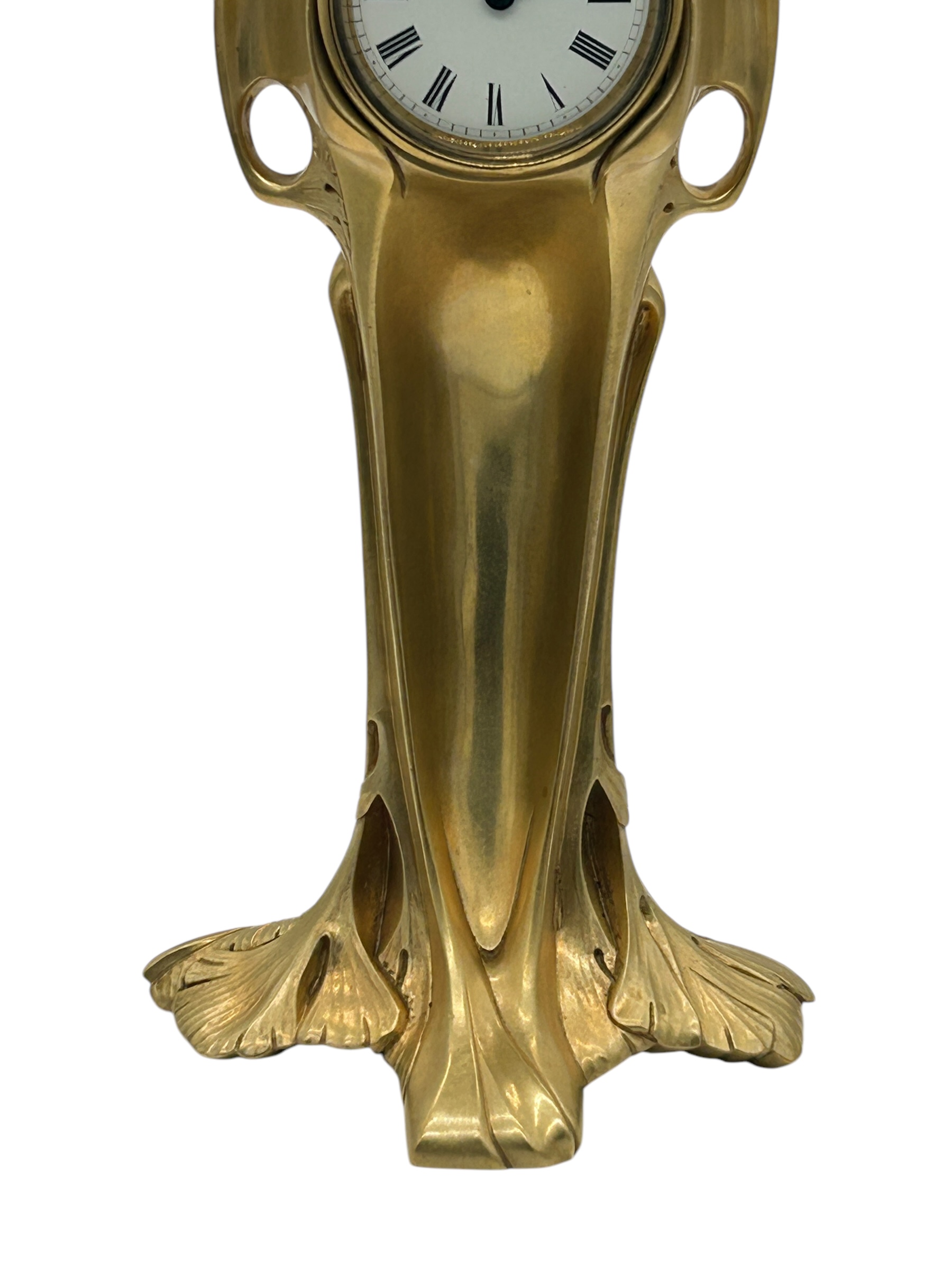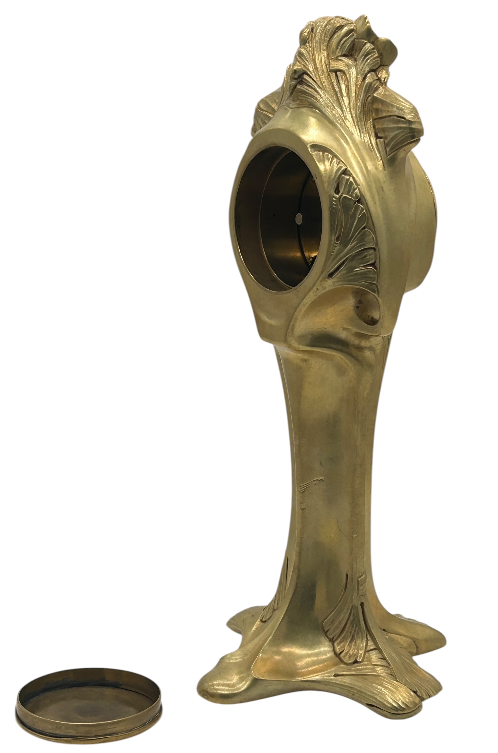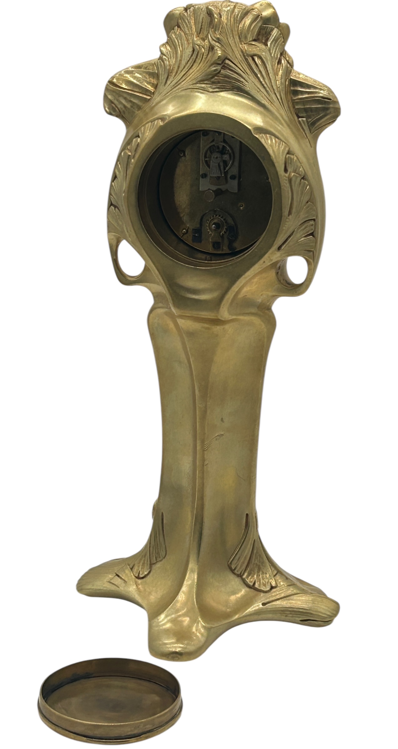 Solid cast bronze ormolu finished case, cast in an art nouveau lady figural shape.