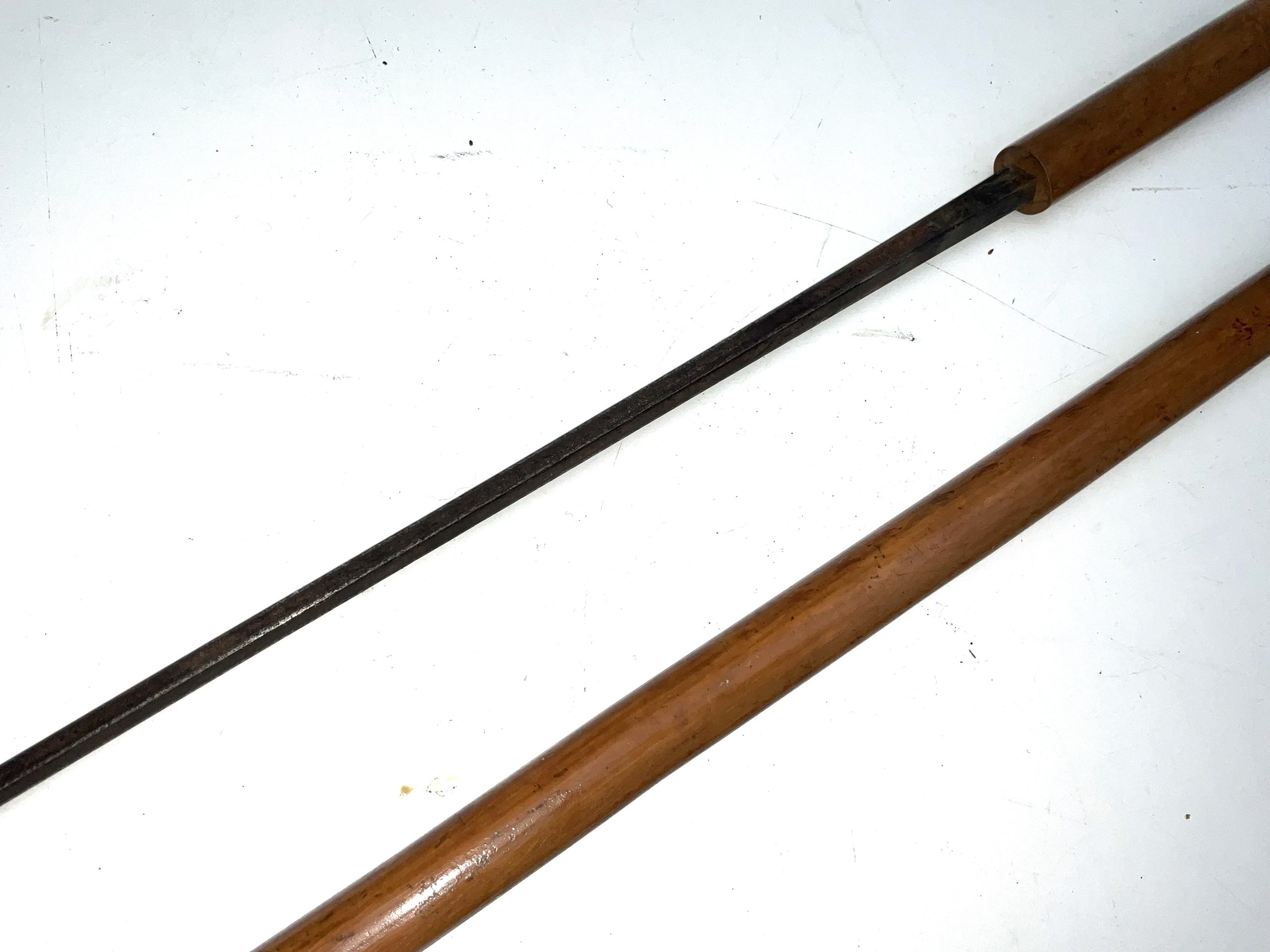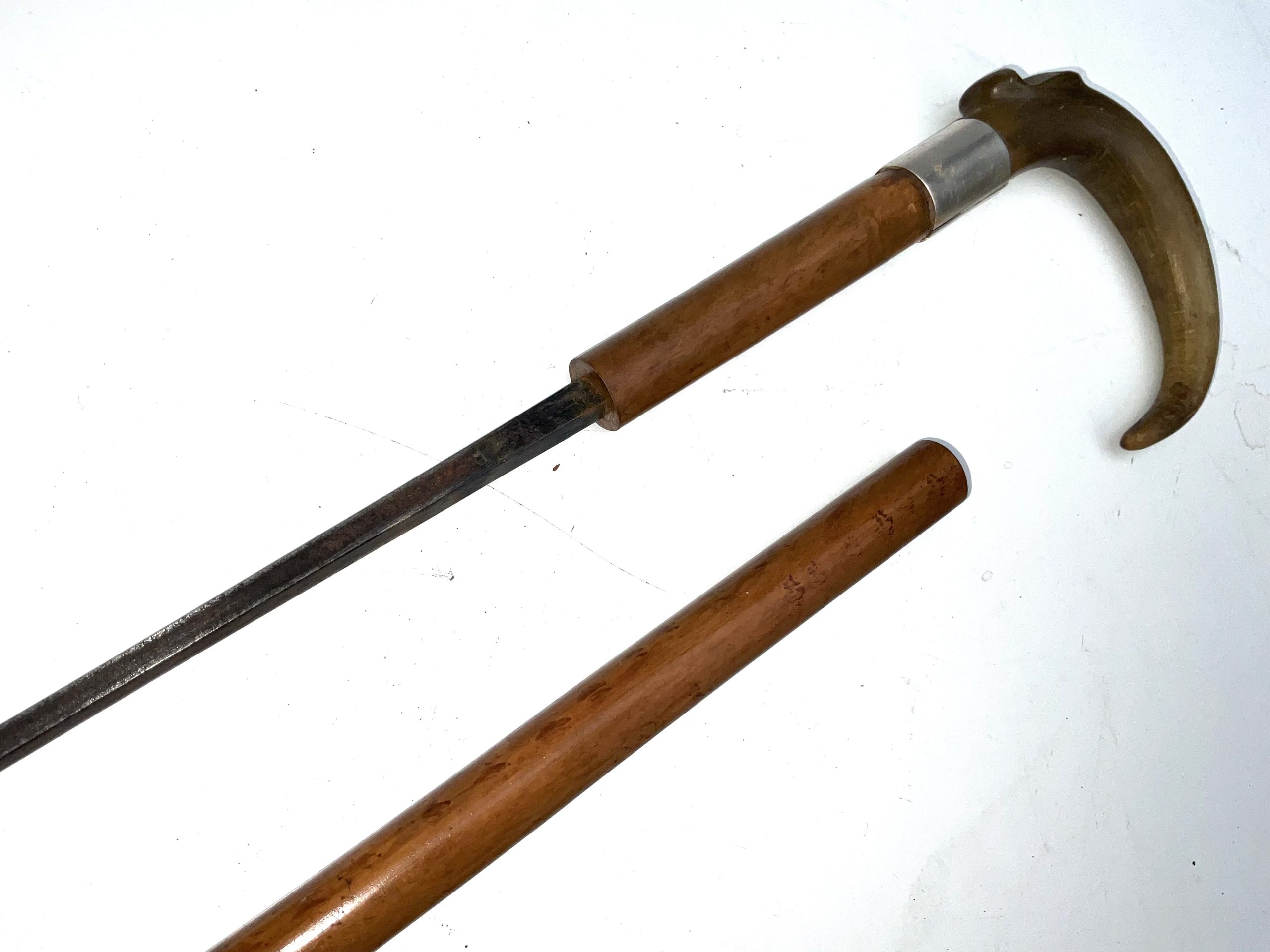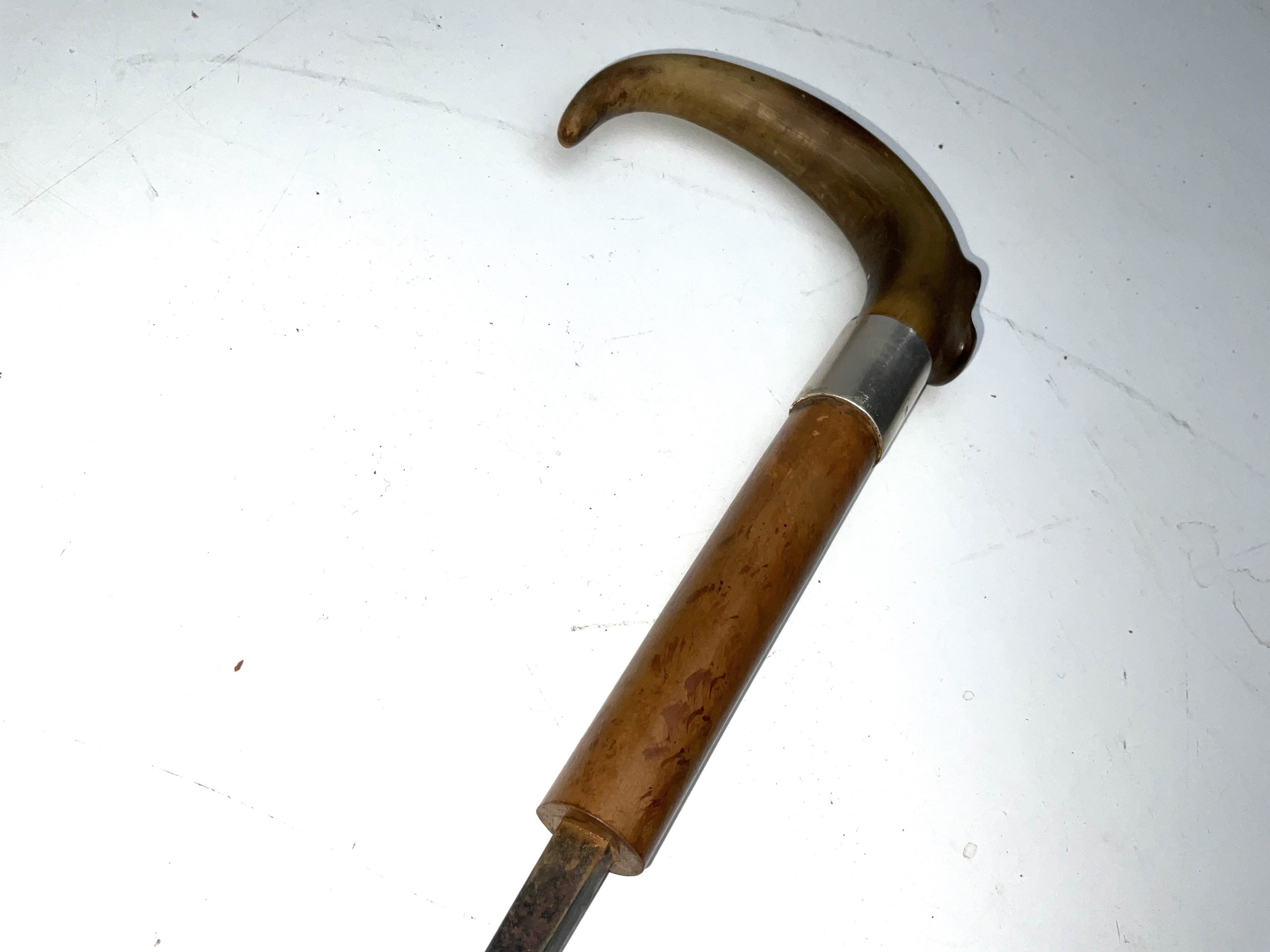 Horn crooked handle typical of that era the year being 1902 Birmingham. The woods Malacca the blades high tensioned steel and all’s in very good condition, total length of 92 cm across handles 12 cm sticks diameter from handle 25 mm tapering down to ferule 18 mm from steels tip to top of the handle being 85 cm, reference KT6, offering free UK delivery. Tel: +44 7505 165 843 We accept online payments for all our items listed: Bank transfer cash on collection personal cheques or if wishing over the phone using your debit or credit cards, also doing layby payments plan, or email giving your address details & contact number and we shall send you your items invoice to make payment with your card. Send your request to – john.strong2@gmail.com